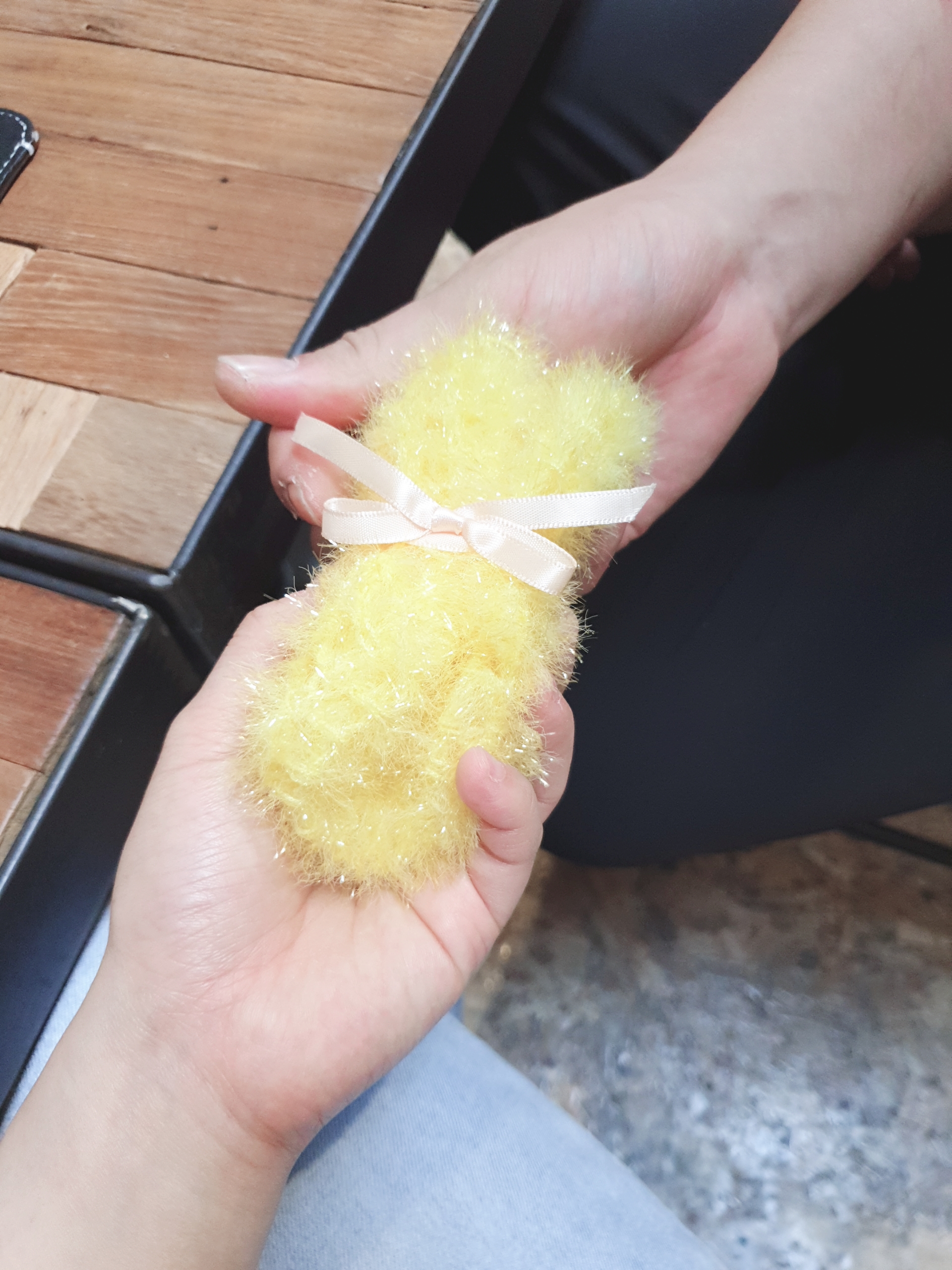 그리고 이번에 만든 수세미는 남자친구에게 선물로 줬다. 선물이니까 예쁘게 리본도 달았다 :)