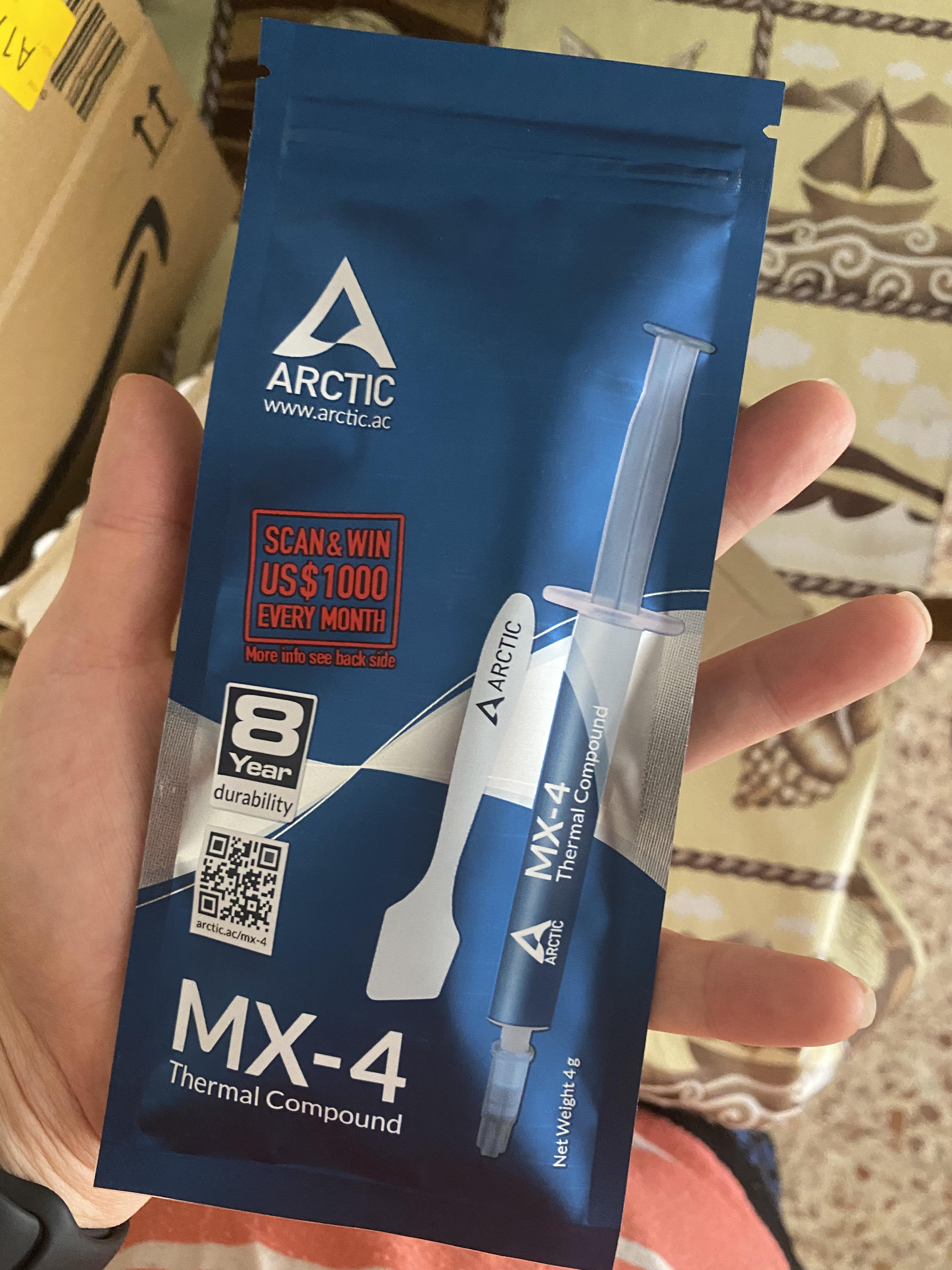 다들 많이 쓴다는 써멀구리스 MX-4를 아마존에서 주문을 했고 배송은 2일이 걸렸다. 안에는 그림처럼 플라스틱?으로 생긴 스파츌라와 주사기처럼 생긴 써멀구리스가 들어있었다.