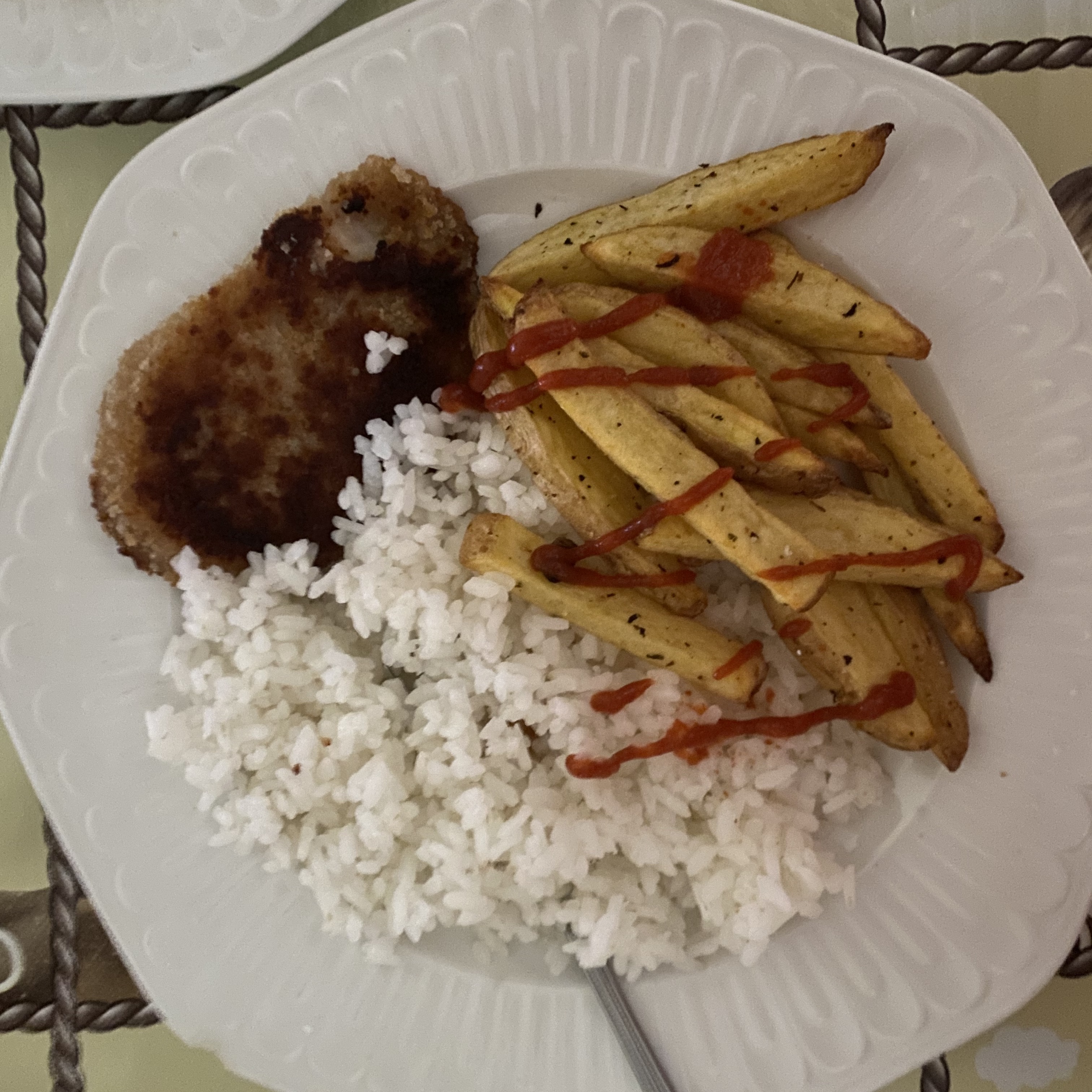 하지만 점심으로 감자만 먹은 건 아니고 어제랑 똑같은 거 먹었다 ㅎㅎㅎㅎ 치킨 돈가스와 밥을 함께 먹었다. 오랜만에 스리라차 소스를 뿌려서 먹었다. 스리라차 소스도 다 떨어져서 사야하는데...