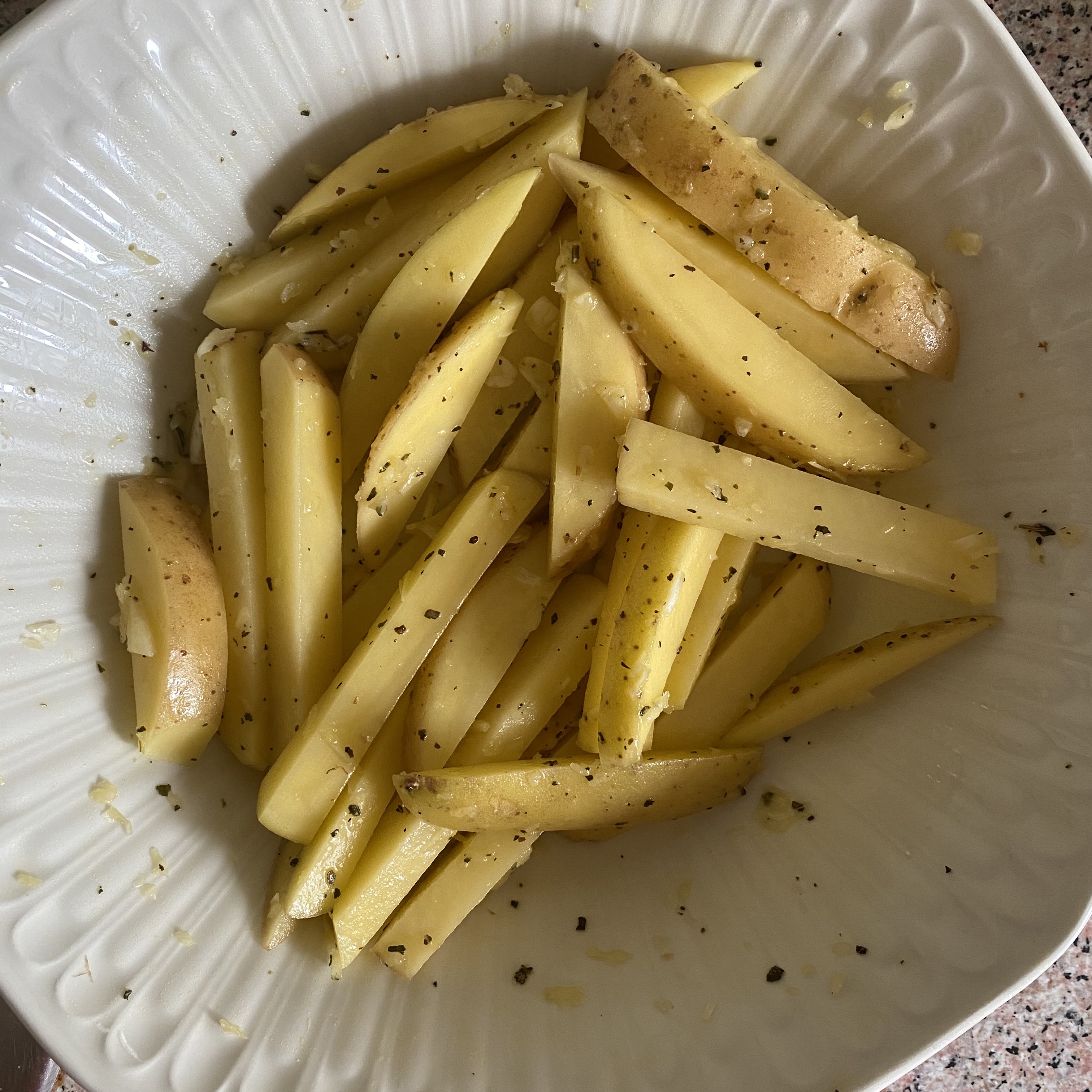 점심으로는 또 감자튀김을 먹었다!!! 어제랑 똑같은 거 아닌가 할 수도 있지만, 아니다! 어제는 그냥 생 감자튀김이었지만, 이번에는 감자에 양념을 조금 했다. 마늘과 허브들을 조금 넣었다. 양념이 조금 베이라고 한 두시간 정도 일찍 양념을 해 놓았더니 부엌에 들어갈 때마다 냄새가 장난 아니다 우와 🤩