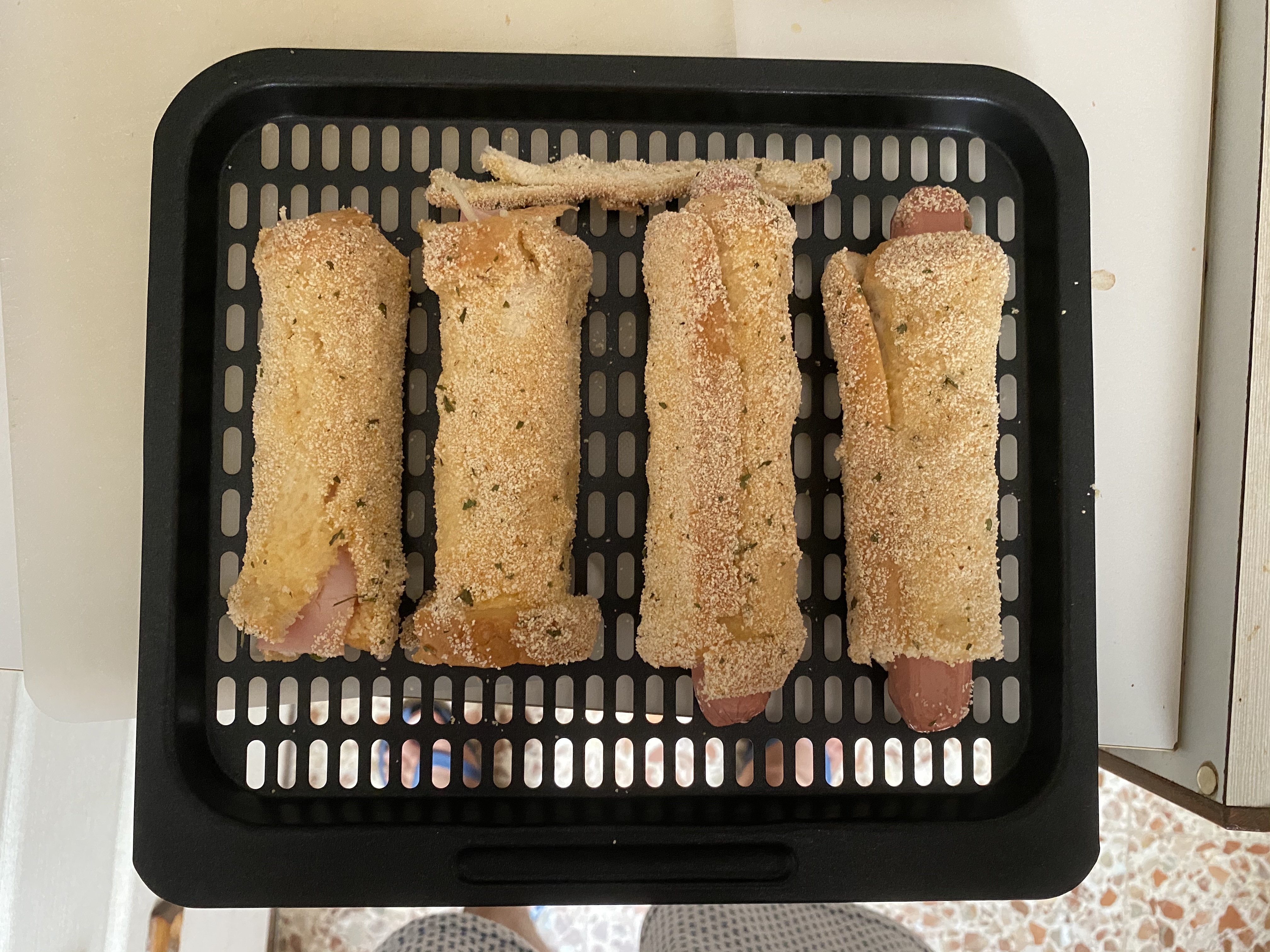 오늘 아침에는 새로운 시도를 해 보았다. 이것도 유튜브에서 본 건데, 식빵으로 핫도그를 해 먹는 것이었다. 튀겨도 되겠지만, 나는 에어프라이기가 있기 때문에 하하하핳 에어프라이기로 도전을 해 보기로 했다.