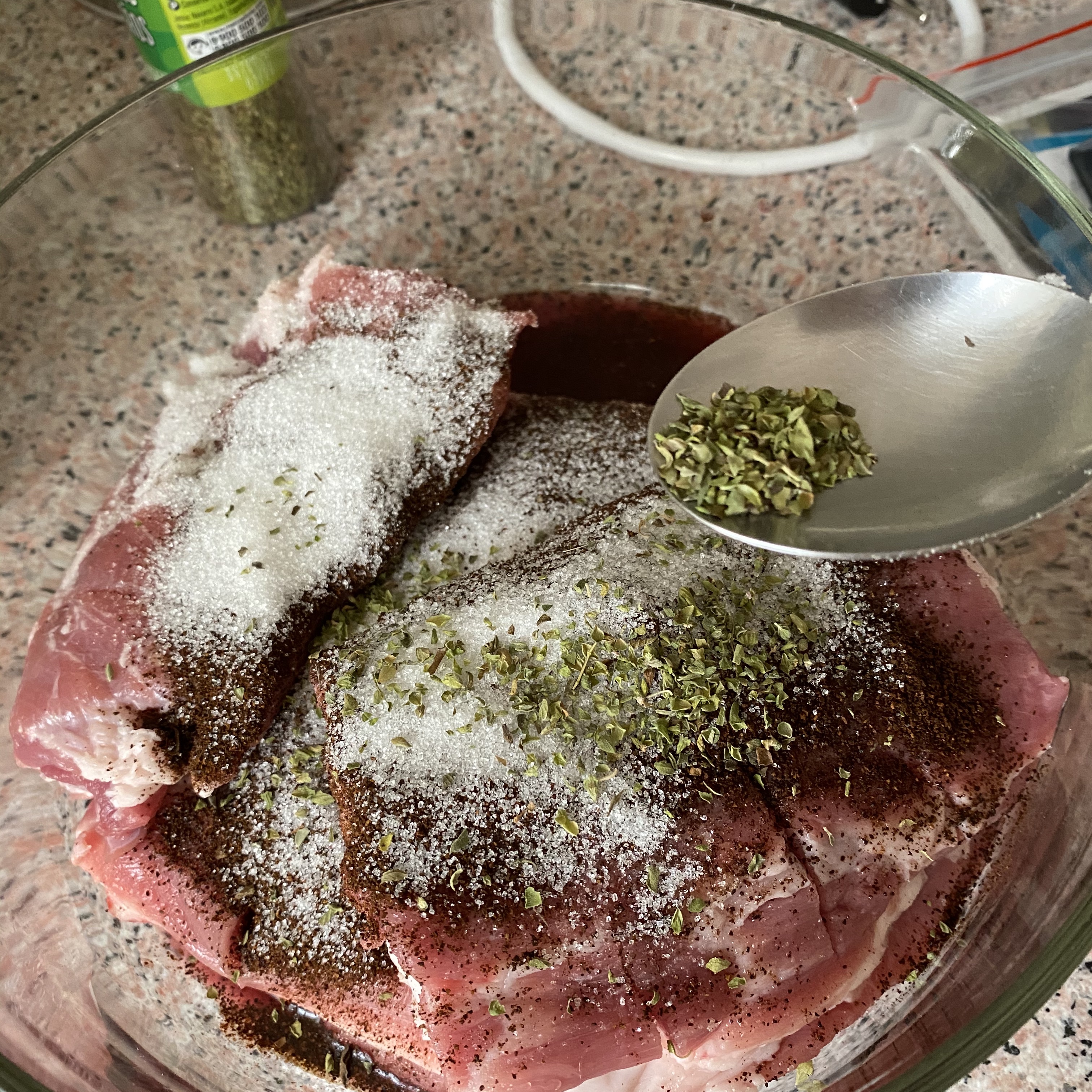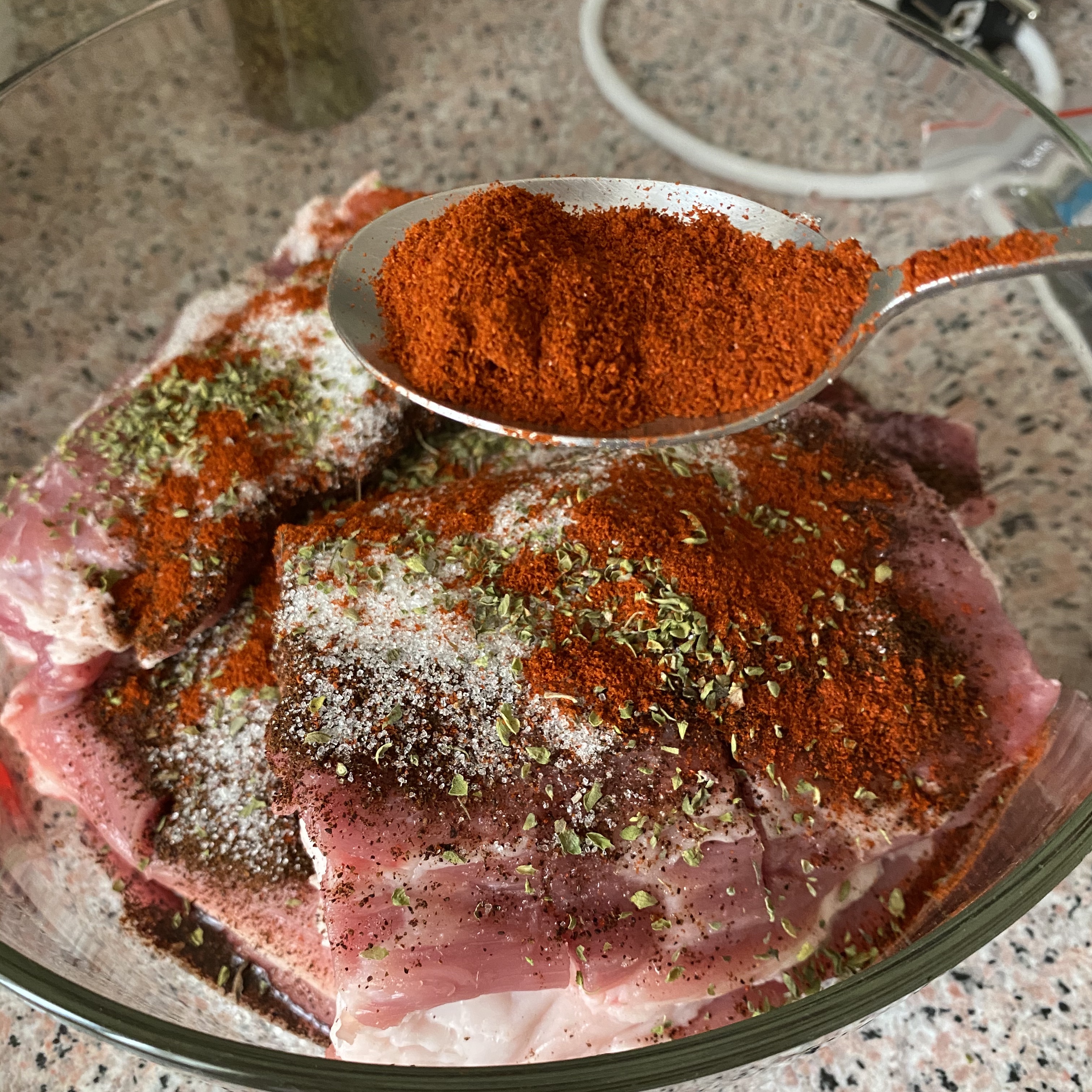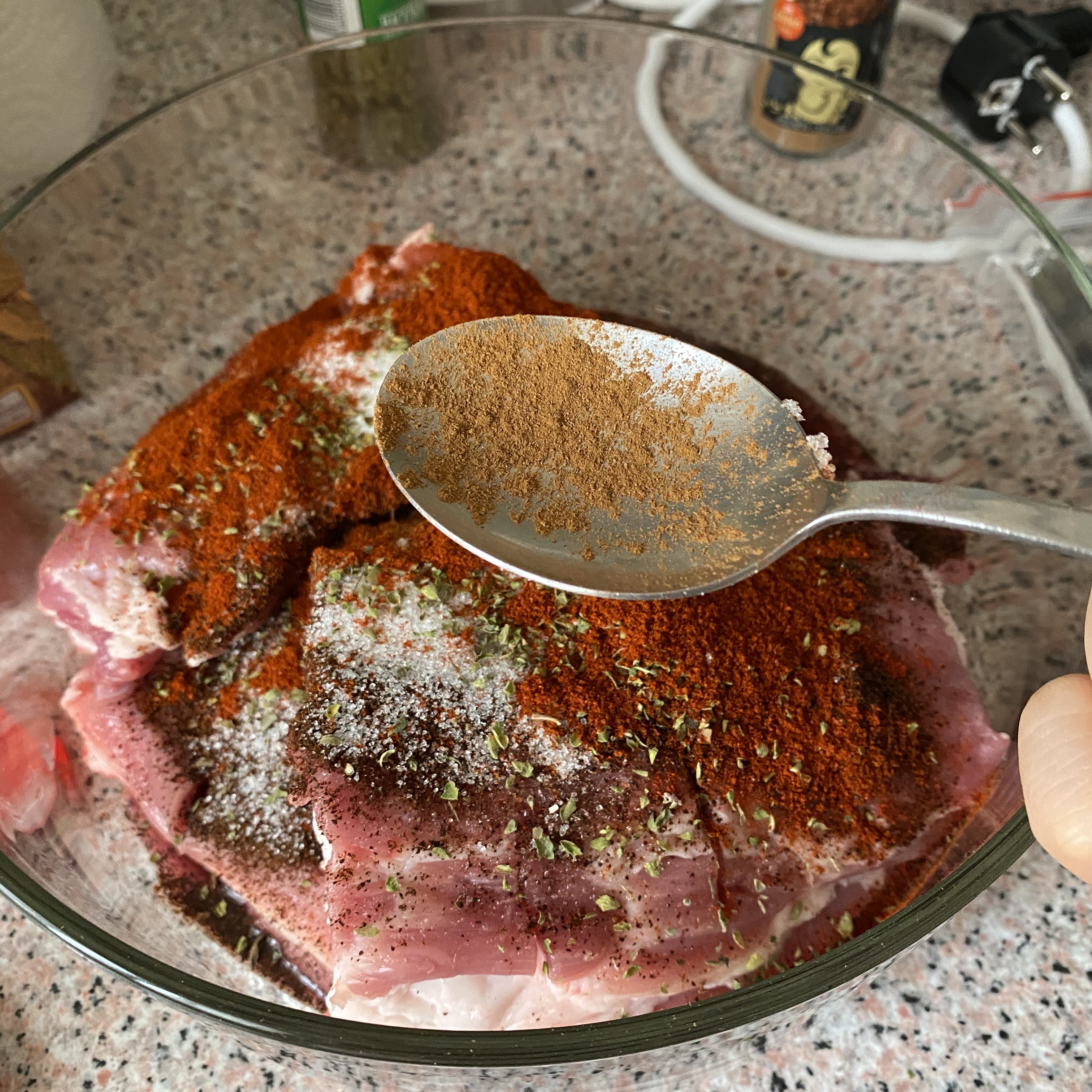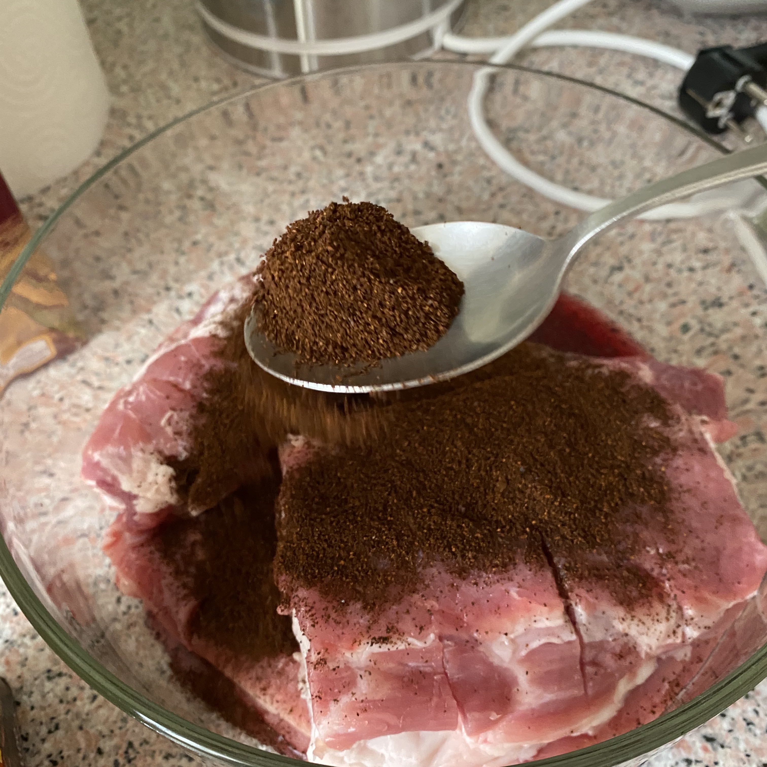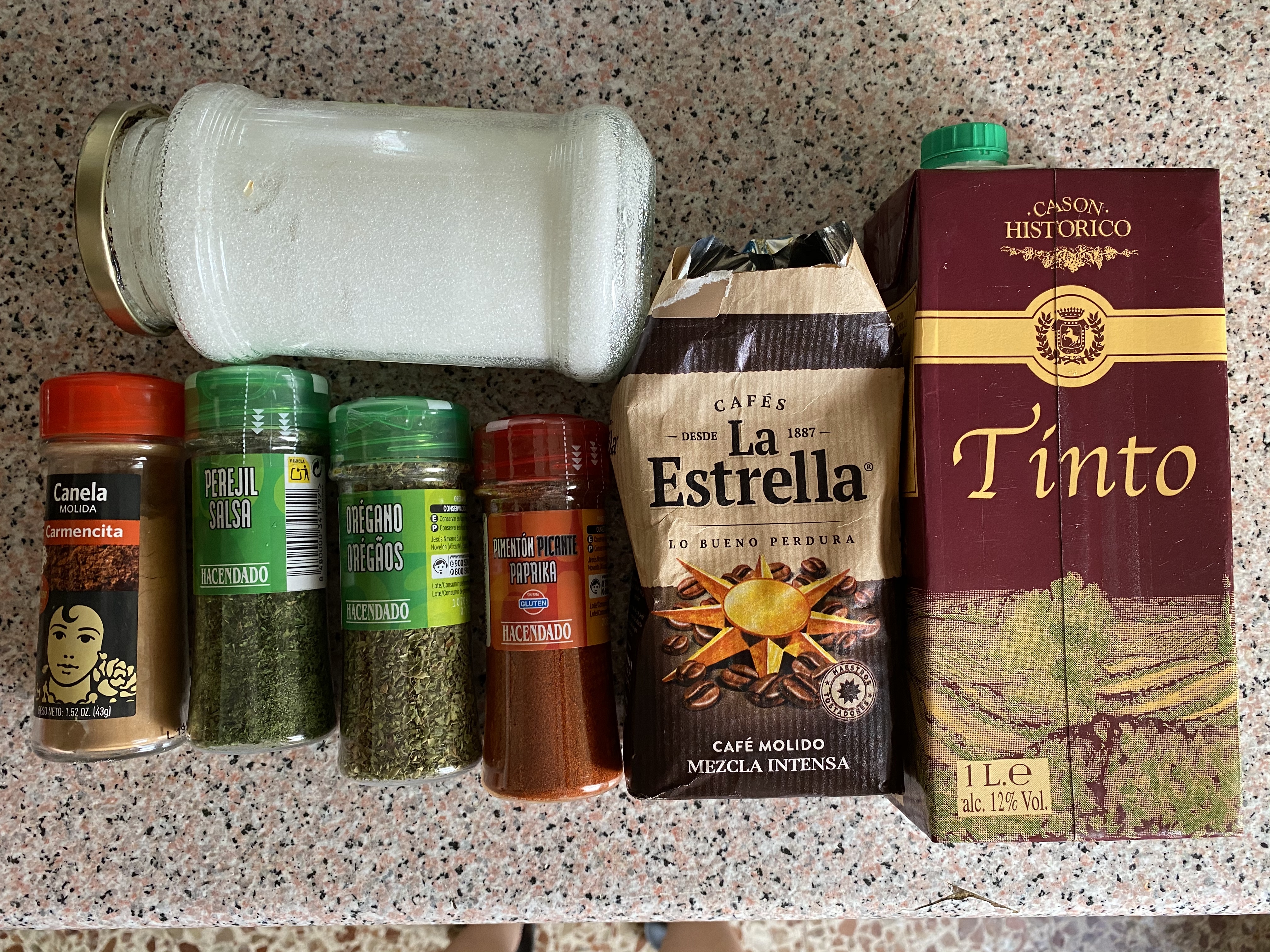 갈비를 네조각으로 잘랐다. 오늘꺼 내일꺼! 그리고 필요한 재료들을 준비했다. 시나몬 가루, 파슬리, 건오레가노, 파프리카 가루, 커피 가루, 와인, 설탕 이렇게 준비를 했다.