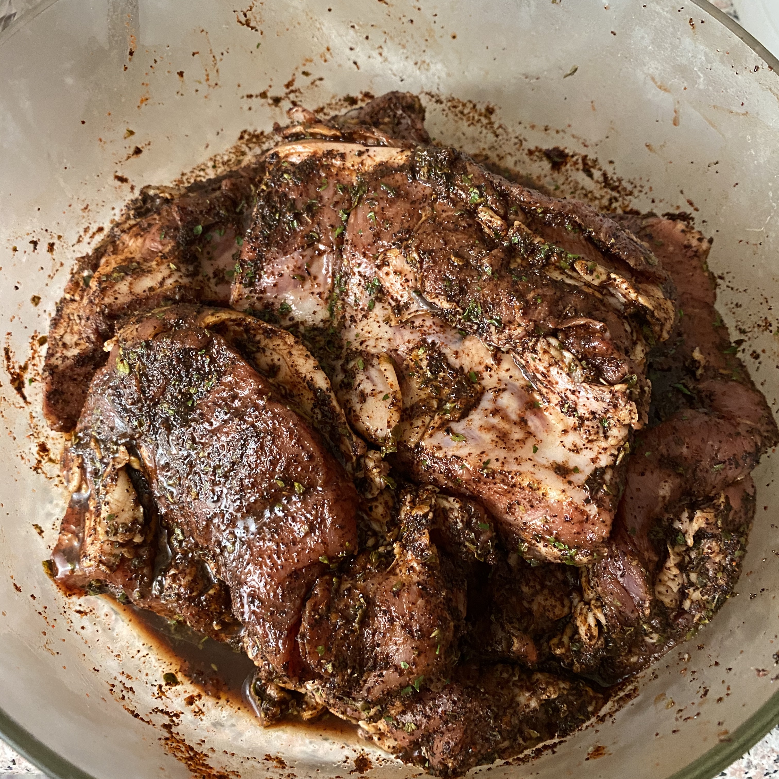 모든 재료를 넣고 막 잘 섞어 주고, 호일로 감아서 냉장고에 한 시간 정도 넣어놨다. 원래 추천은 하룻밤이라고 하는데, 뭐 재료를 늦게 사왔고, 그리고 배가 슬슬 고파왔기 때문에 한시간만 넣어 줬다.