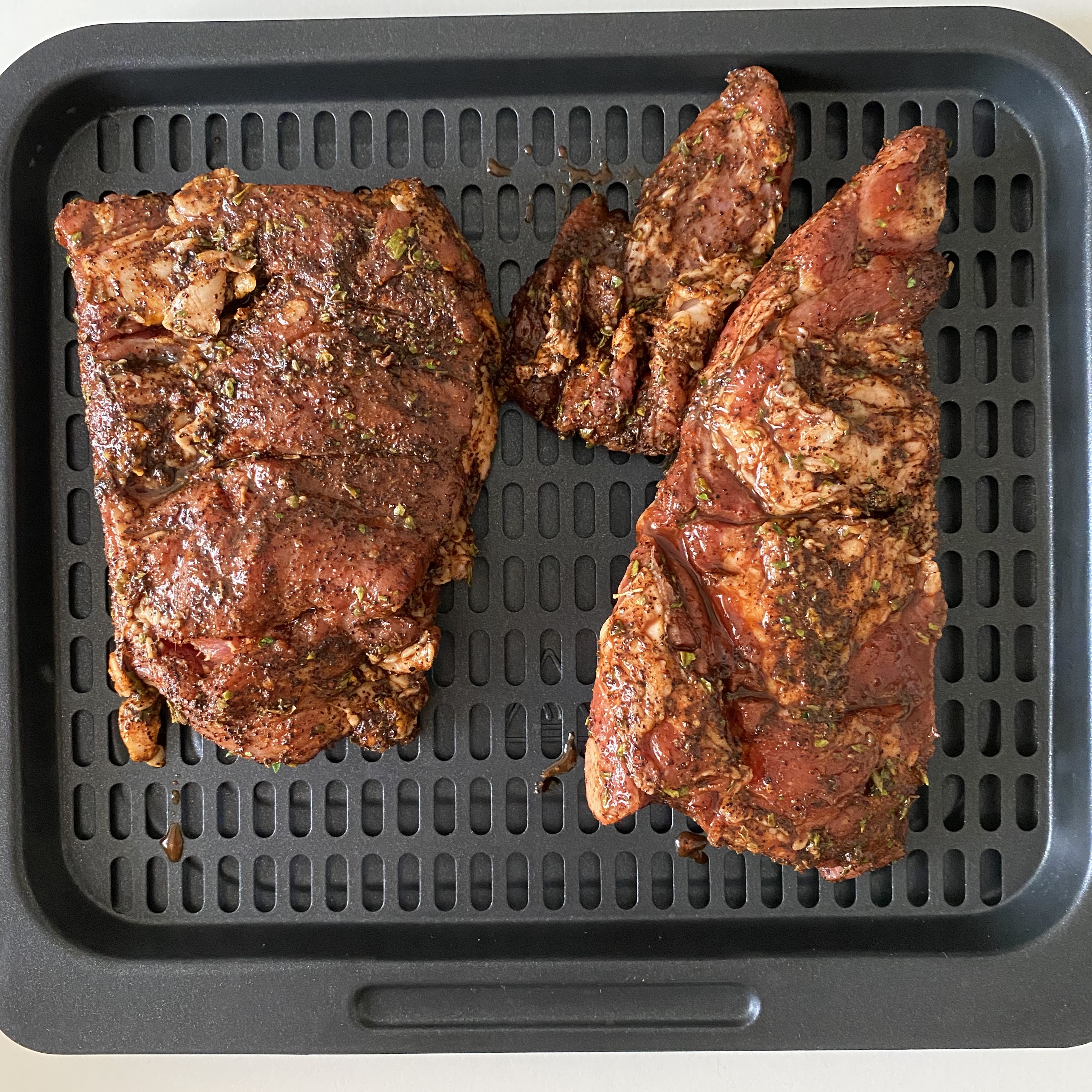그리고 이렇게 오븐 트레이에 준비를 해 준다. 살짝 위에 올리브 오일을 얹어주어서 에어프라이어에 넣어 주었다.