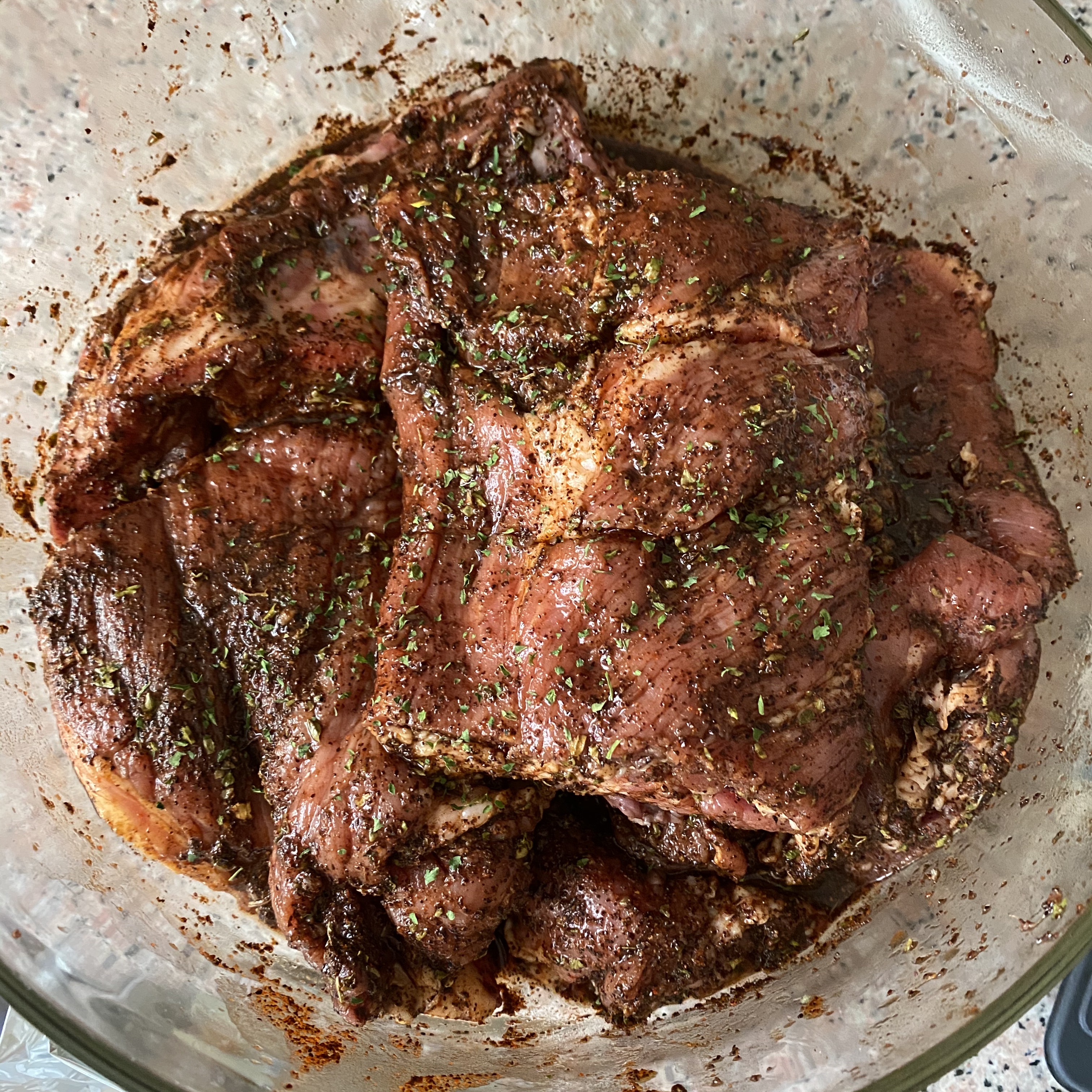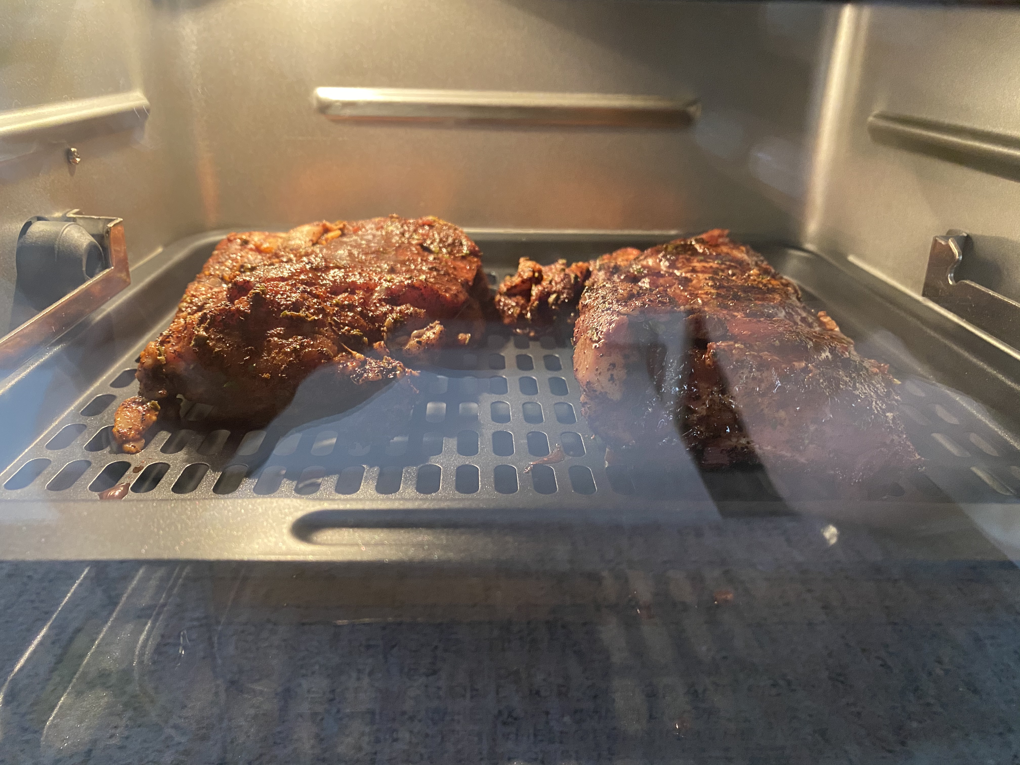 오븐 트레이에 놓고, 180도에서 25분하고 15분?정도 더 구워줬다. 동영상에서는 오븐에 할 거면 호일에 싸서 2-3시간 정도 180도에서 굽고 200도에서 15분 더 구우라고 했는데, 급한 마음에 그냥 구워줬다.