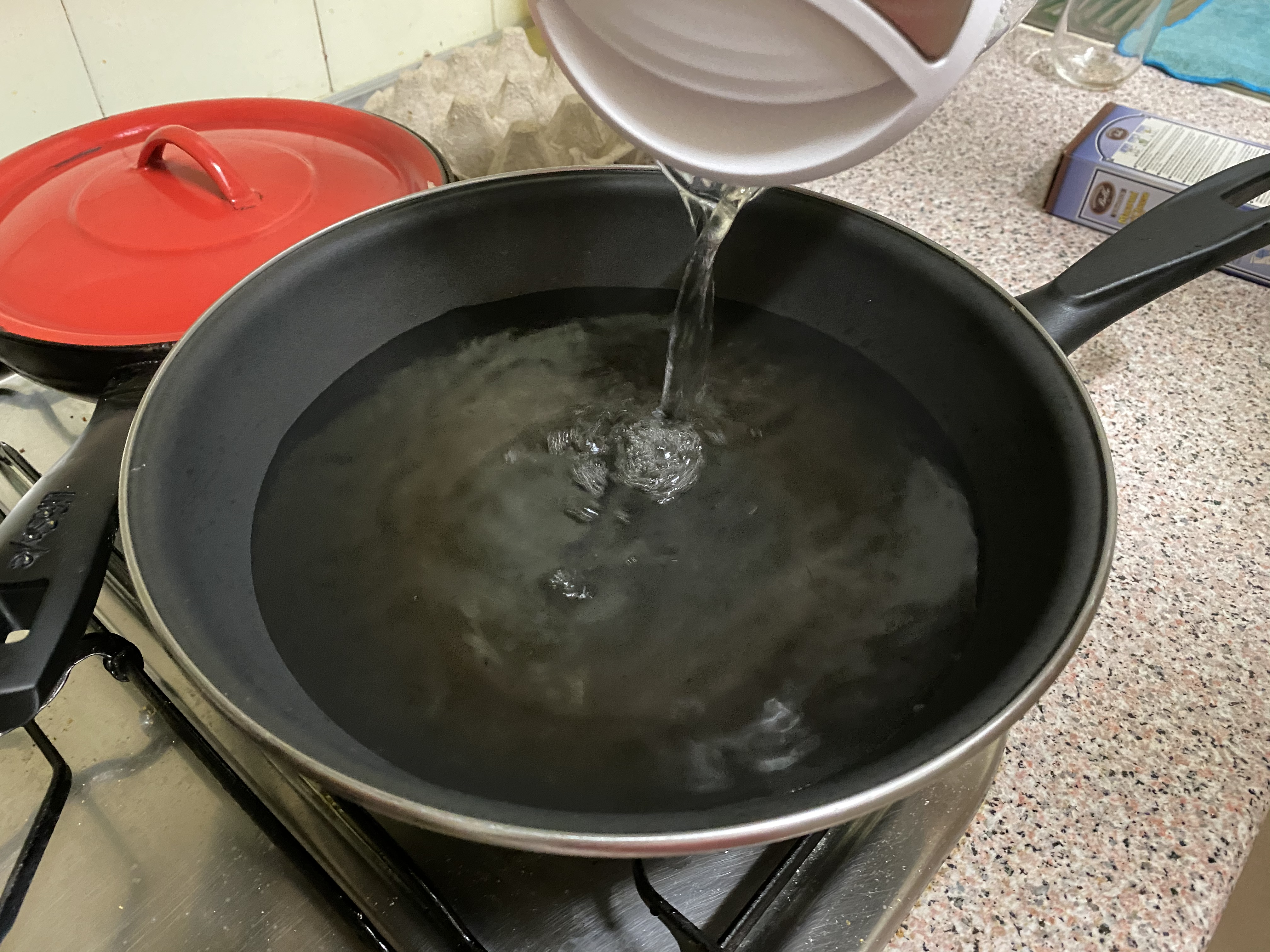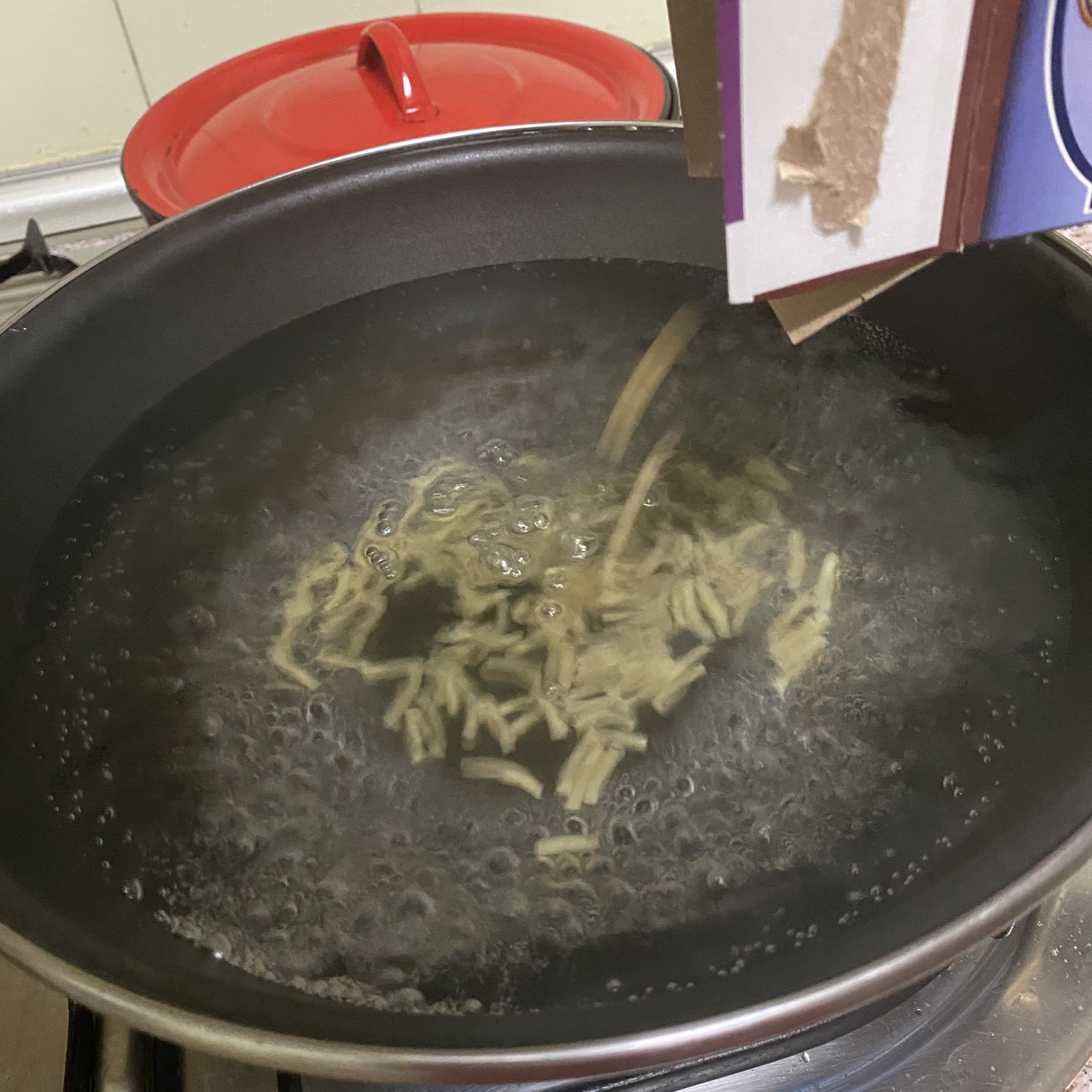 그래서 먼저 더우니 샤워를 쭉 하고, 마카로니를 준비했다. 먼저 레시피에는 2리터의 물을 넣으라고 했는데, 우리는 1.7리터만 넣었다. 샤워하기 전에 커피 포트에 물 미리 데워놨다. 이 물은 마카로니 면을 익히기 위함이었다. 면 익히려고 2리터는 너무 한 것 같다. 적당히 부어주면 된다.