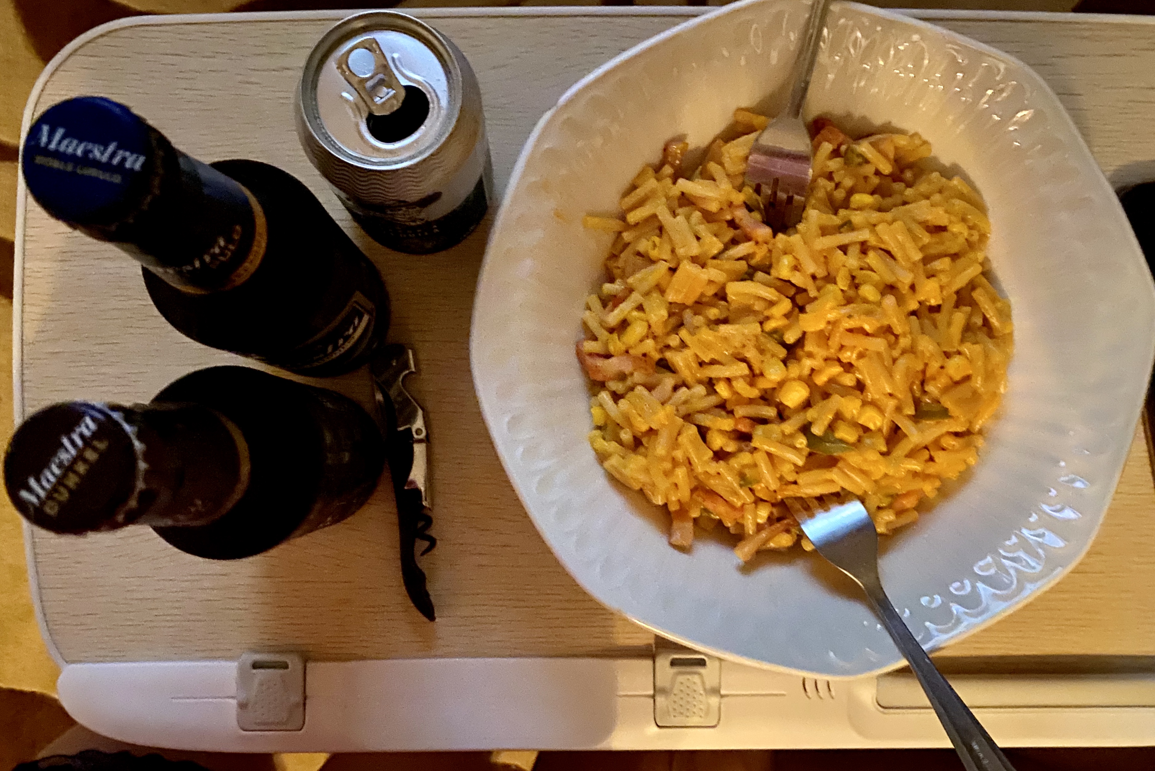 아예 같이 퍼 먹으려고 한 그릇에 준비했다. 그리고 아까 사온 맥주들도 함께 놨다. 저기 작은 캔은 요리하면서 마신 테킬라 섞인 맥주인데,너무 맛있다. 세상에 맛있는 게 왜 이렇게 많은거야.