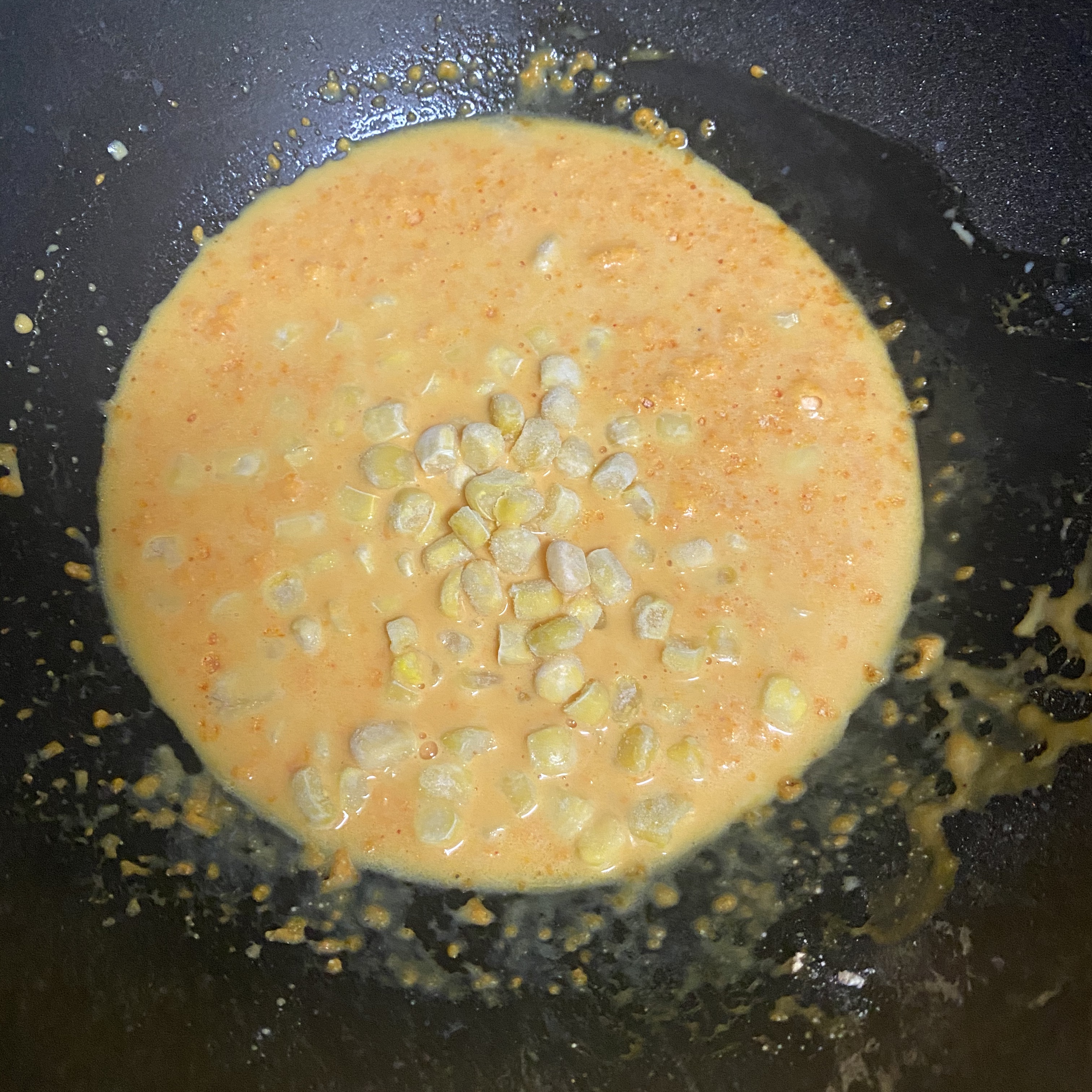 갑자기 생각나서 냉동실에 있던 옥수수도 넣어줬다. 엄청 노랭노랭하니 맛있게 생겼다.
