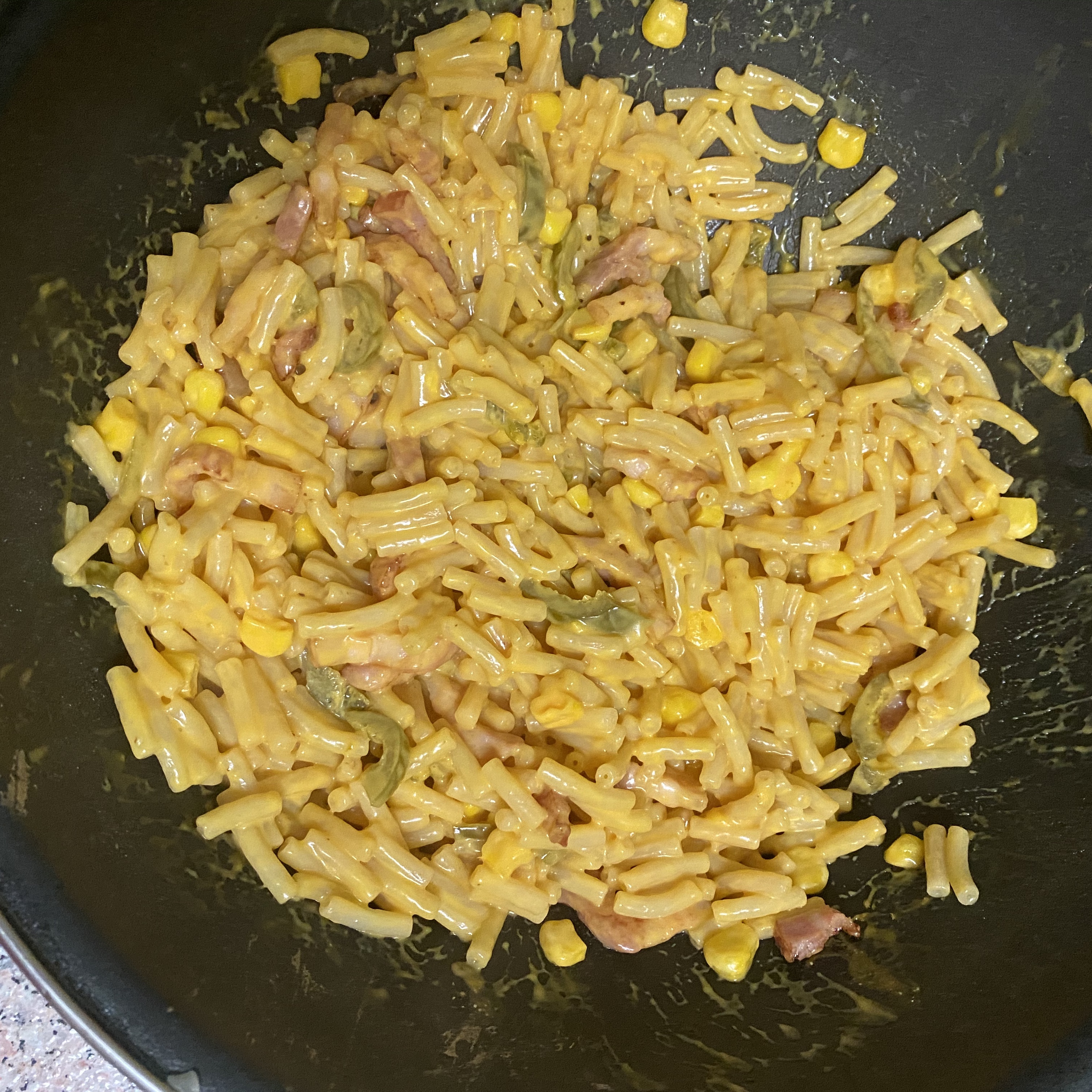근접샷이다. 마카로니에 할라페뇨와 베이컨을 넣은 건 정말 잘한 일이었다. 특히, 할라페뇨의 매운맛이 느끼함을 잡아주었다. 이거 완전 미국 라면이네. 나중에 마트가서 더 사와야겠다. 요리하기 싫을 때 먹어야지. 헤헷