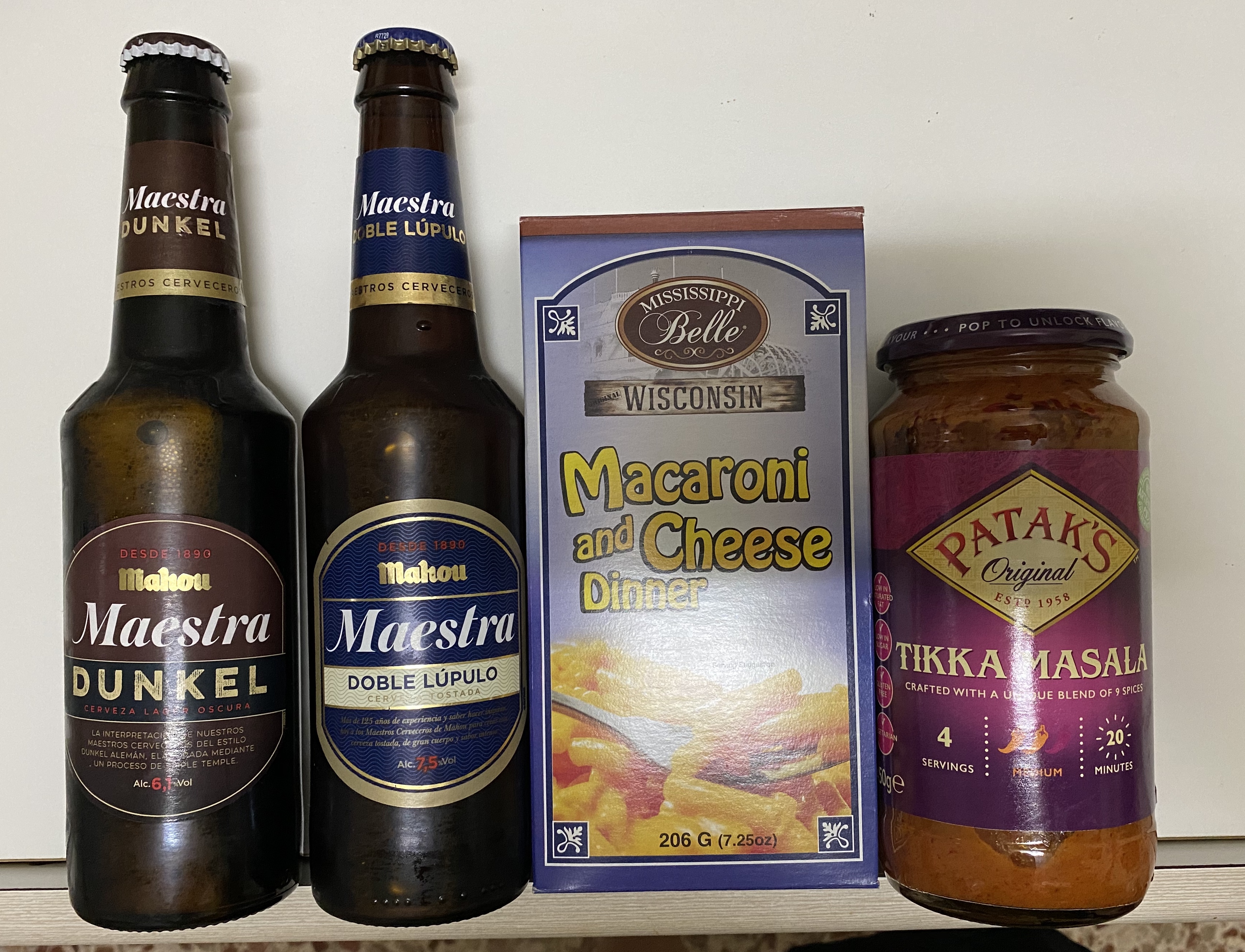 집에 오는 길에 작은 마트에 들러서 저녁을 사왔다. 흐흐흐 맥주 두병이랑 맥앤치즈, 티카 마살라 소스이다.