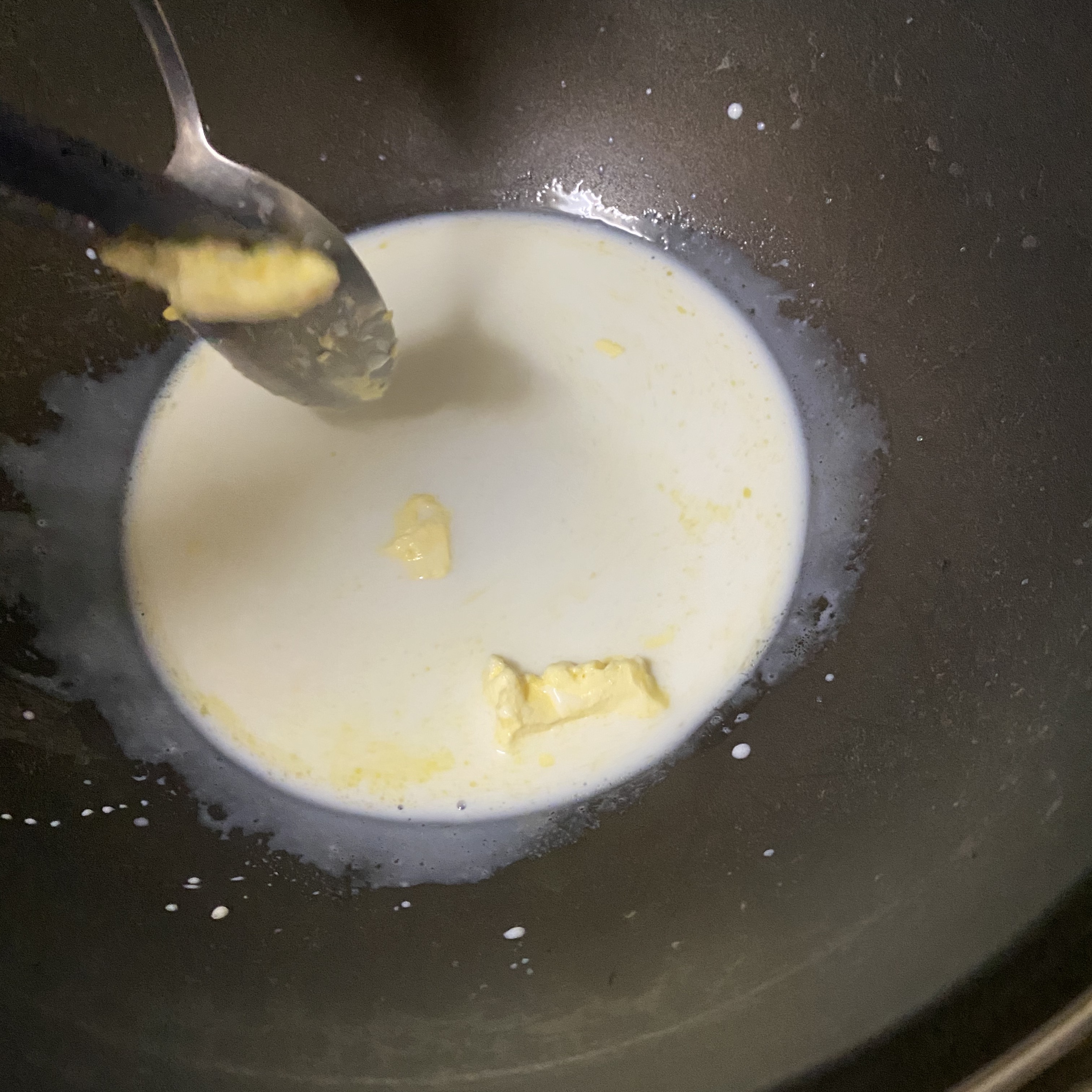 그리고 같은 냄비에 우유와 버터를 넣어 주었다. 버터는 얼마 없어서 1숟가락만 넣었고, 우유는 4숟가락을 넣으라고 하는 데, 버터가 덜하니 더 넣었다. 그리고 같이 들어있던 치즈 소스까지 넣어 주었다. 덩어리 지지 않게 열심히 저어줬다.
