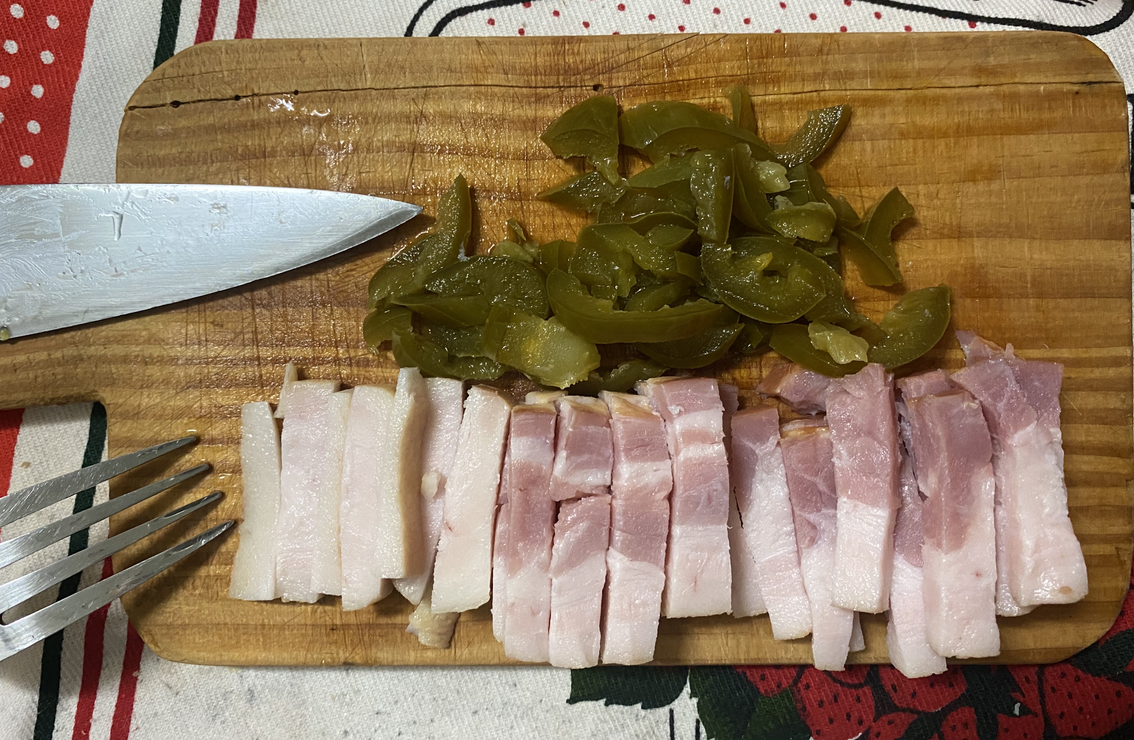 그리고 따로 할라페뇨와 베이컨을 준비했다. 전에 유튜브에서, 언젠가는 해봐야지 하면서 마카로니 만드는 법을 본 적이 있는데, 치즈가 많이 들어가서 느끼할 수 있으니 넣으면 좋다고 했다. 그리고 예전에 한 7~8년 전에 ㅎㅎㅎ 교회에서 주최하는 영어 캠프에 스탭으로 참여한 적이 있는데, 그 때 온 미국인들이 나에게 마카로니를 준 적이 있었다. 내가 잘 못해서 그런가 집에서 해 먹었을 때 엄청 느글느글 했던 기억이 있었다. 그래서 할라페뇨와 베이컨을 넣기로 했다.