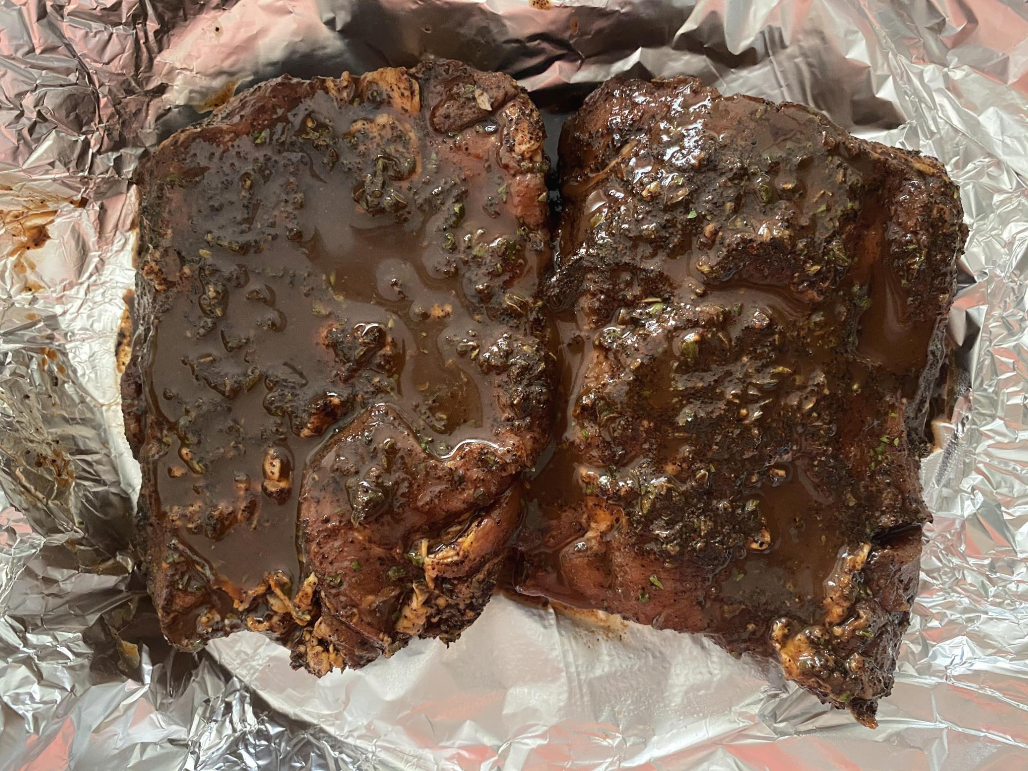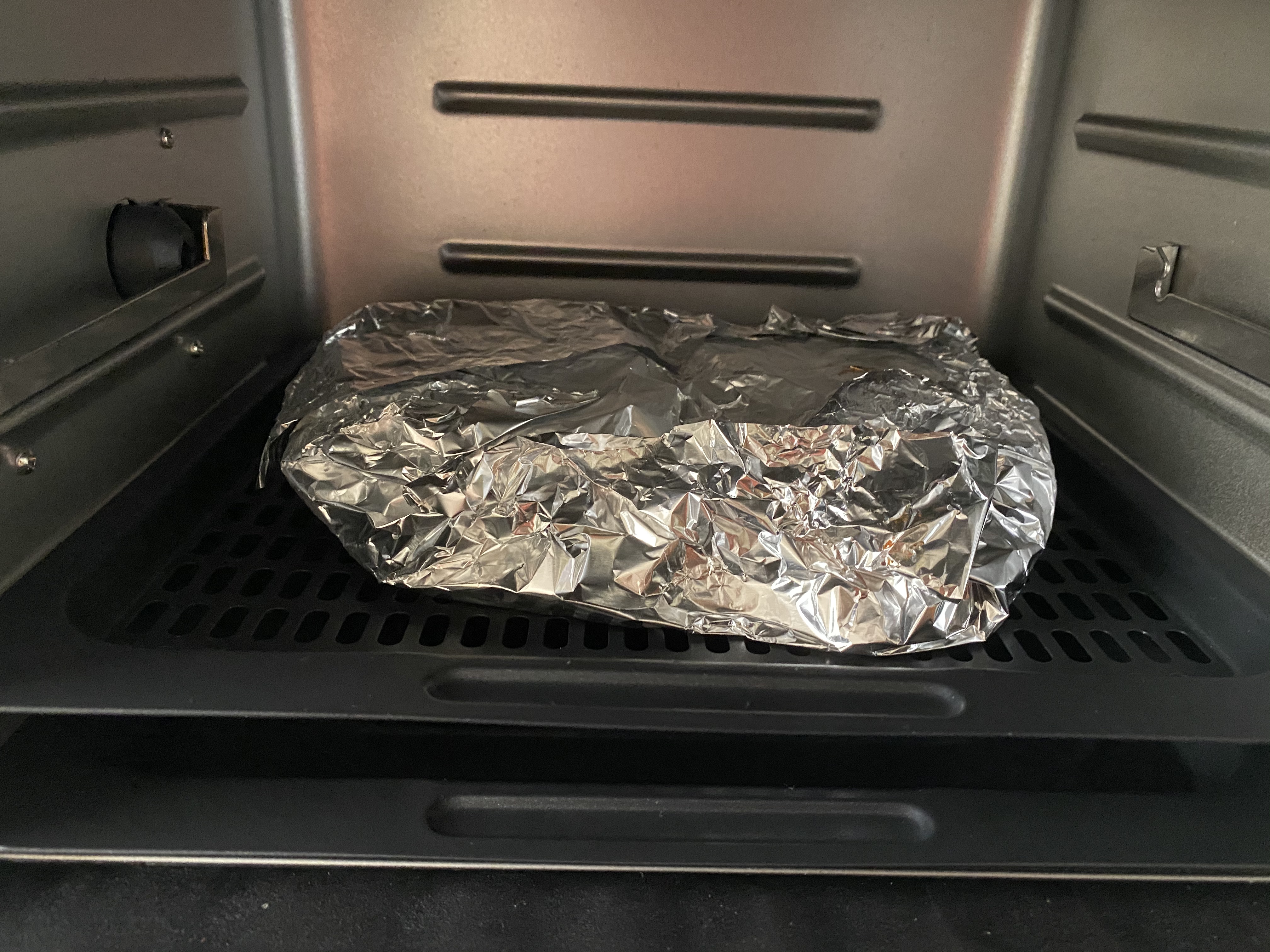 이후에 뒤집어서 한 15분 정도 굽다가, 안에 확인을 해 보니 다 안 익어서 호일을 열어서 10분, 다시 뒤집어서 10분 정도 구웠던 것 같다. 갈비 시간이 정말 오래 걸린다.