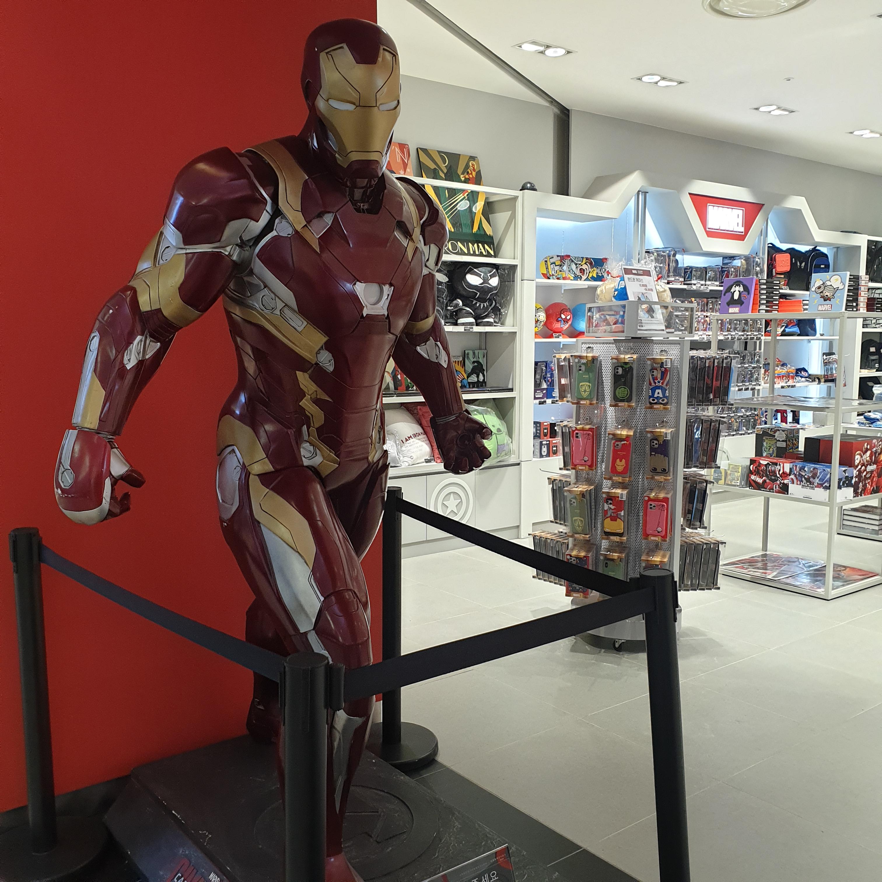 이게 무슨일이야!! 마블가게가 생겼다. 입구에 나보다도 큰 아이언 맨이 있다.