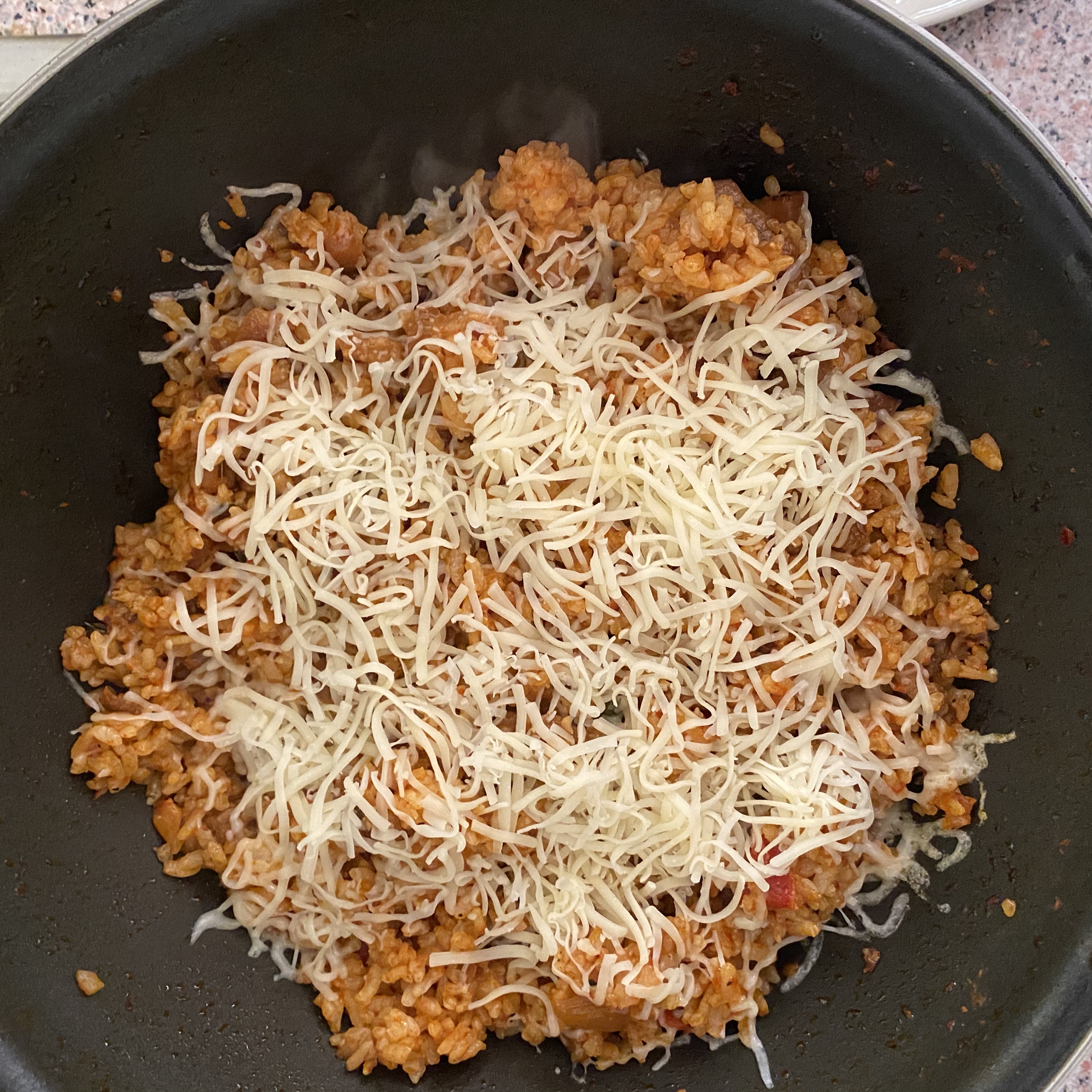 짤 비벼주고, 위에 치즈를 얹어줬다.