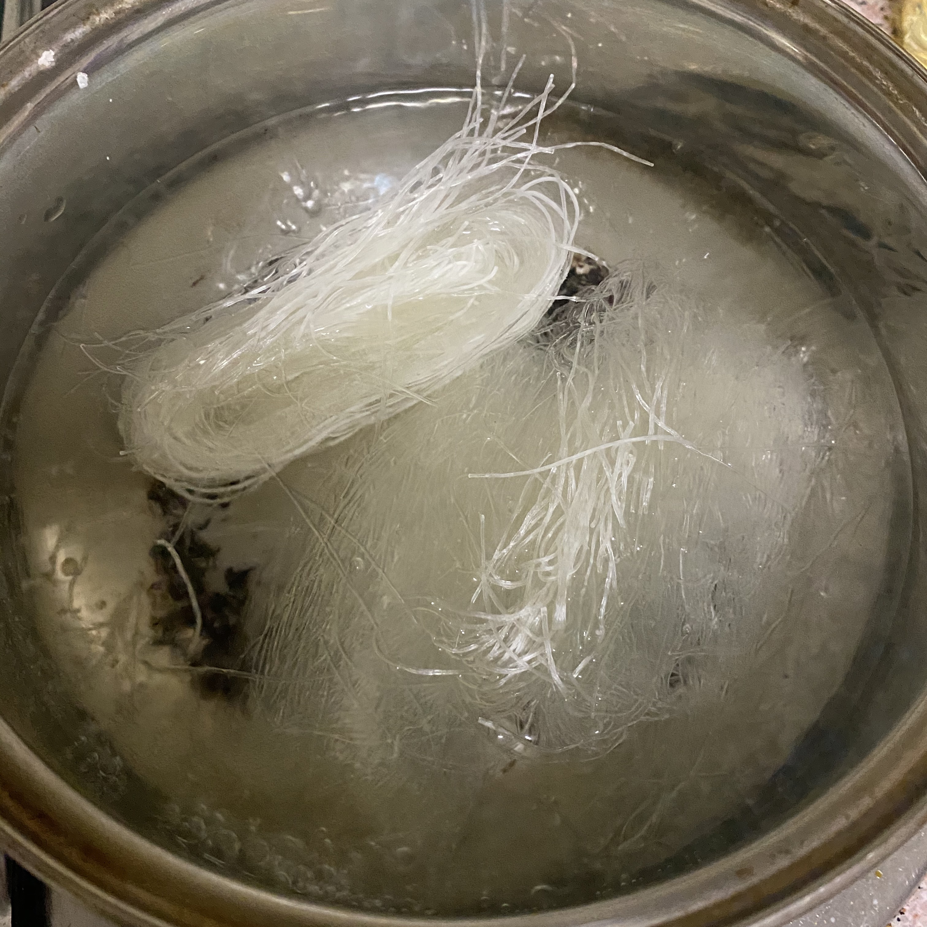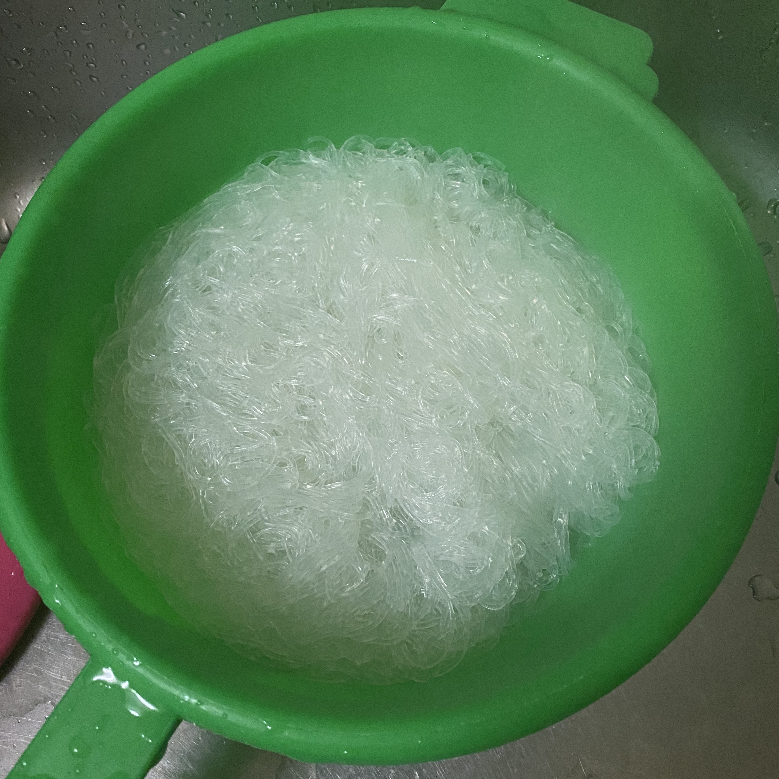 면은 중국 쌀면이다. 얇아서 금방 익는게 너무 좋다. 익혀서 차가운 물에 헹궈준다.