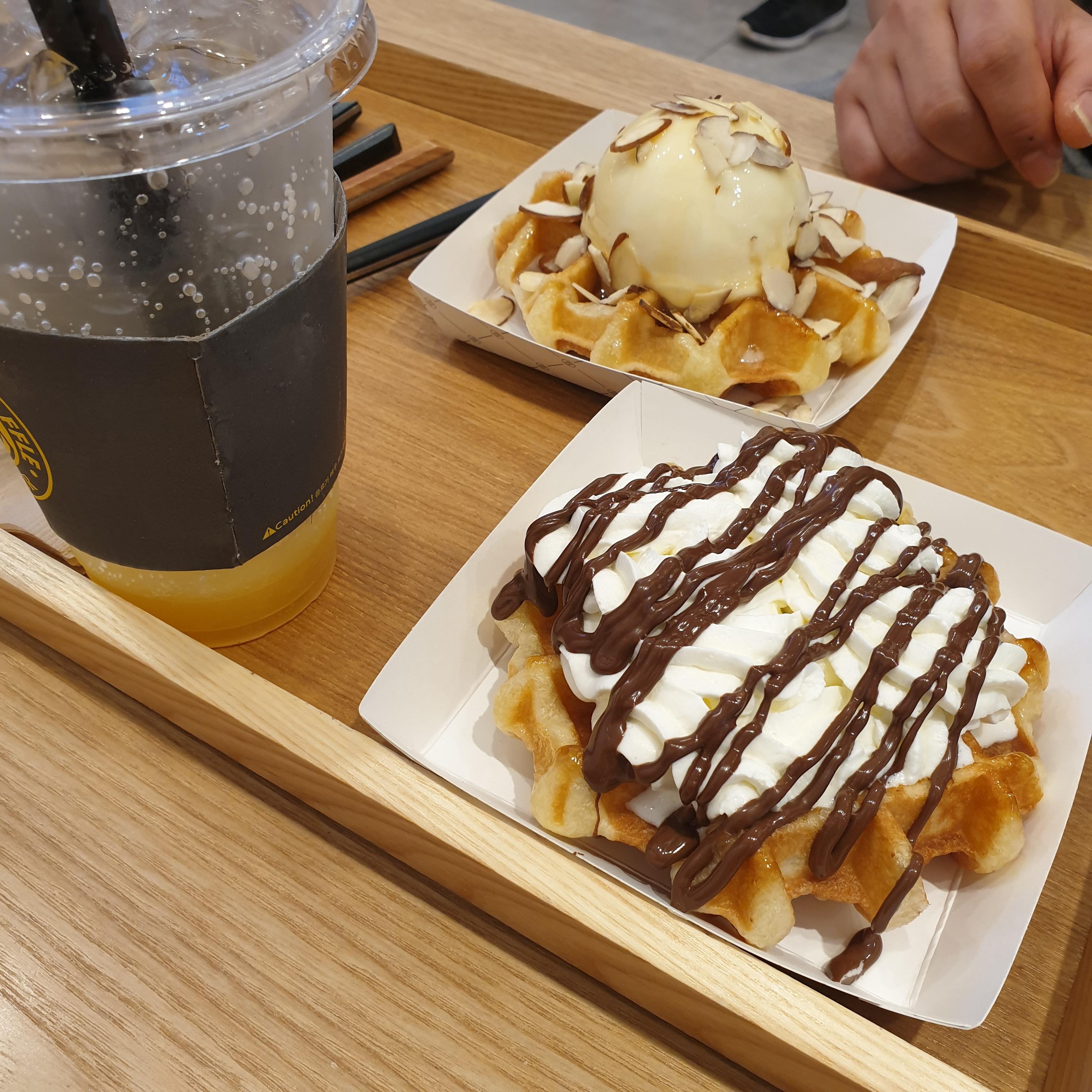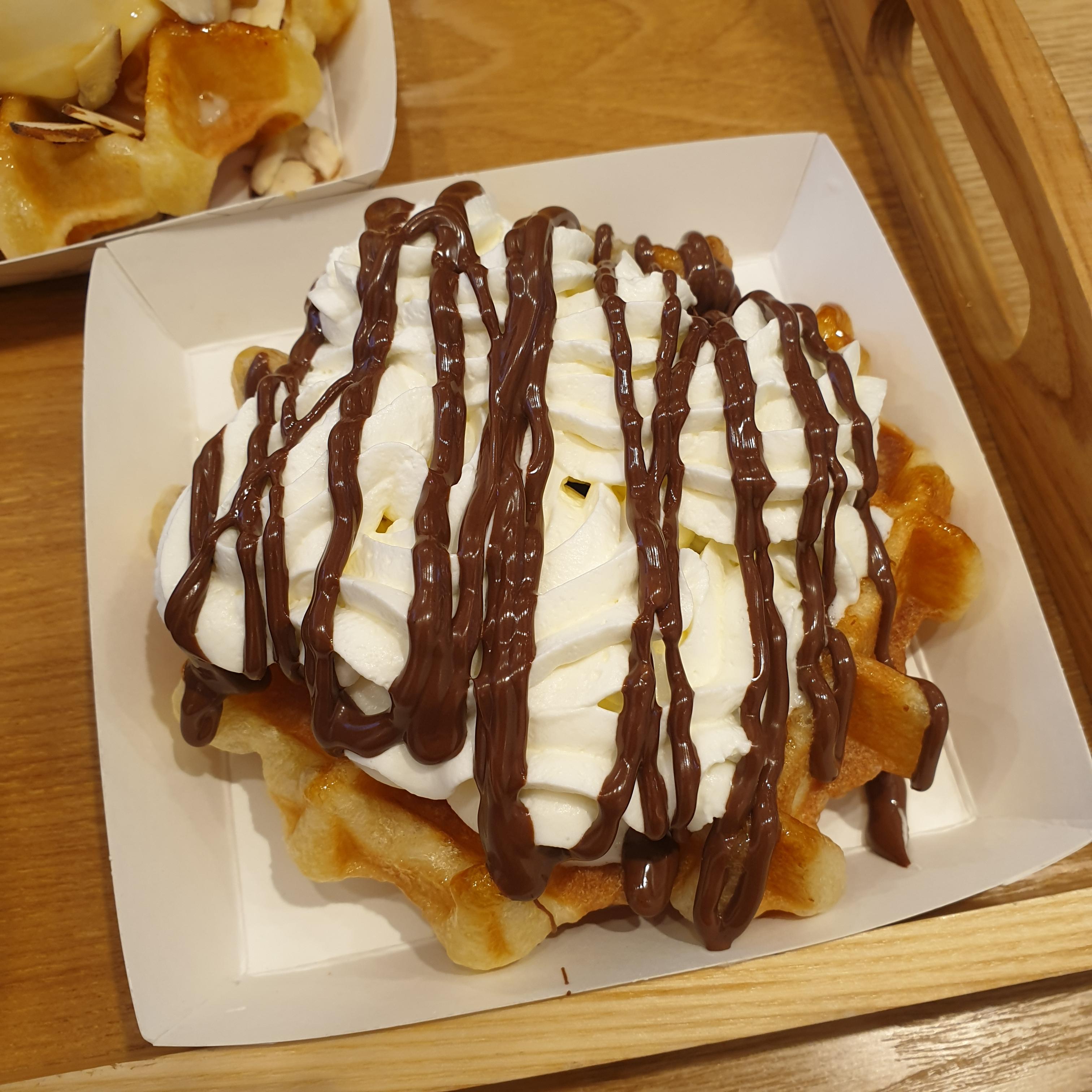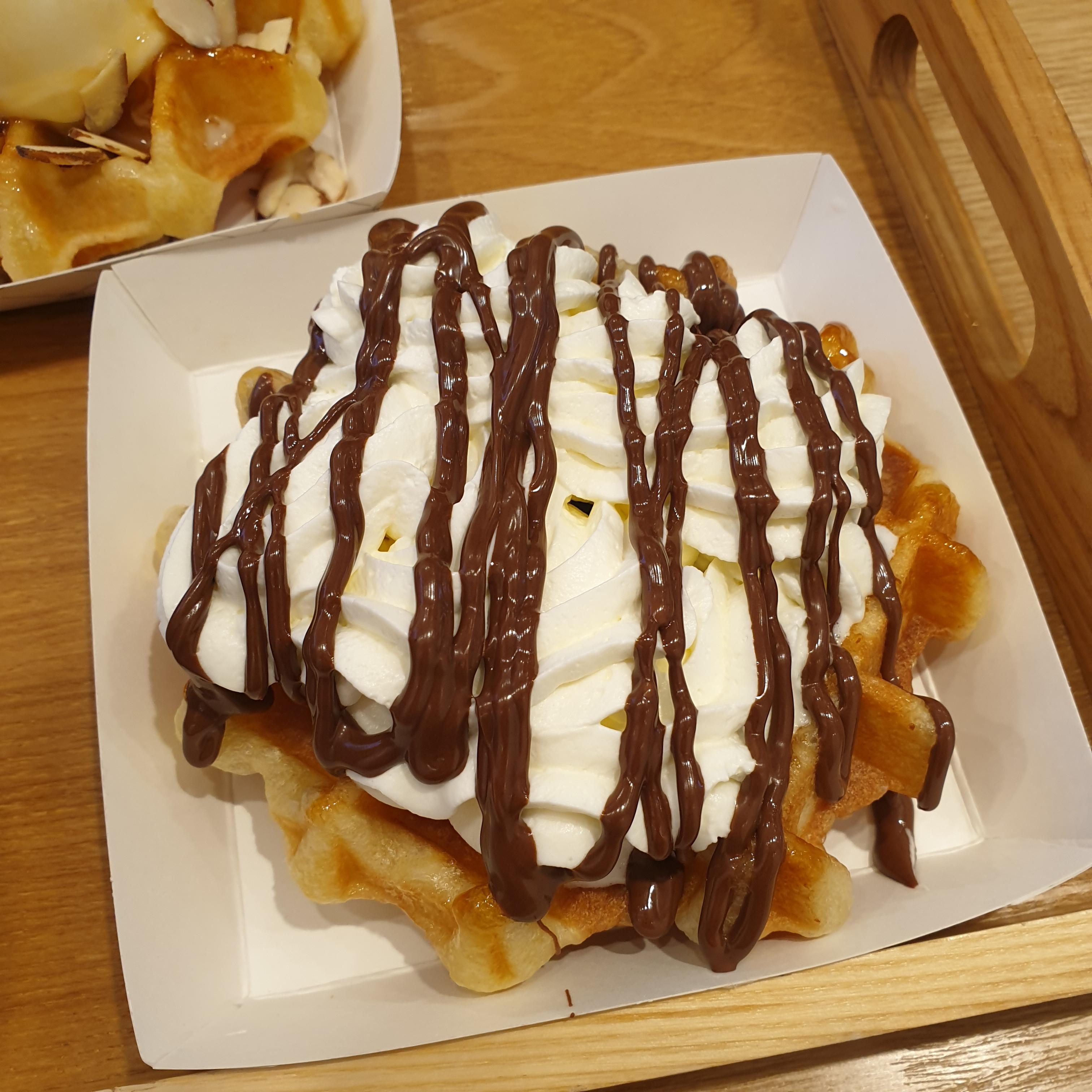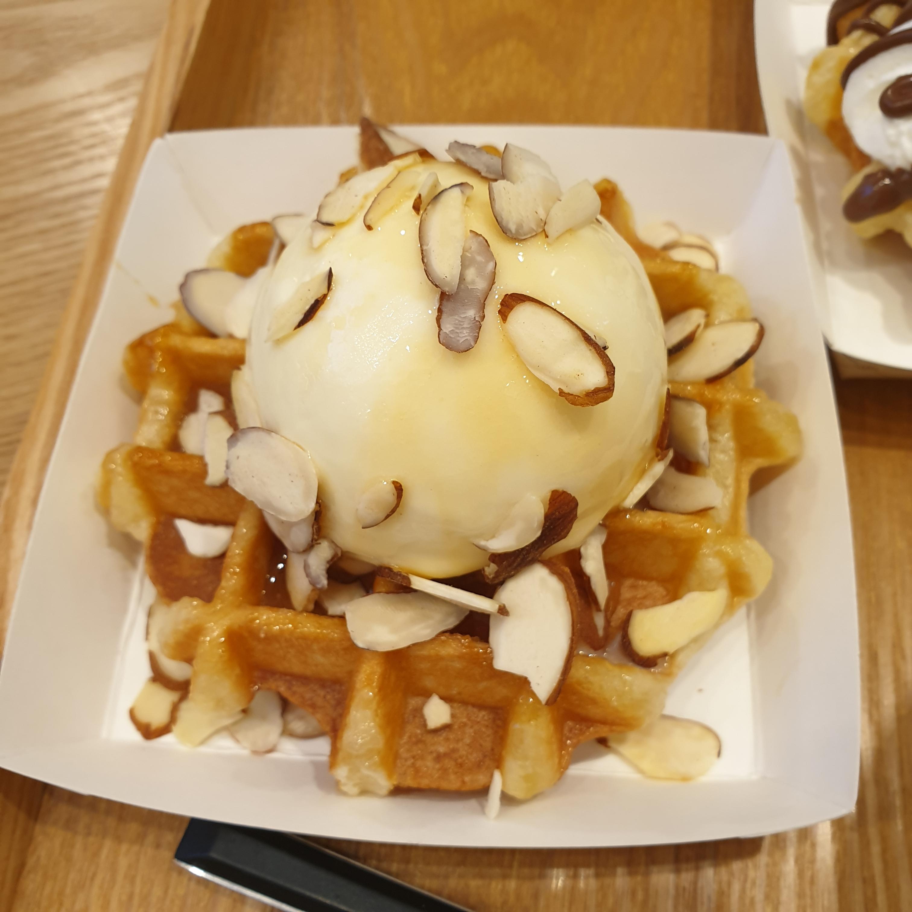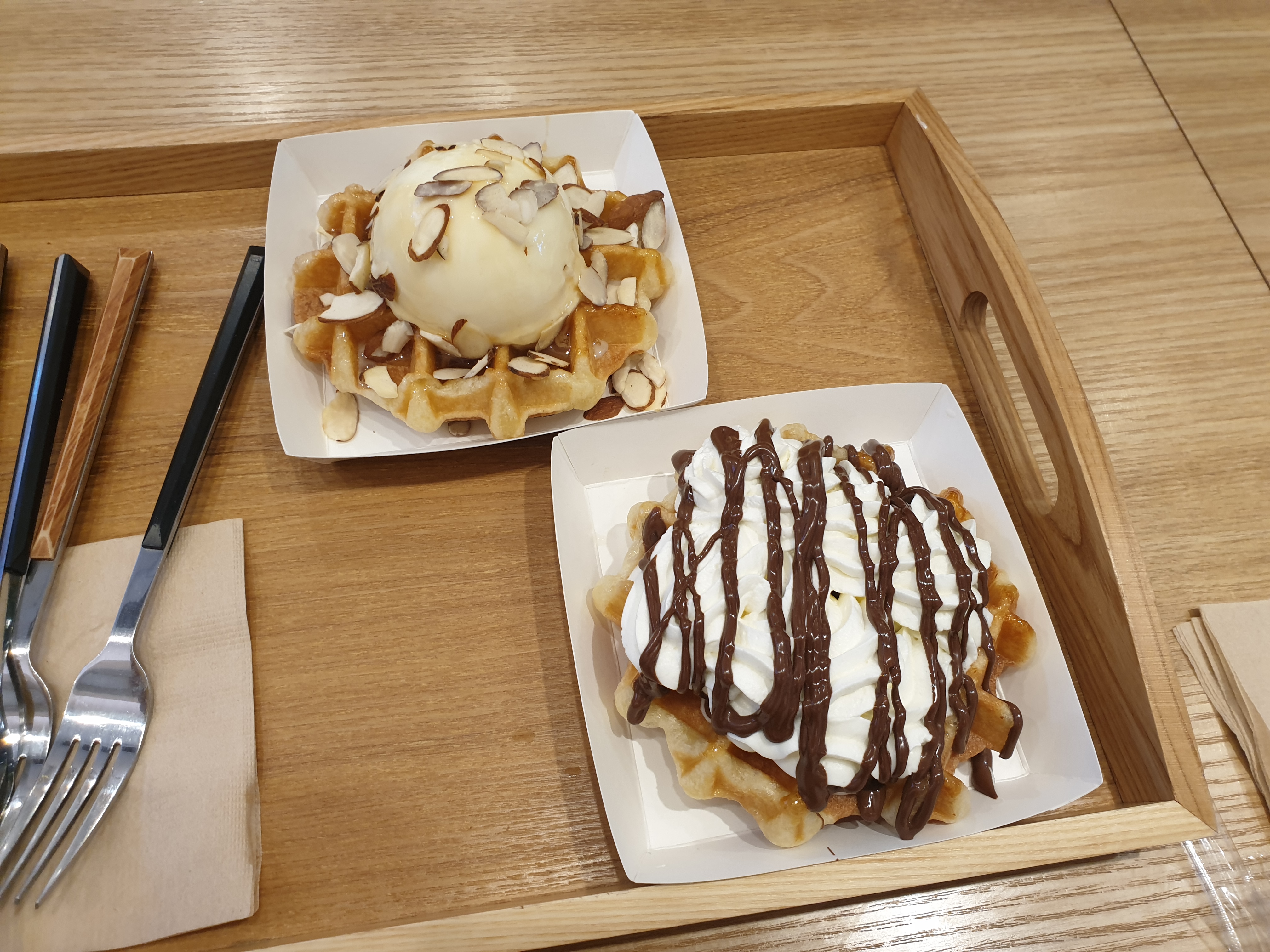 두 메뉴 다 엄청 달콤하고 맛있었다. 생크림 와플은 엄청 부드럽고 누텔라가 뿌려져 있어서 달콤했다. 아이스크림와플은 시원한 아이스크림과 따뜻한 와플 조합이 좋았다. 바닐라 향도 진했다. 여름이라 그런지 아이스크림 와플이 더 맛있었다 ㅎㅎ