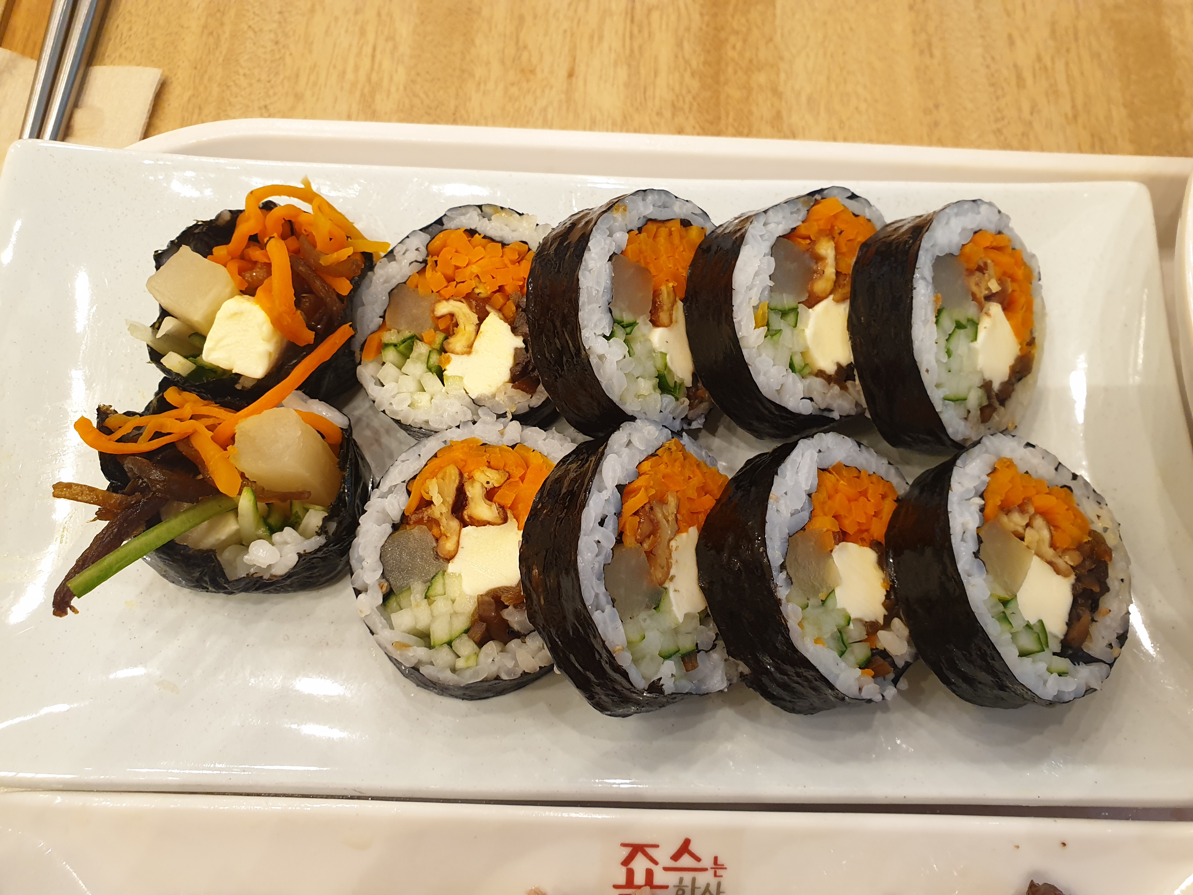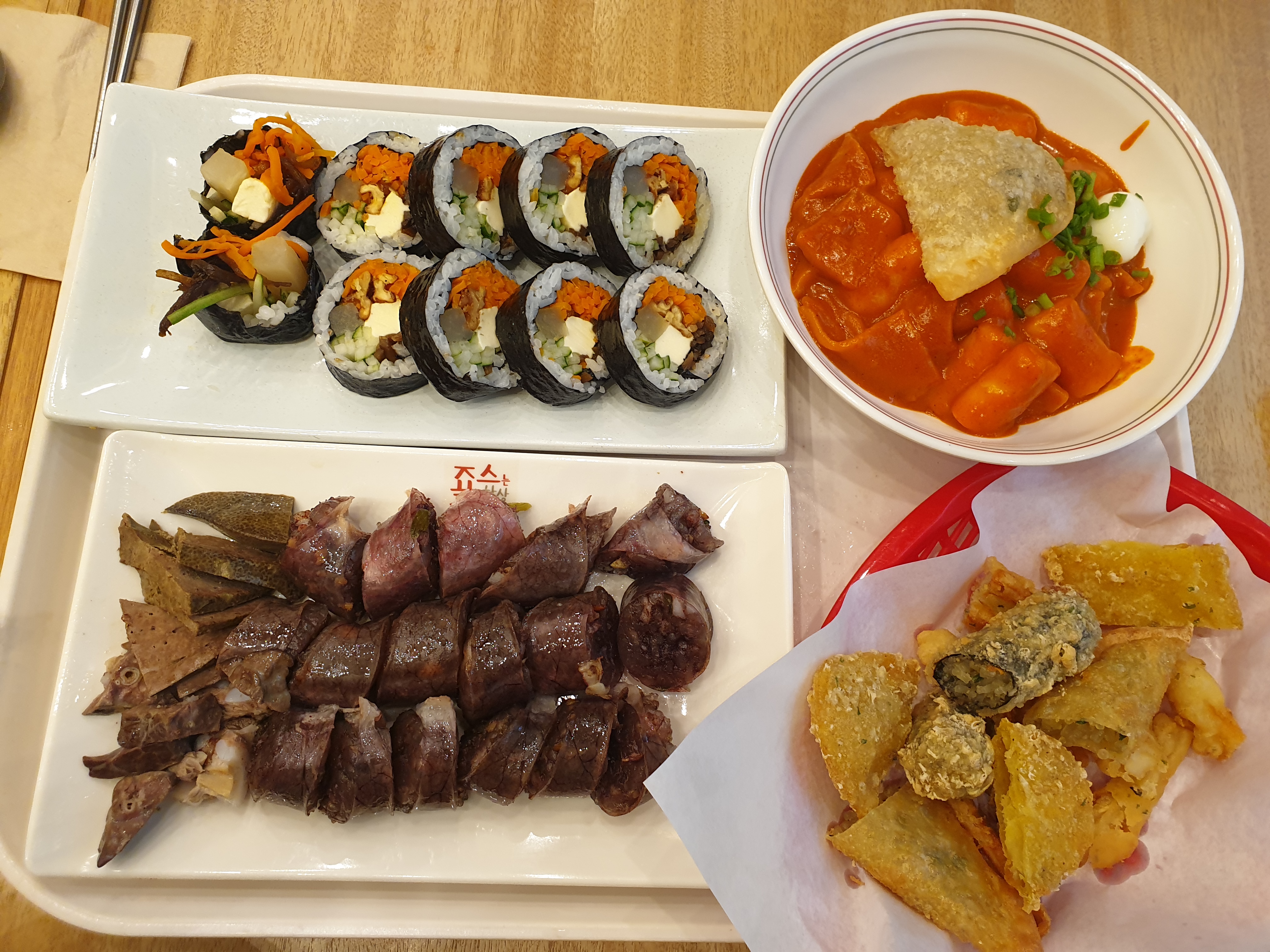 그리고 튀김과 순대와 김밥이다. 이 중에 김밥이 특히 맛있었다. 야채도 많고 크림치즈가 푹 씹히는 느낌도 좋았다.
