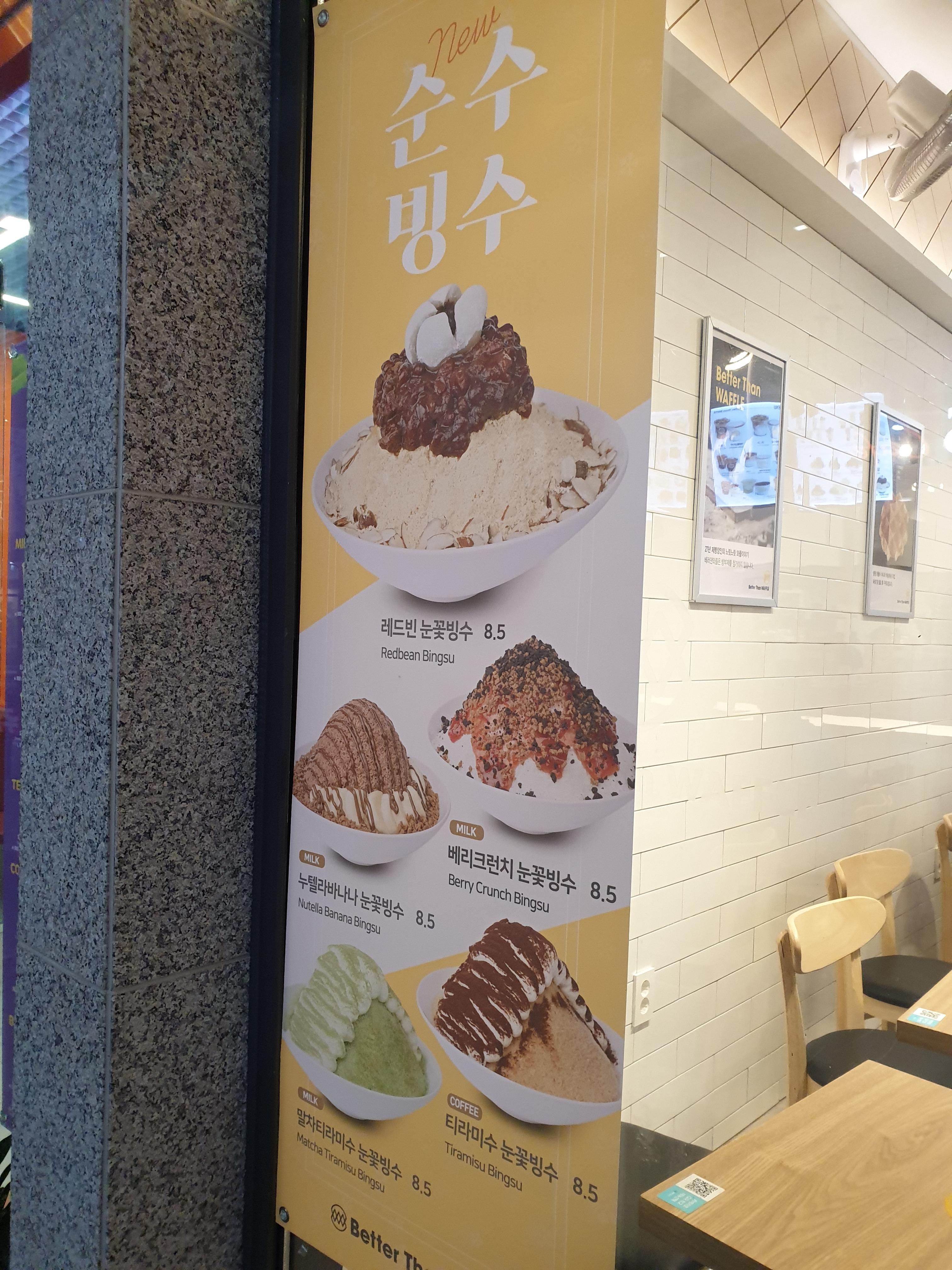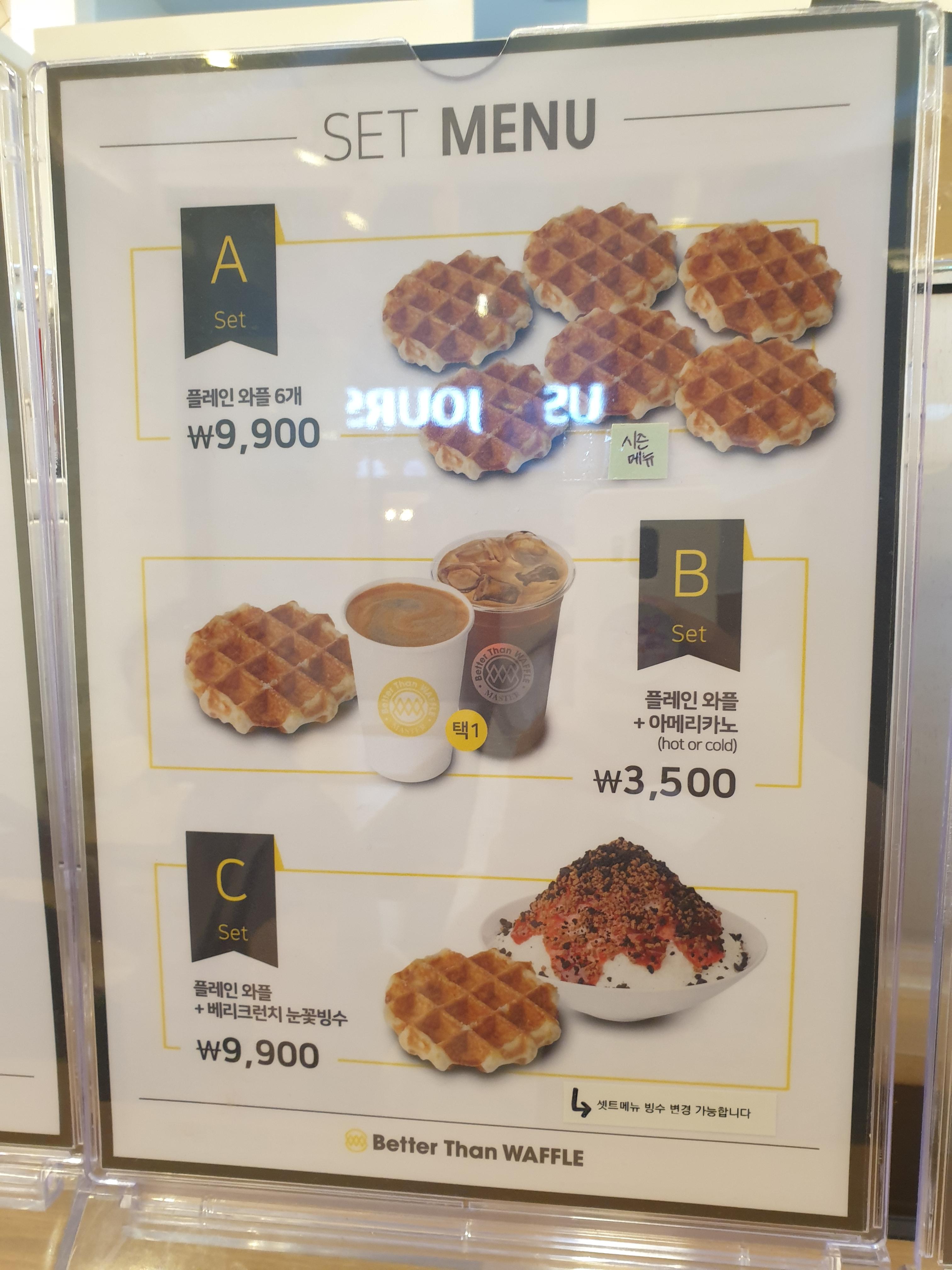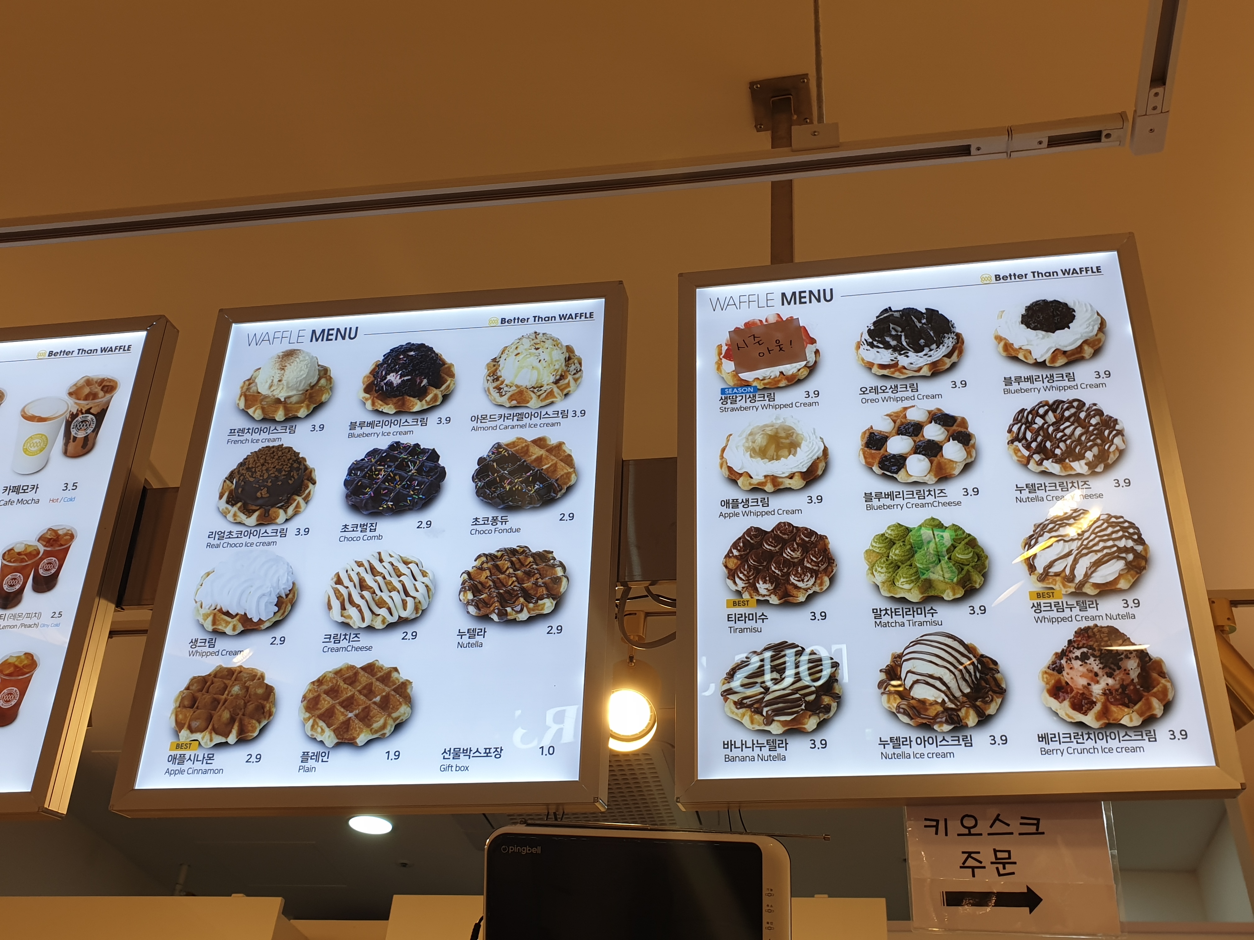 가게 이름은 "베러댄와플 Better Than WAFFLE"이다. 와플 크기는 작지만 토핑이 다양하고 가격도 비싸지 않은 곳이었다. 매장 내에 테이블이 3개밖에 없는건 단점이다 ㅠㅠ 우리가 들어갔을 땐 가게가 비어있었는데 테이블이 금방 꽉찼다. 포장주문하는 사람들도 많다.