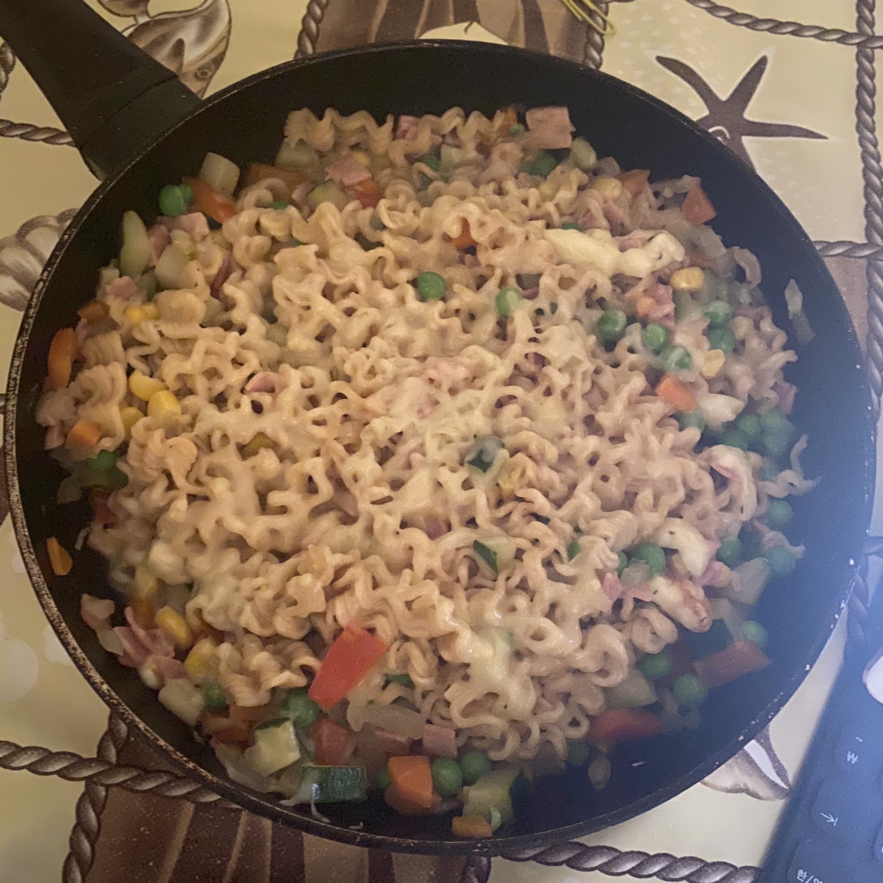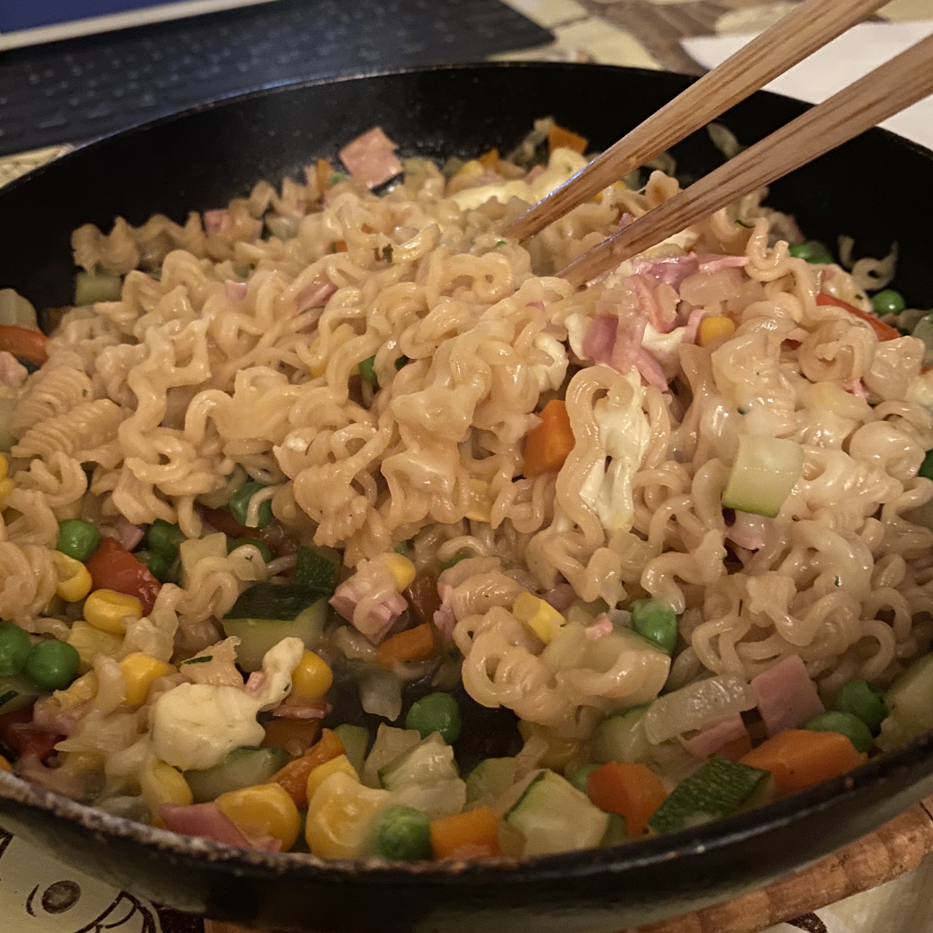 안에 옥수수와 완두콩도 넣었다. 음! 맛있는데, 좀 짜다. 새우맛이라서 그런가 확실히 맛이 강하다. 이 소스..... 나중에 인터셉트해서 멸치국수 같은 거 해 먹으면 너무 좋을 것 같다 ㅋㅋㅋㅋㅋ