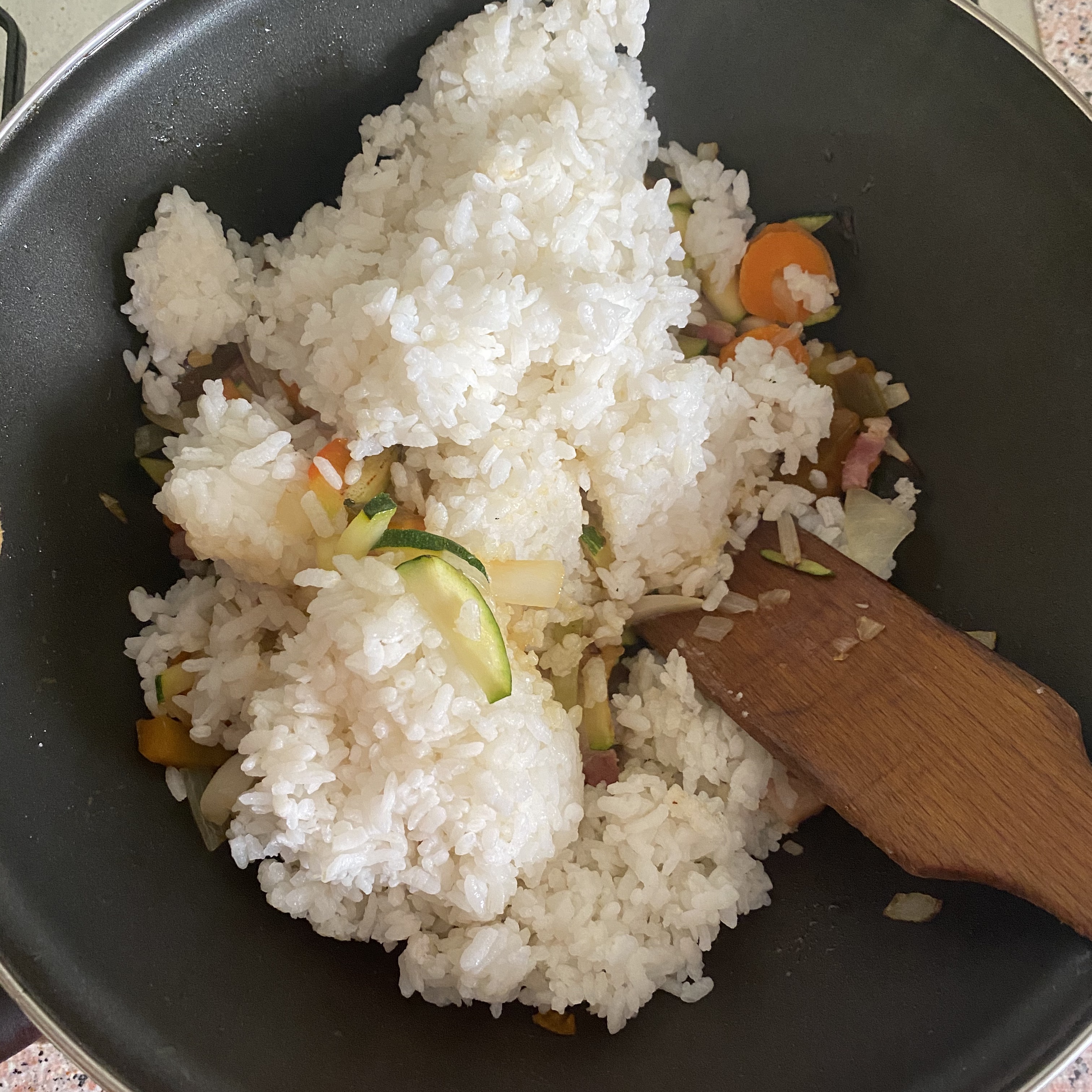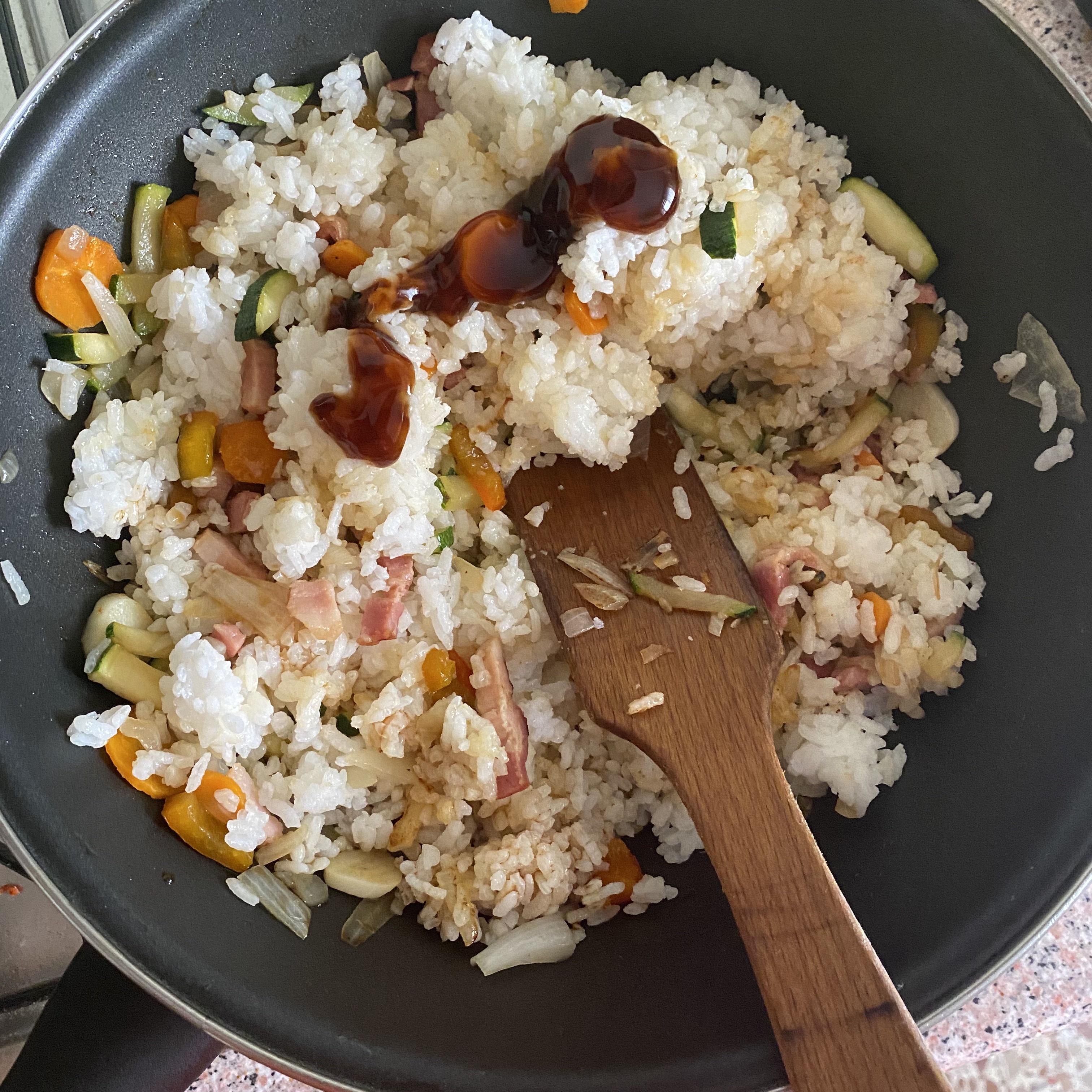 그리고 밥 먹을 만큼 넣고, 굴소스를 더 넣어줬다. 간장도 한 두 스푼 넣어줬다.
