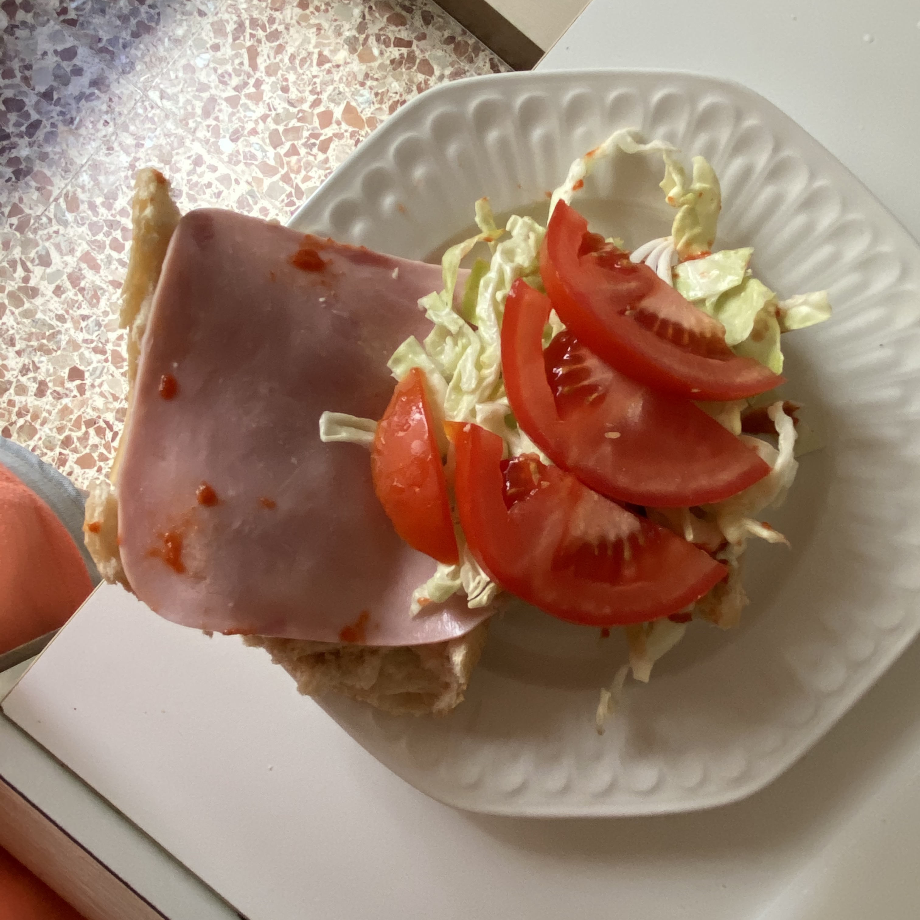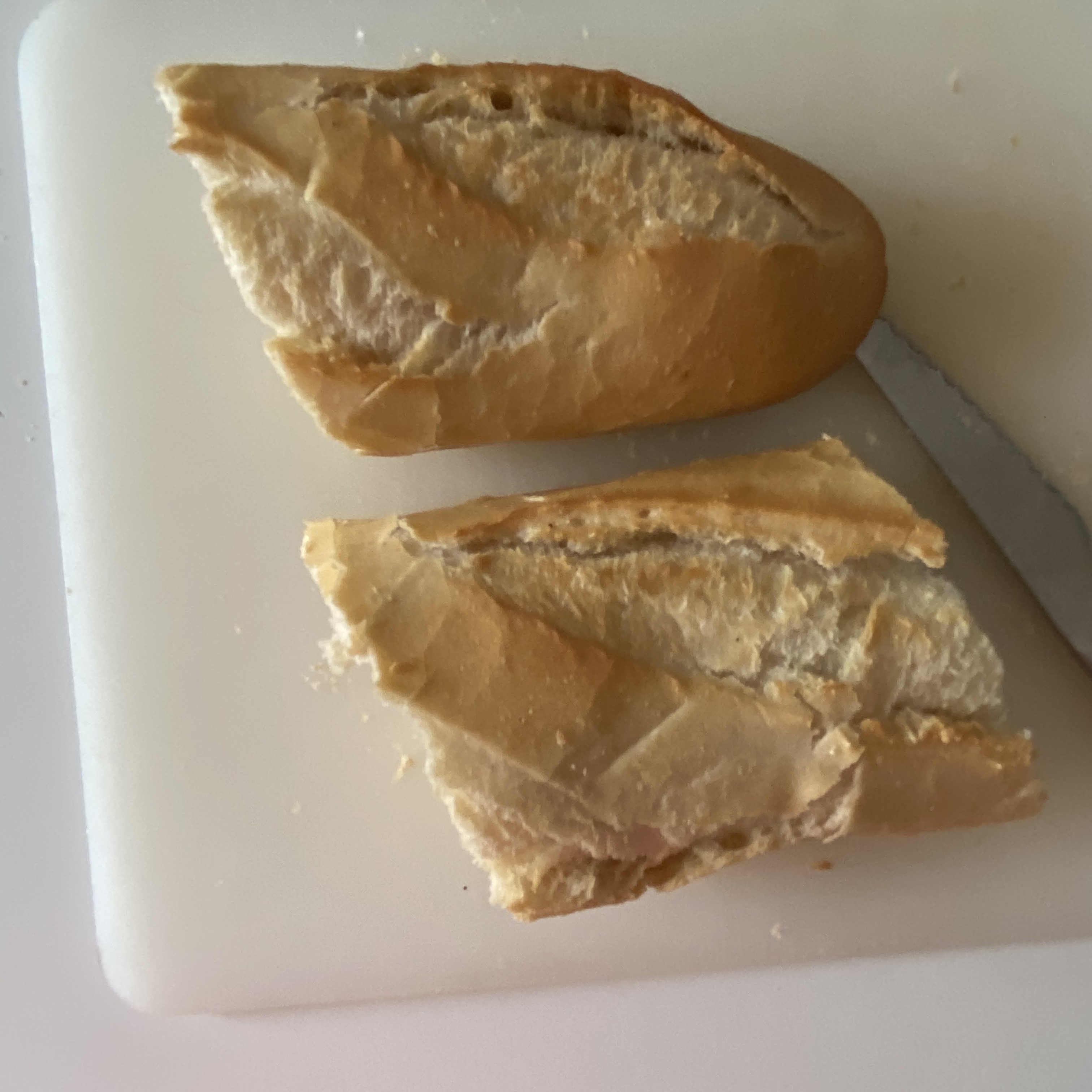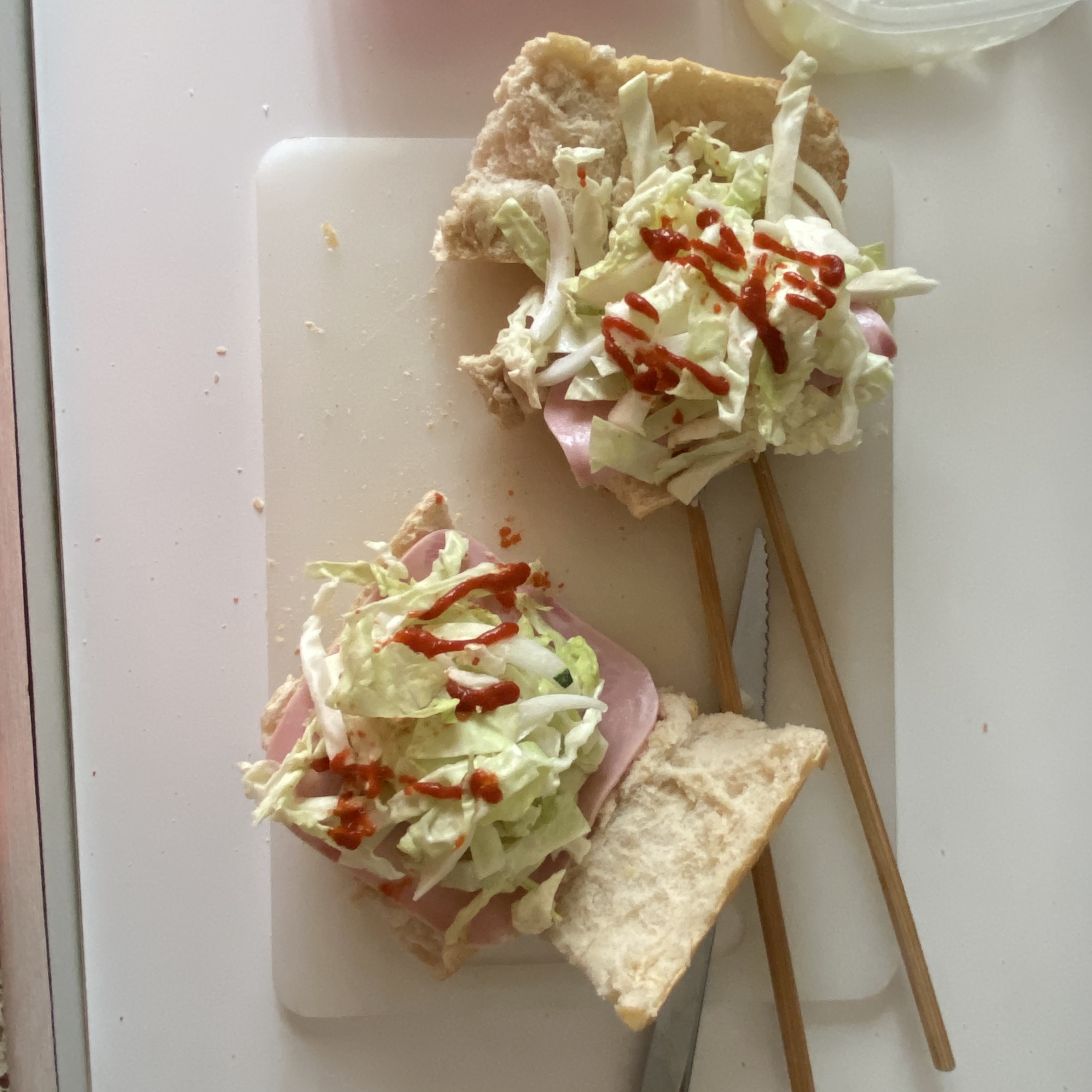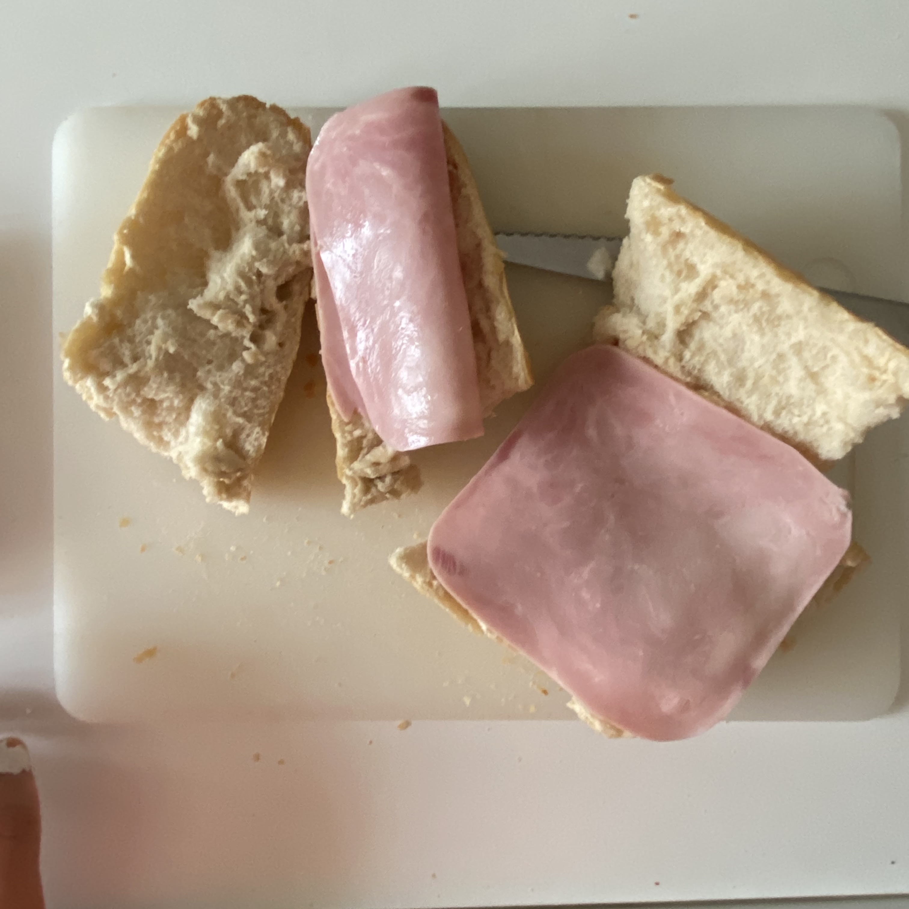 빵을 원하는 만큼 자르고, 안에 햄은 얹어 주었다.