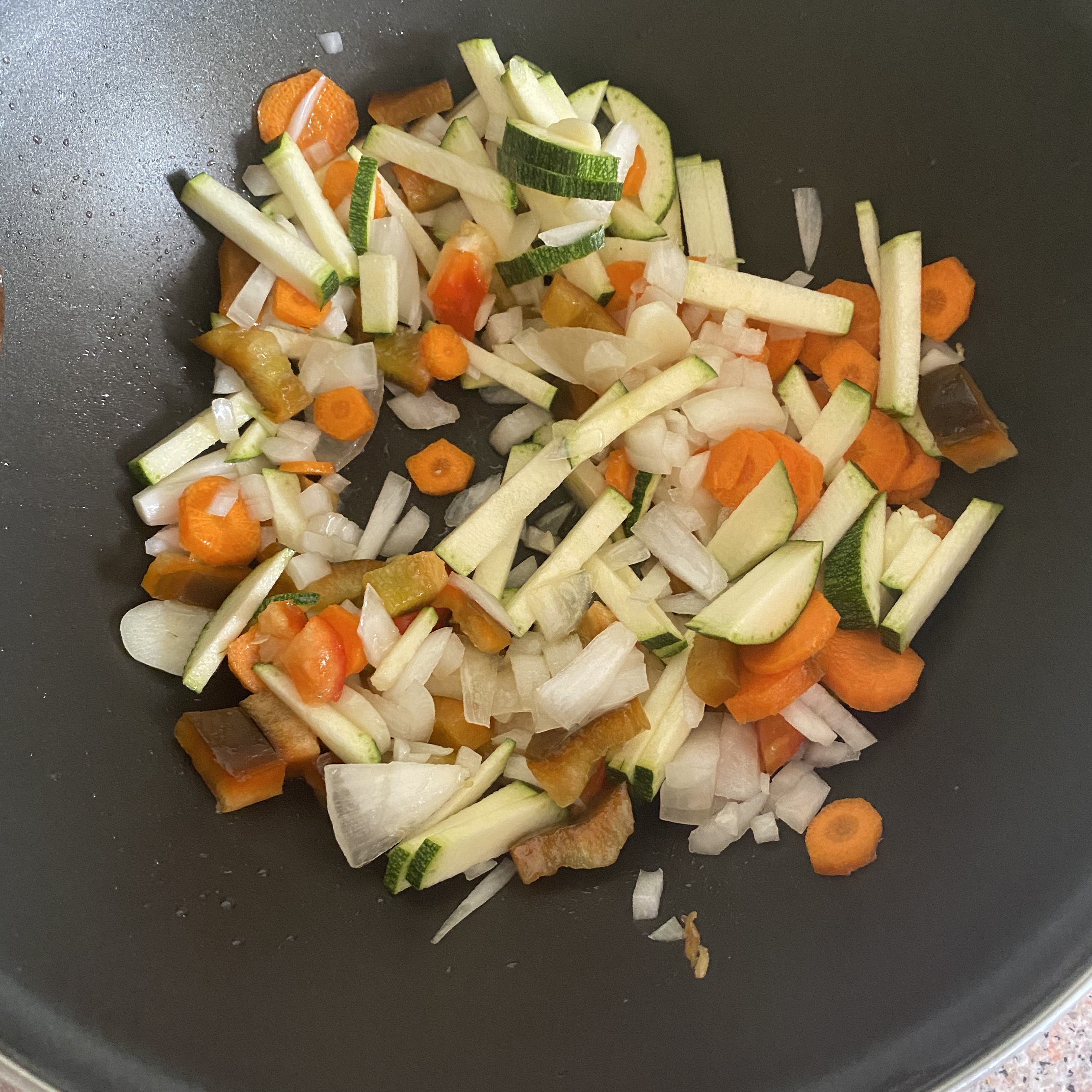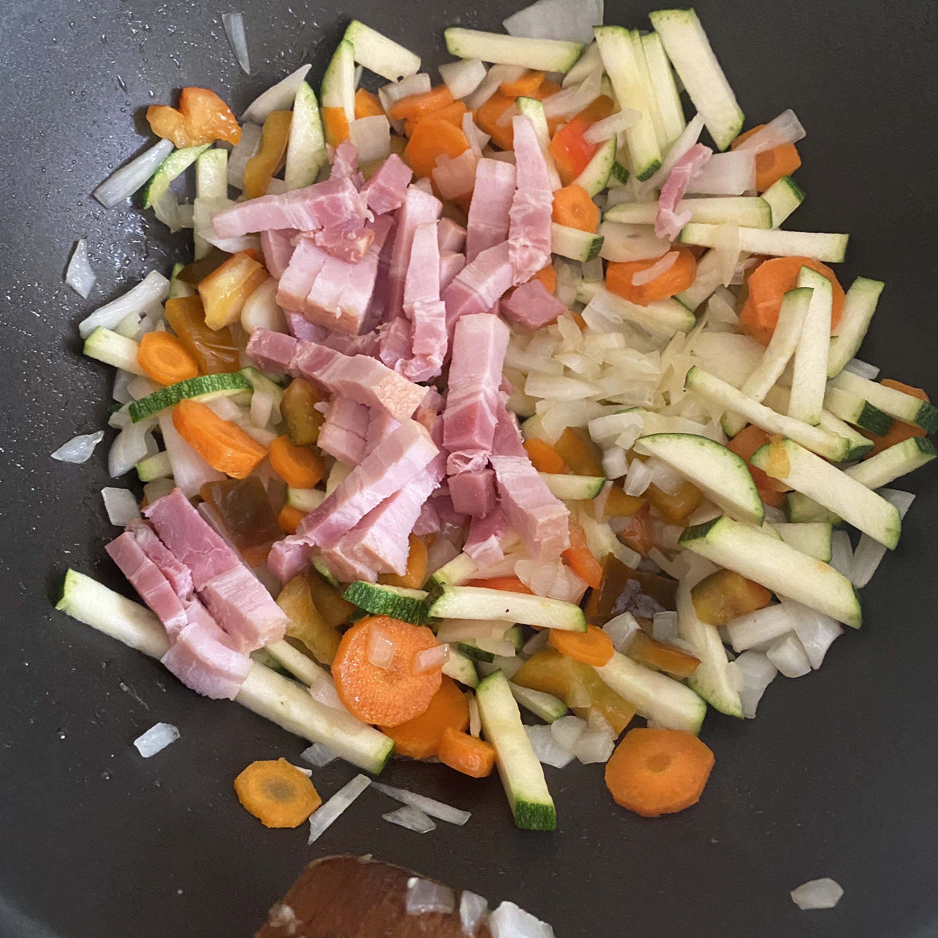베이컨 포함해서 자른 야채 다 투하를 하고, 사진으로는 찍지 않았지만, 야채가 어느정도 익은 후에 굴소스를 한 숟가락 넣어줬다.