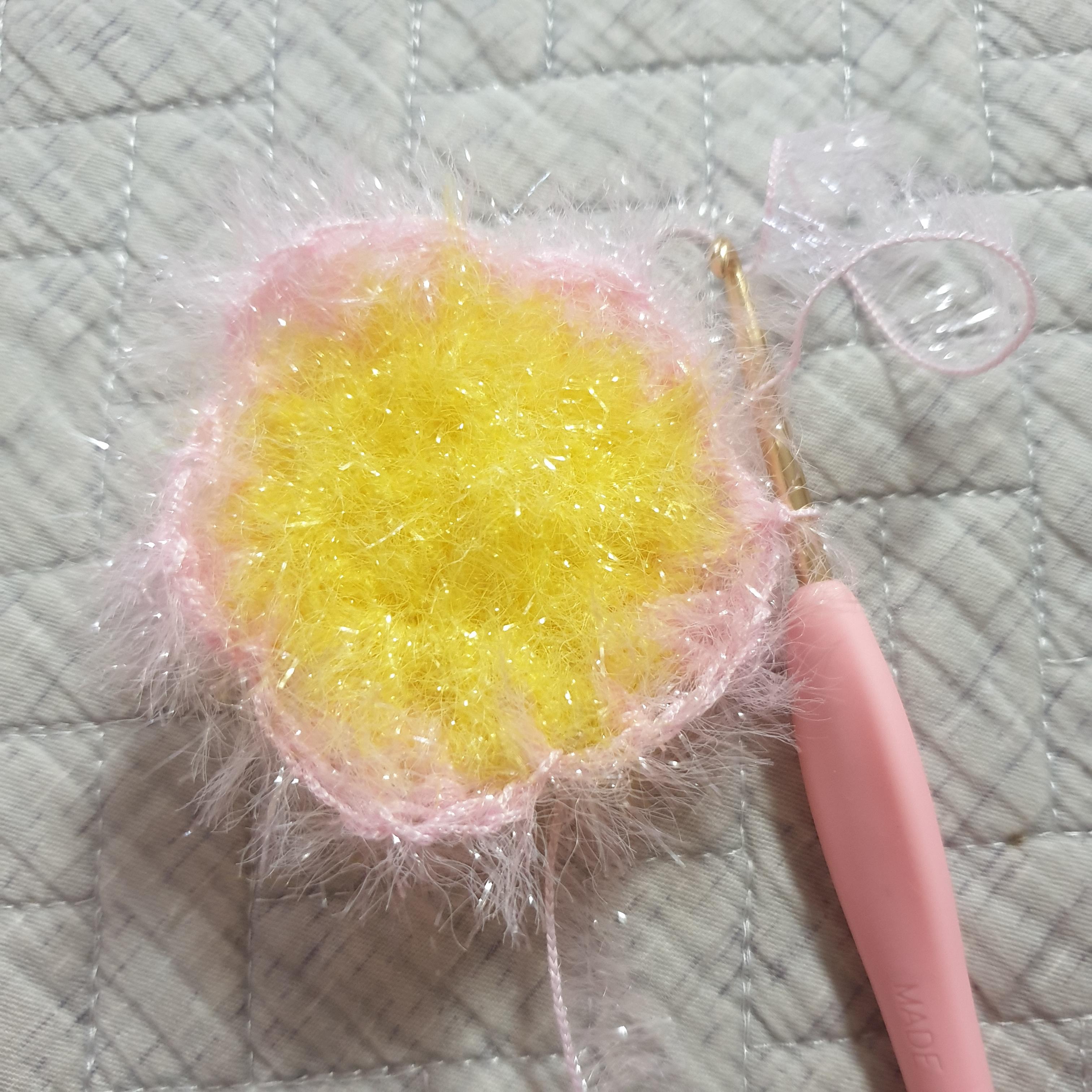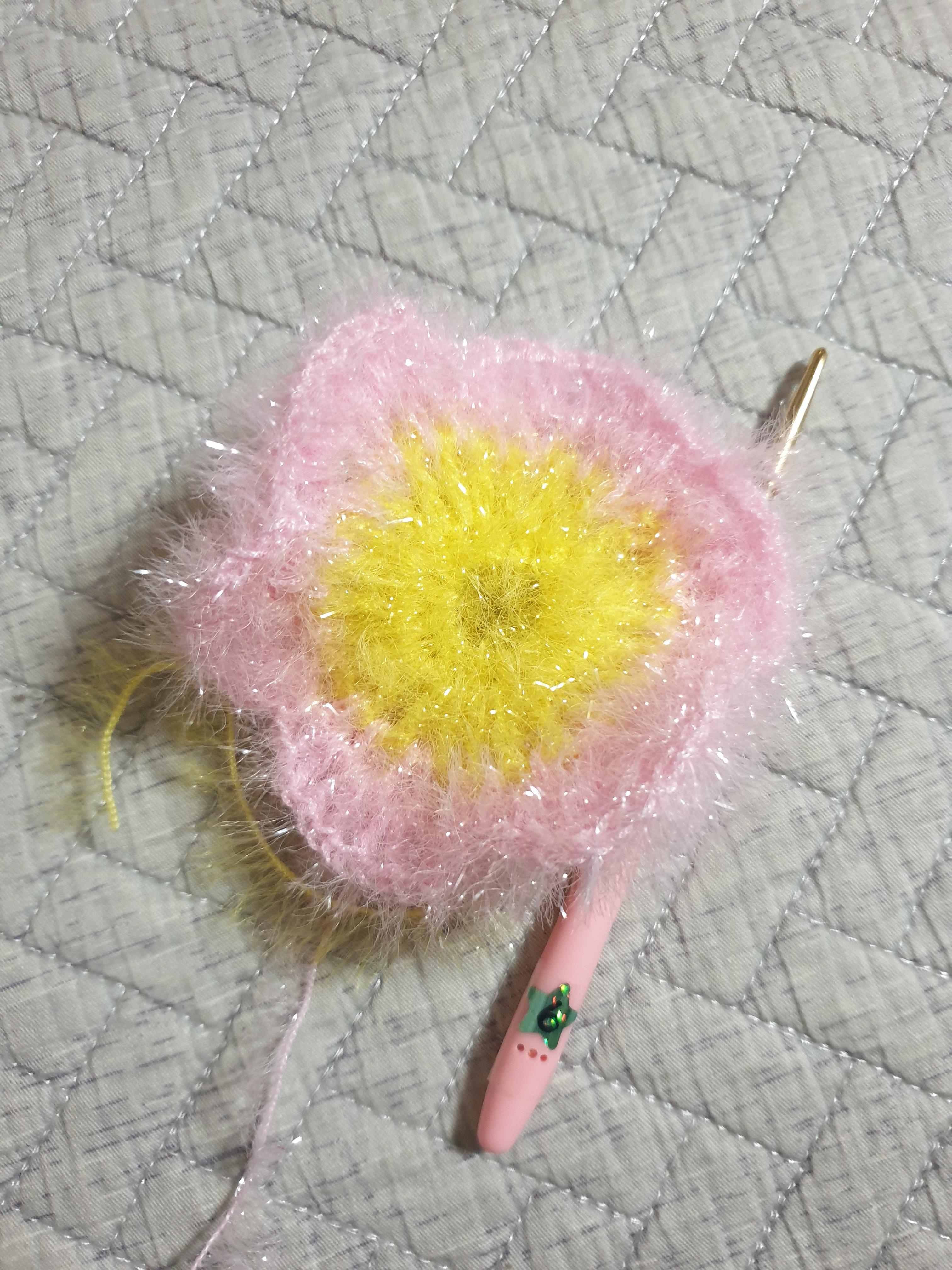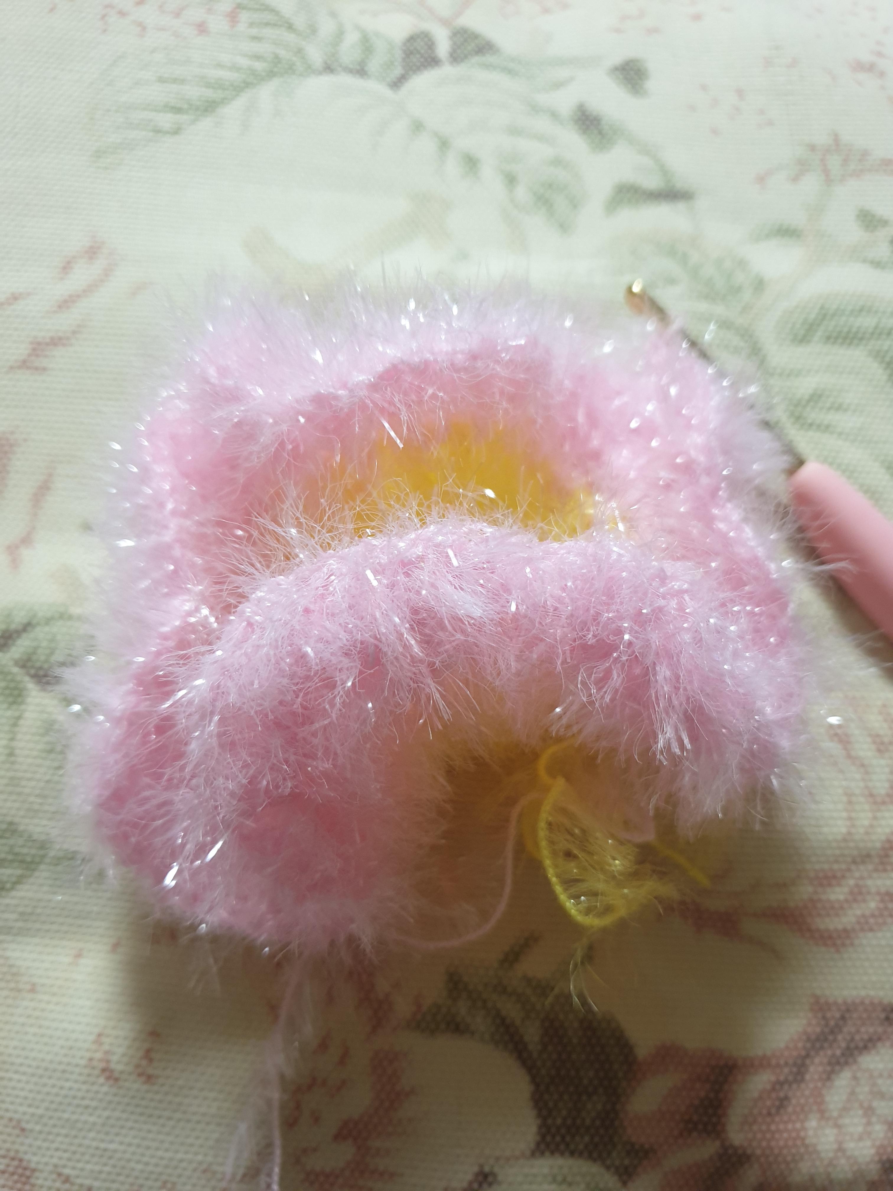 제일 먼저 꽃의 가운데 부분이 될 노란 미니 호빵을 만들었다. 노란색 실은 저번에 만들고 남은 실을 활용했다. 만들고 너무 귀여워서 만족스러웠다.