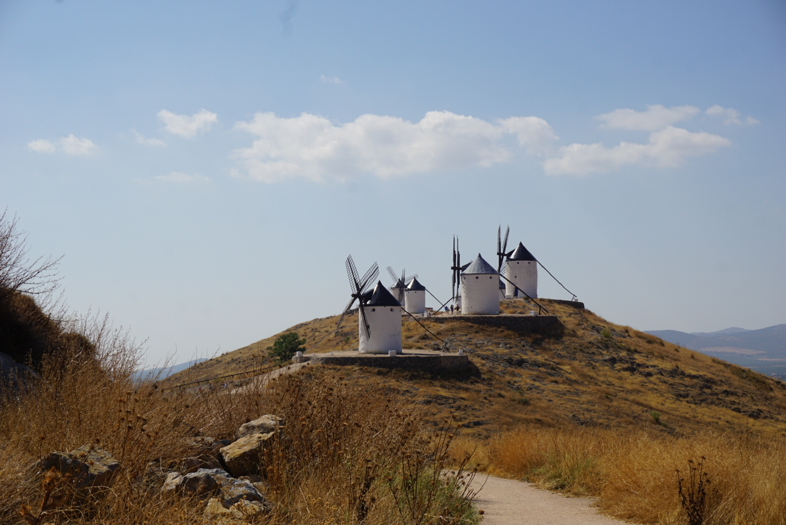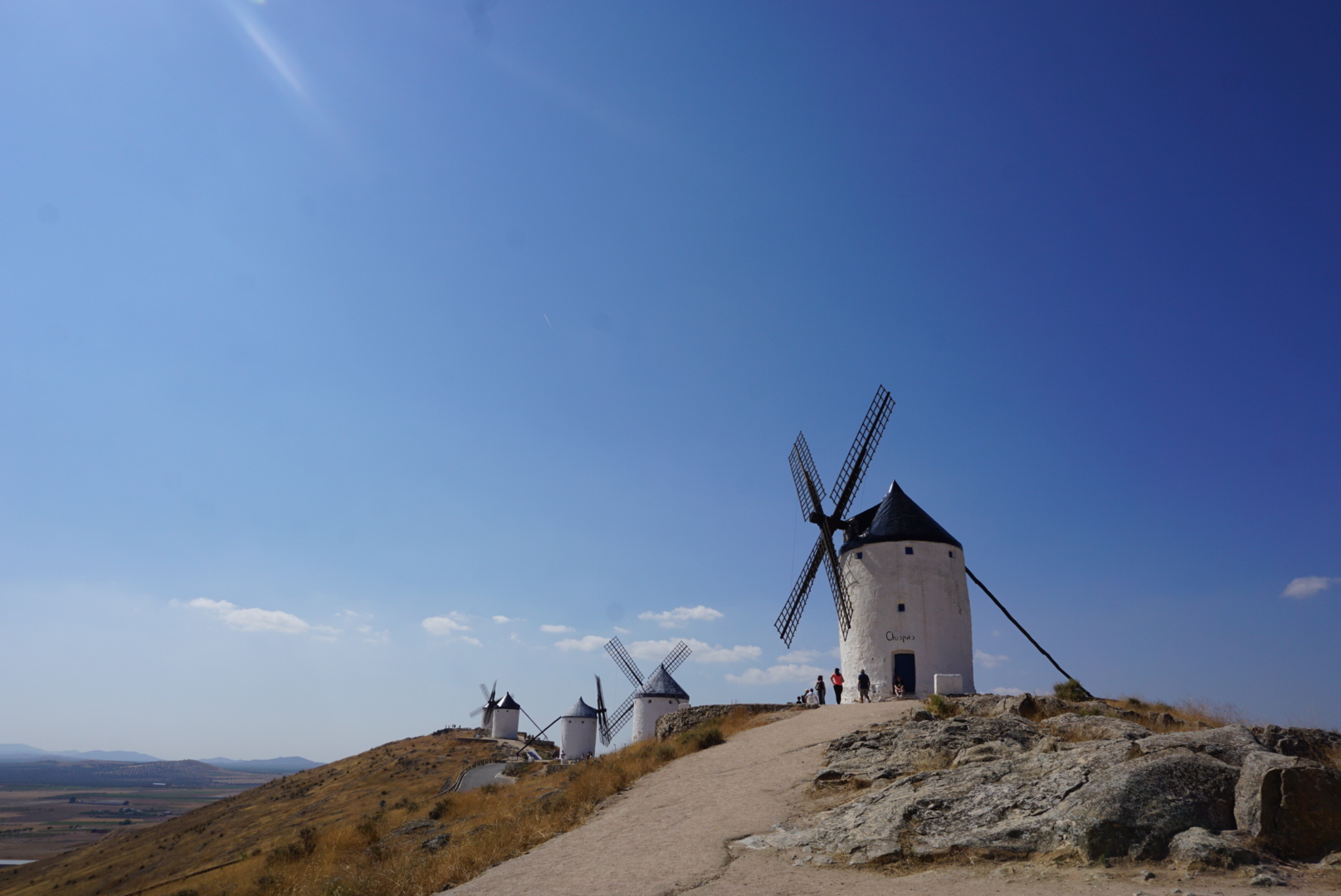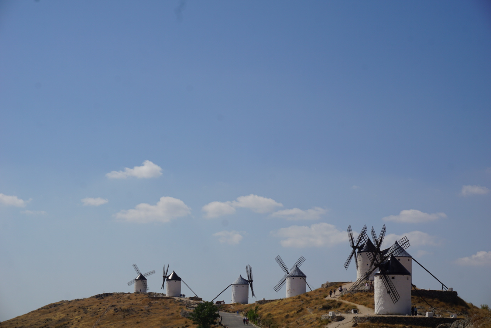 이 지역 전체는 아까 봤던 고성과 함께 공식적으로 2008년에 역사적인 곳으로 지정되었다. 원래는 13개의 풍차가 있었지만, 12개만 보전할 수 있었고, 이 풍차들은 20세기 초에 역사적인 것을 기념하여 세워졌다고 한다 (생각보다 얼마되지 않았다. 아마 돈키호테의 이야기 때문에 많이 세워진 것으로 추정된다.) 이 중에 5개의 풍차는 실제로 풍차의 기능을 할 수 있다고 한다. 이 곳은 Castilla de la Mancha 주에 있는데, la Mancha 라는 말은 아랍어 Al Mansha (뜻 건조한 땅 혹은 물이 없는 땅)에서 왔다고 한다. (실제로 이 주는 비도 안내리고 심을 수 있는 작물이라고는 올리브와 포도 밖에 없다). 이렇게 건조한 땅에서 예전에는 밀만 심었는데, 밀을 밀가루로 바꾸기 위해서 바람을 이용하는 풍차를 사용한 것으로 보인다.... 이하 생략.