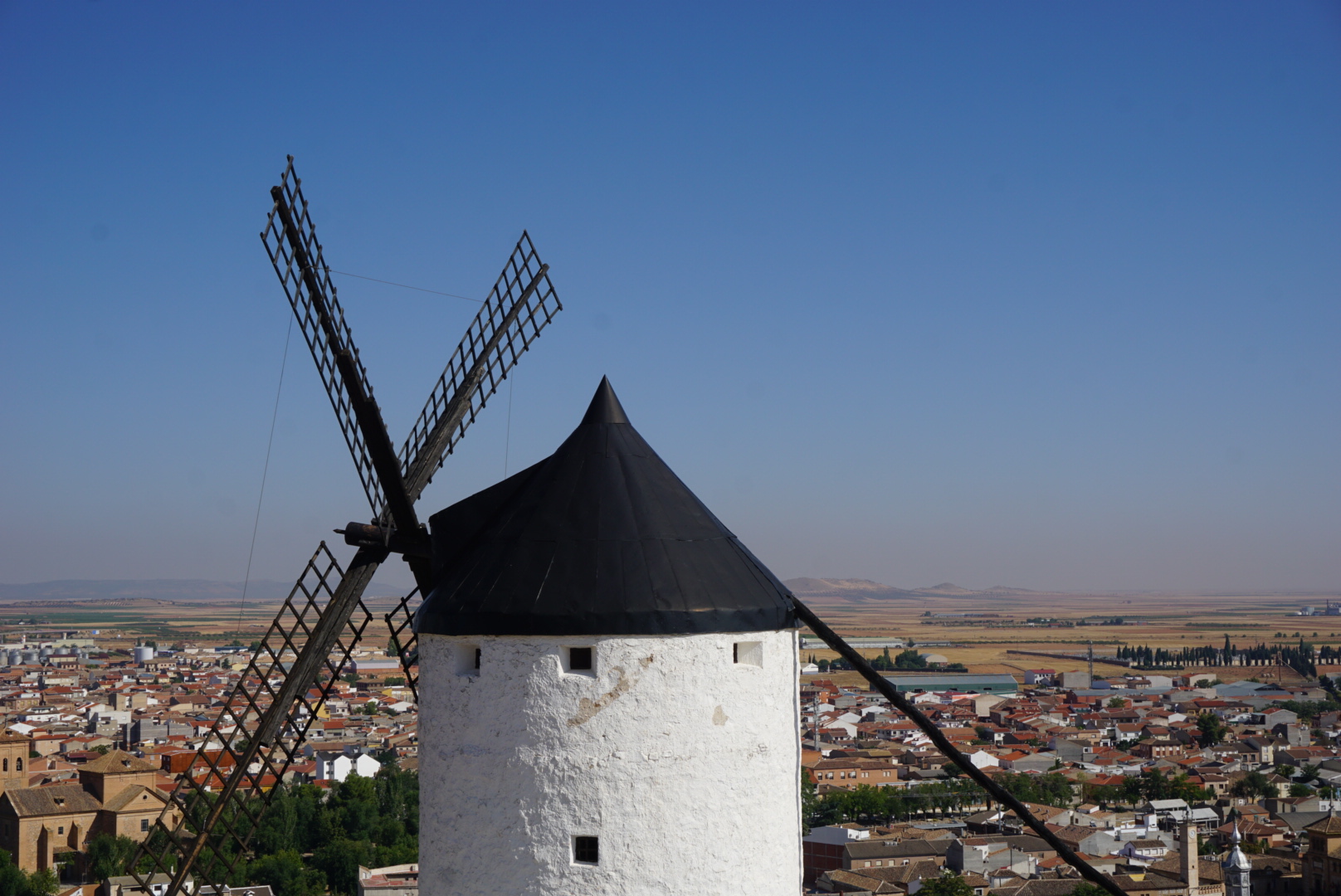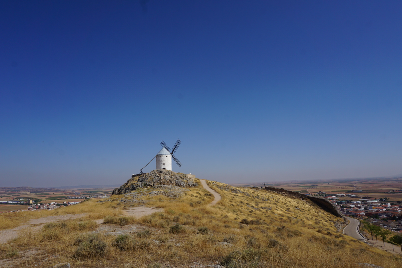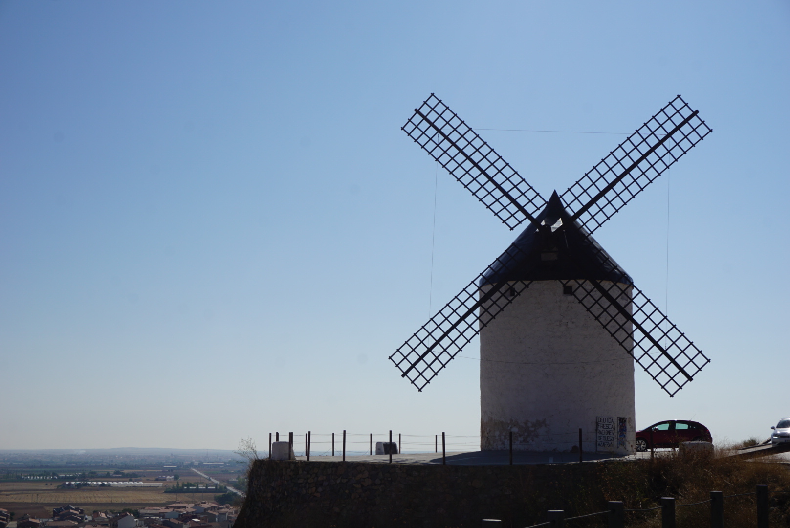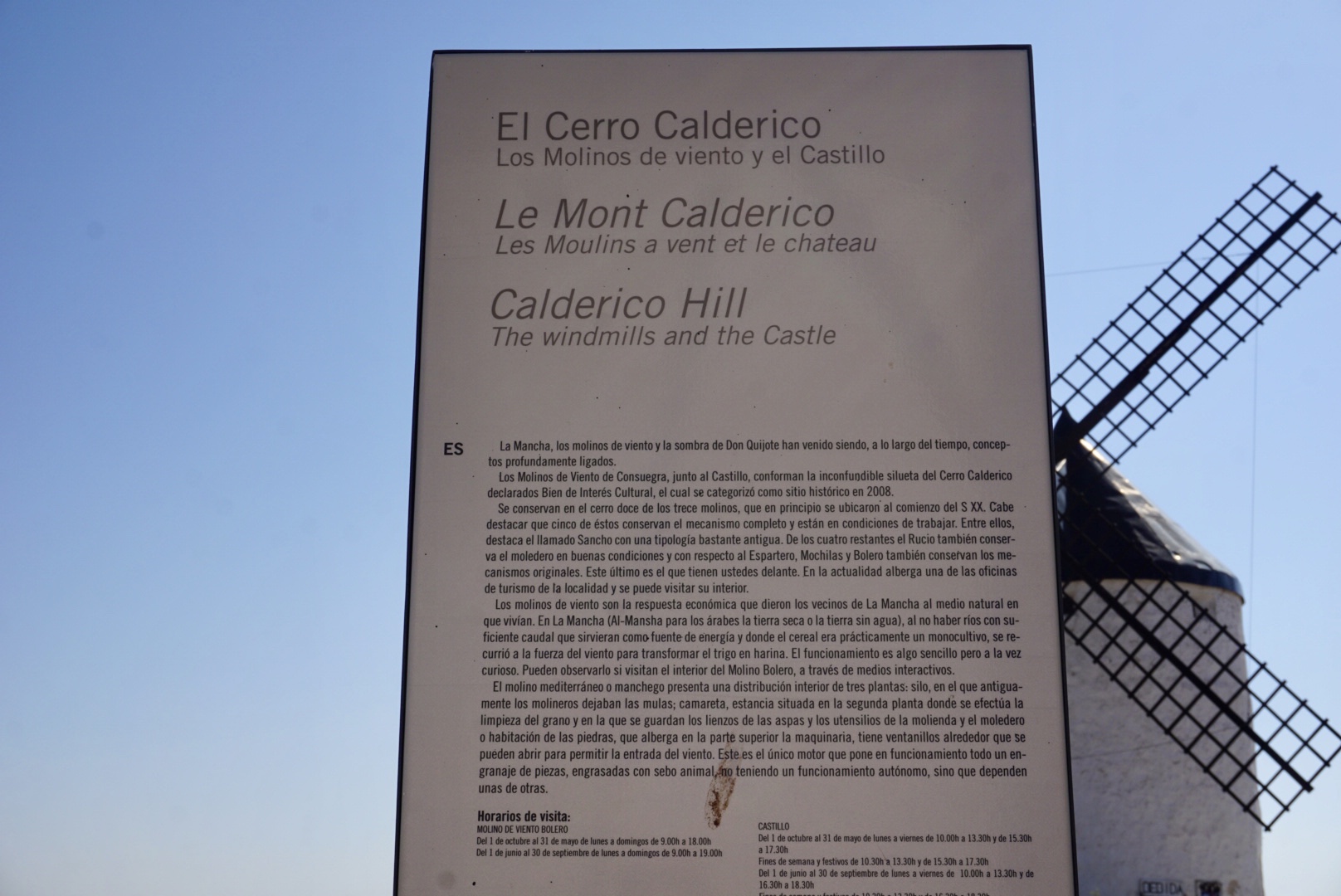 이 지역 전체는 아까 봤던 고성과 함께 공식적으로 2008년에 역사적인 곳으로 지정되었다. 원래는 13개의 풍차가 있었지만, 12개만 보전할 수 있었고, 이 풍차들은 20세기 초에 역사적인 것을 기념하여 세워졌다고 한다 (생각보다 얼마되지 않았다. 아마 돈키호테의 이야기 때문에 많이 세워진 것으로 추정된다.) 이 중에 5개의 풍차는 실제로 풍차의 기능을 할 수 있다고 한다. 이 곳은 Castilla de la Mancha 주에 있는데, la Mancha 라는 말은 아랍어 Al Mansha (뜻 건조한 땅 혹은 물이 없는 땅)에서 왔다고 한다. (실제로 이 주는 비도 안내리고 심을 수 있는 작물이라고는 올리브와 포도 밖에 없다). 이렇게 건조한 땅에서 예전에는 밀만 심었는데, 밀을 밀가루로 바꾸기 위해서 바람을 이용하는 풍차를 사용한 것으로 보인다.... 이하 생략.