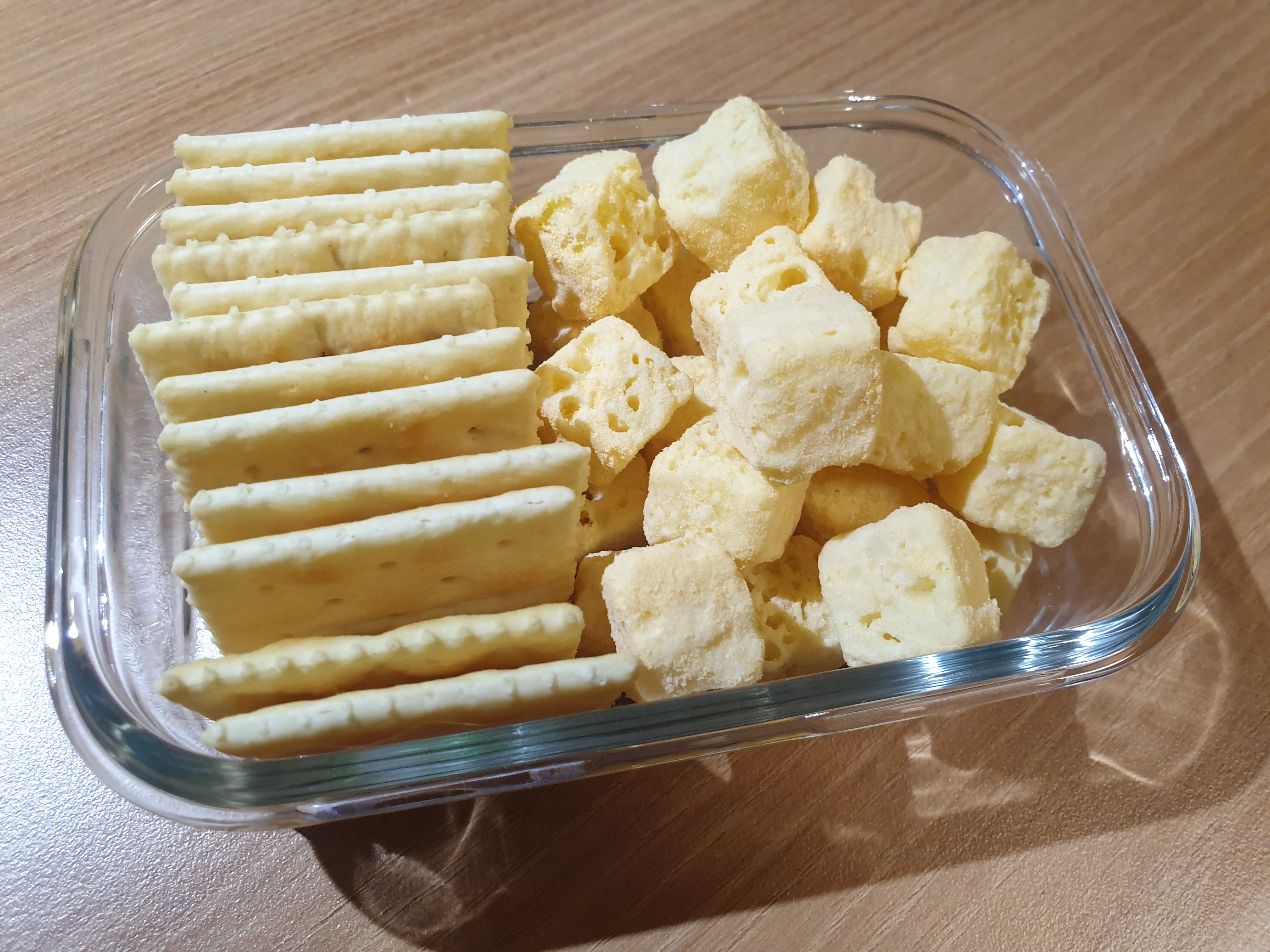 CU편의점의 PB상품인 '리틀치즈큐브' 치즈과자와 내가 좋아하는 참크레커를 샀다. 참크레커는 2+1이다.