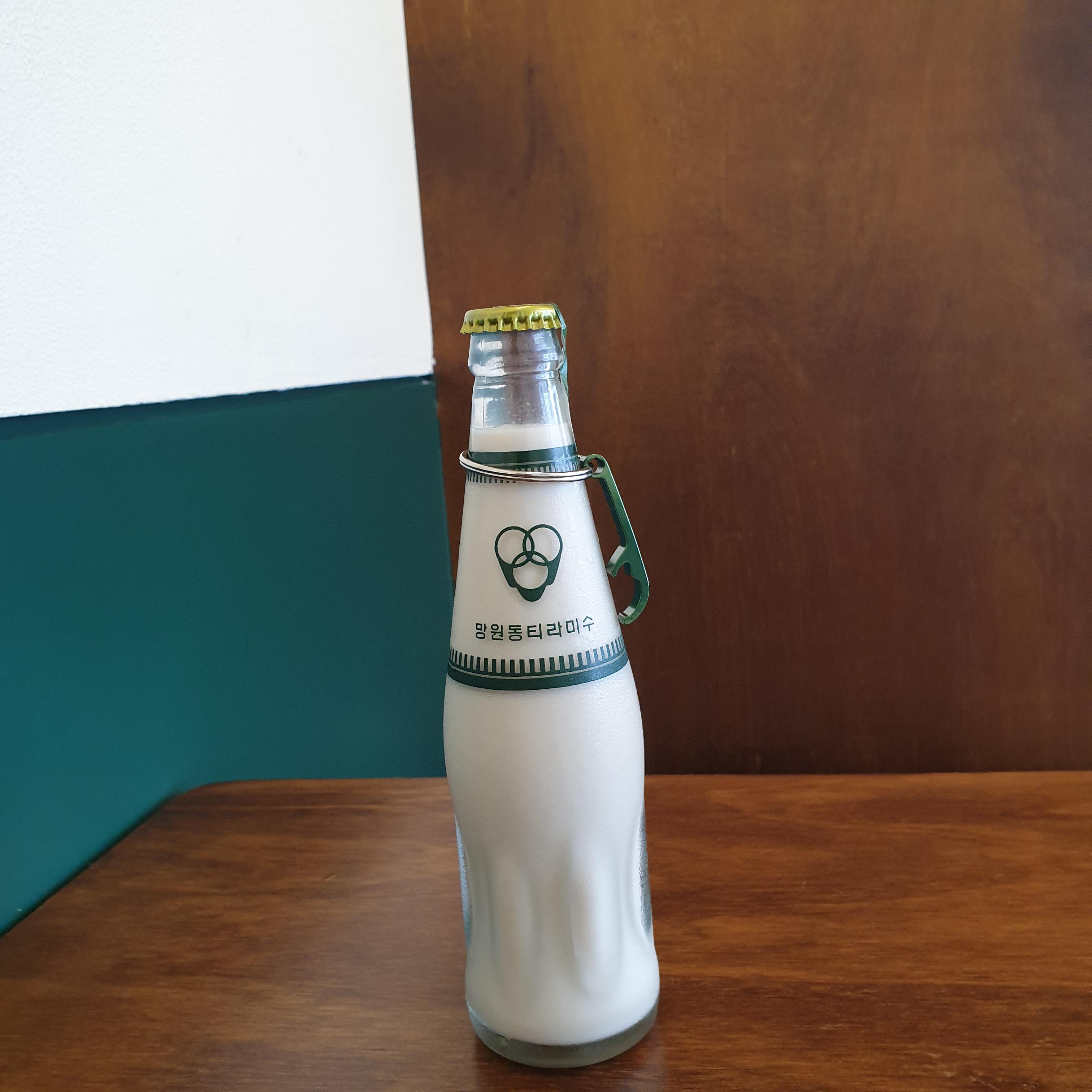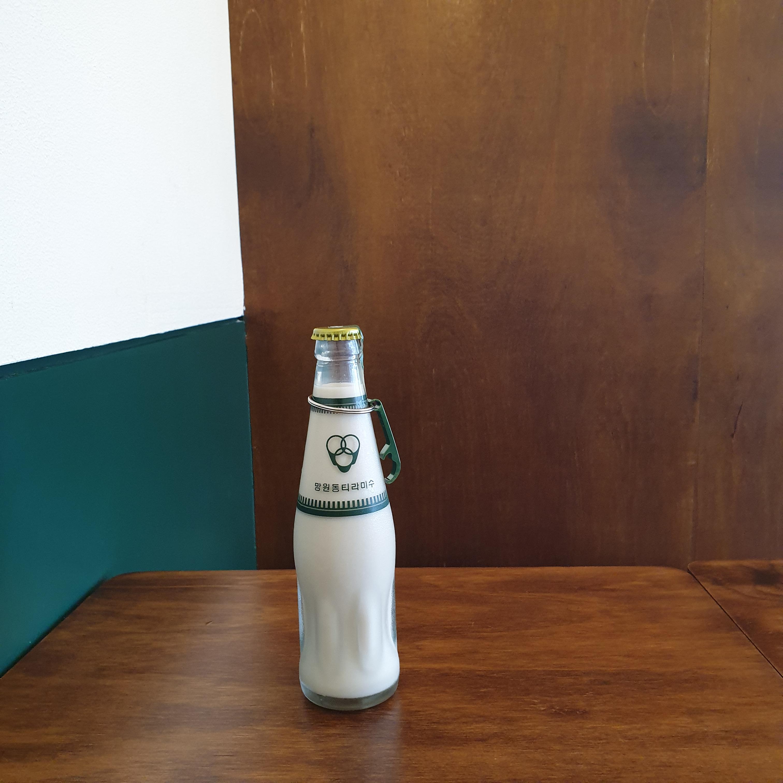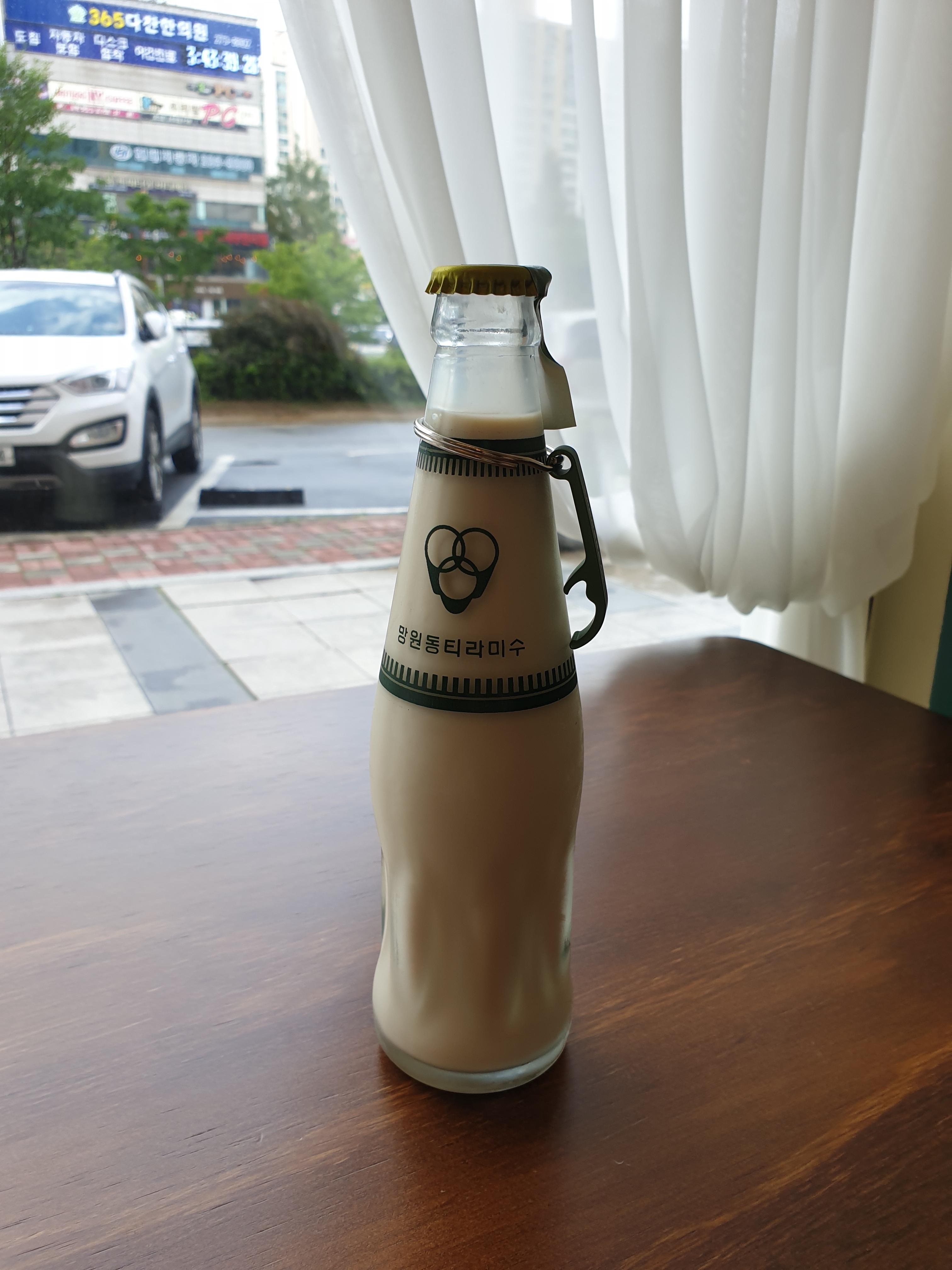 오늘 먹은 망원홍차이다. 병콜라처럼 생긴 병에 병따개가 걸려있다. 딱 적당히 달고 맛있는 밀크티이다.
