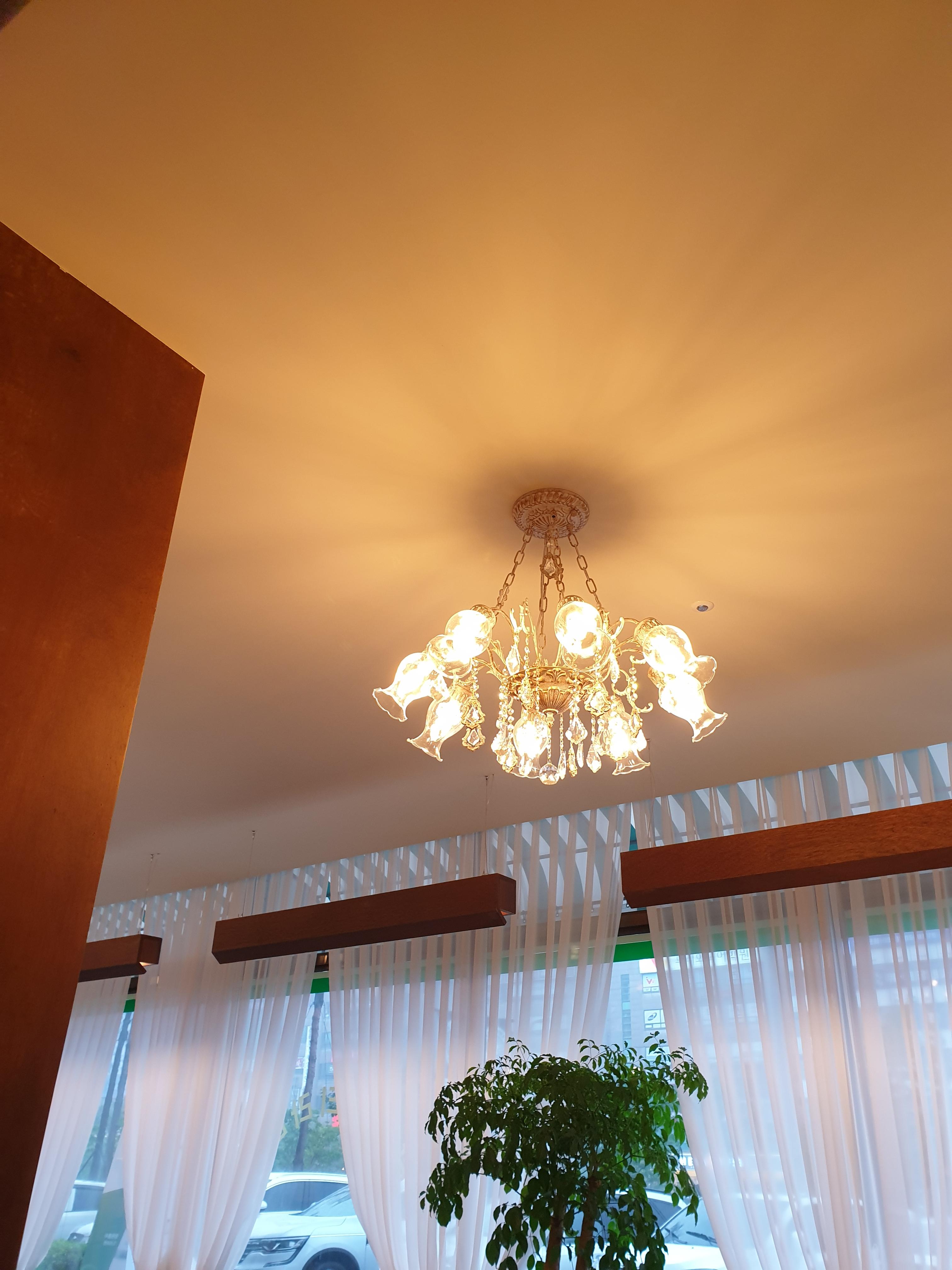 그리고 밖이 어둑어둑해지니까 조명이 더 예뻐졌다. 왠지 밤에 오면 더 예쁠거 같은 카페이다.