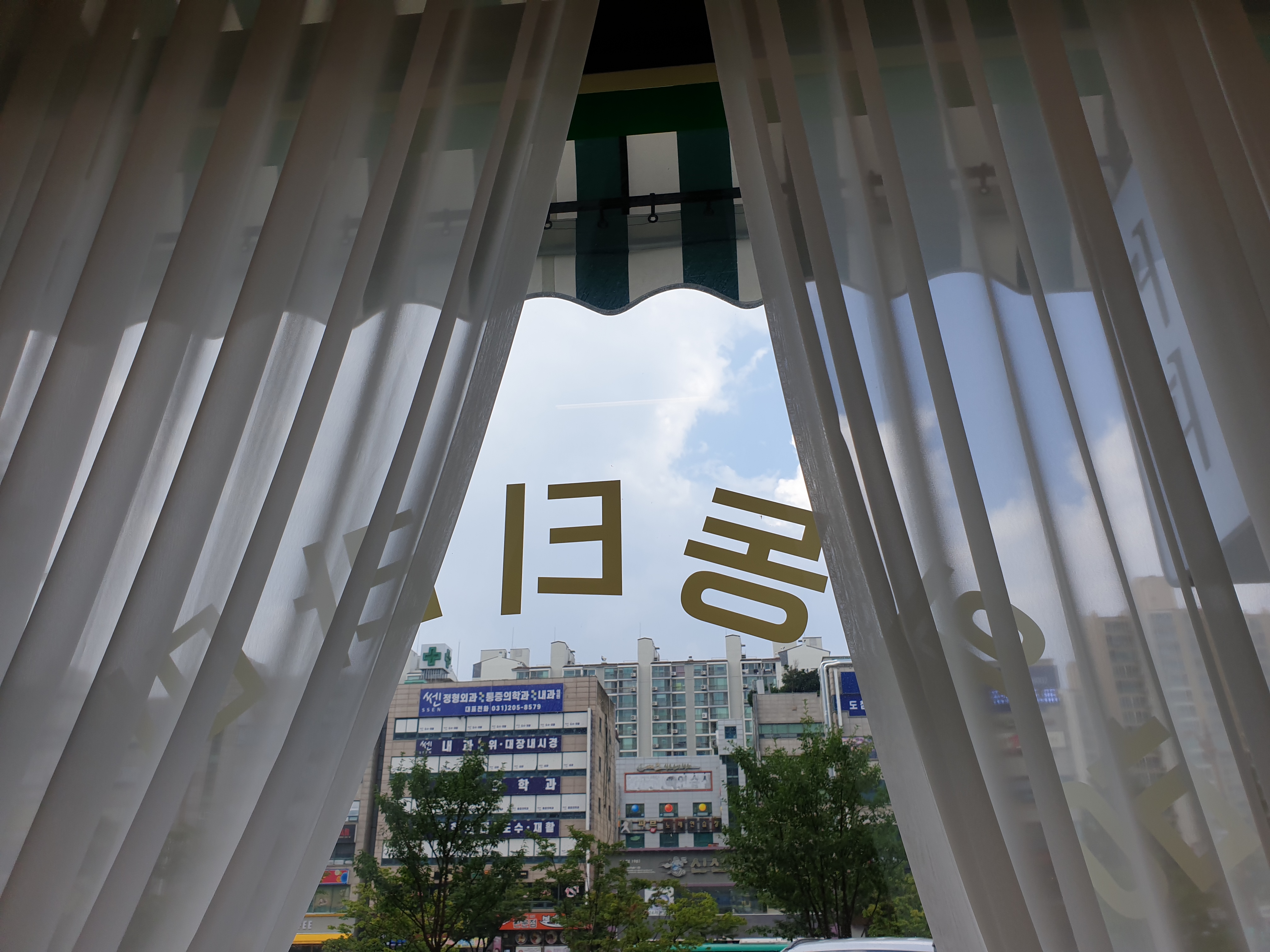 자리로 돌아가면서도 두번 찍었다. 입구 옆에 있는 초록 의자들이 너무 귀엽다 ㅎㅎ 여기는 인테리어가 참 아기자기하고 좋다. 저 커튼도 맘에 든다.