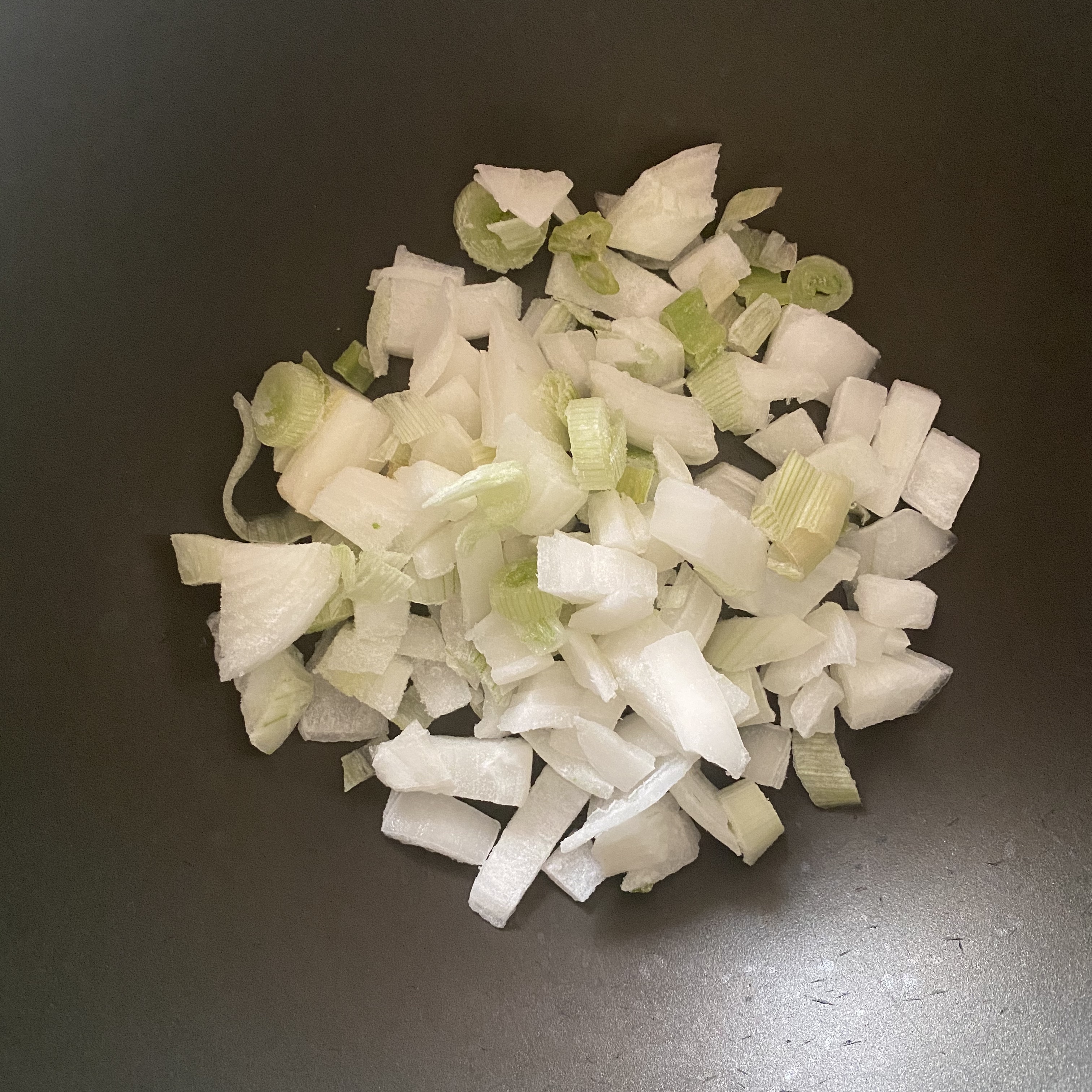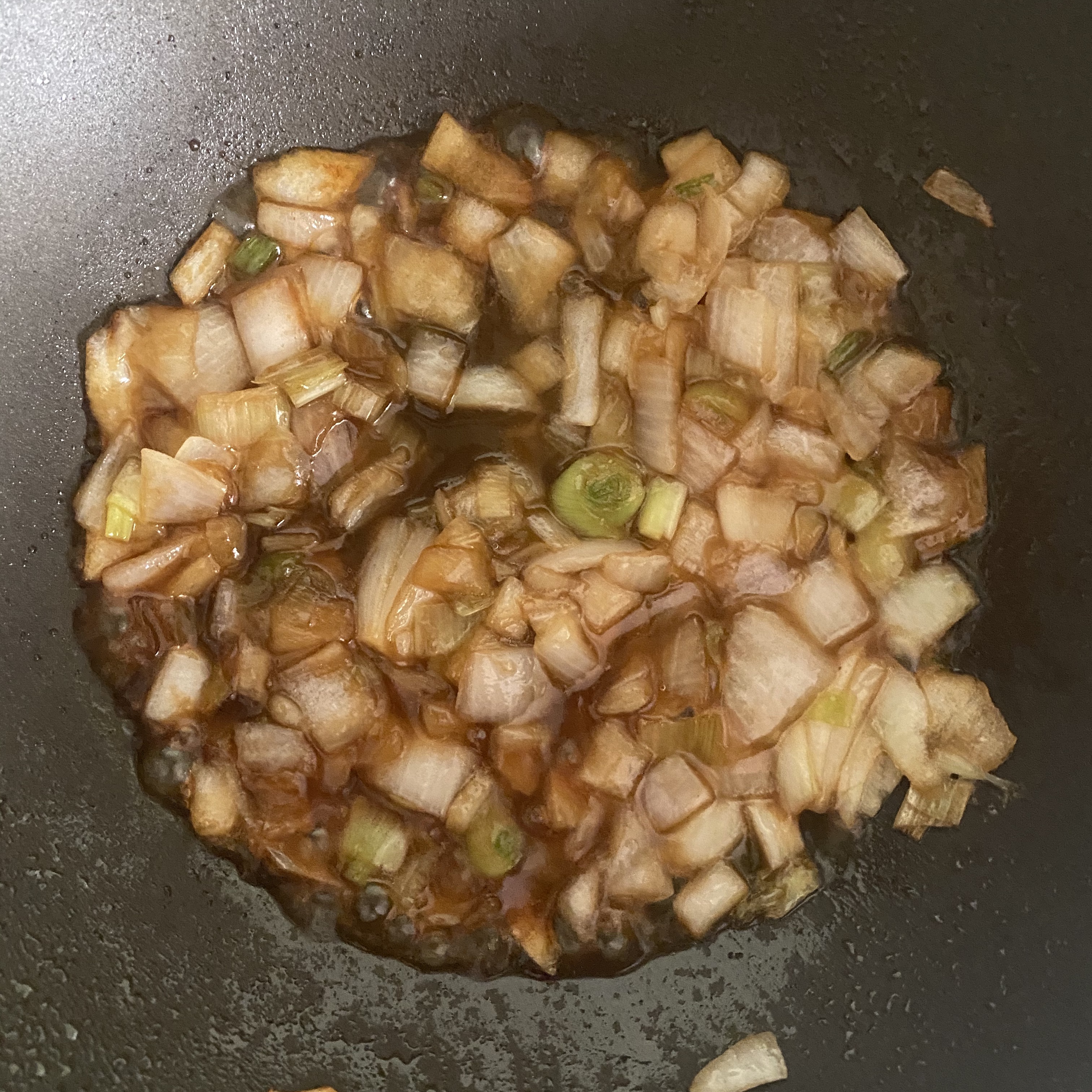 냄비에는 예전에 얼려둔 파를 넣고 볶다가, 어느 정도 익었다 싶었을 때, 간장과 굴소스를 넣어줬다. 그리고 조금 더 볶아줬다.