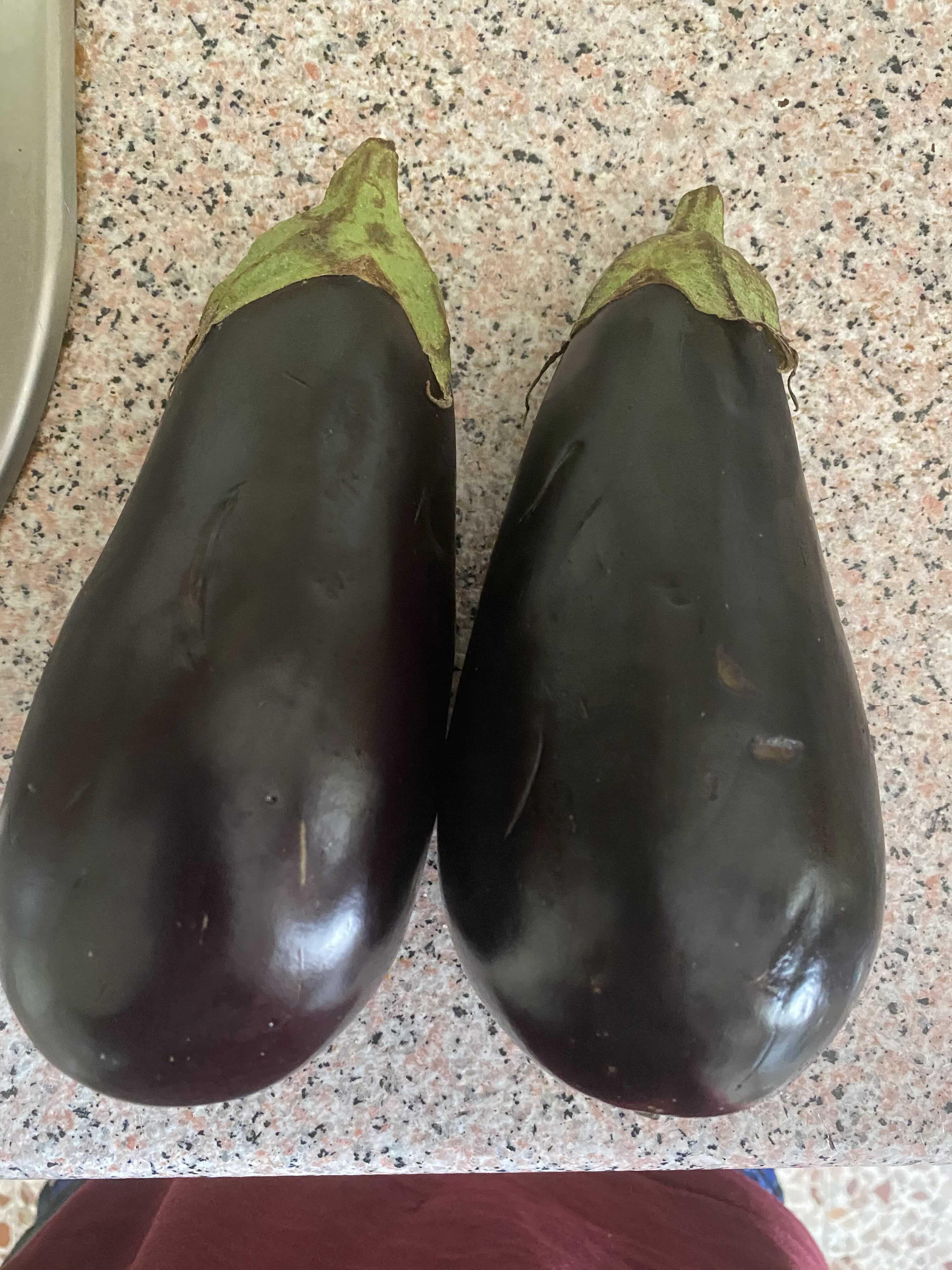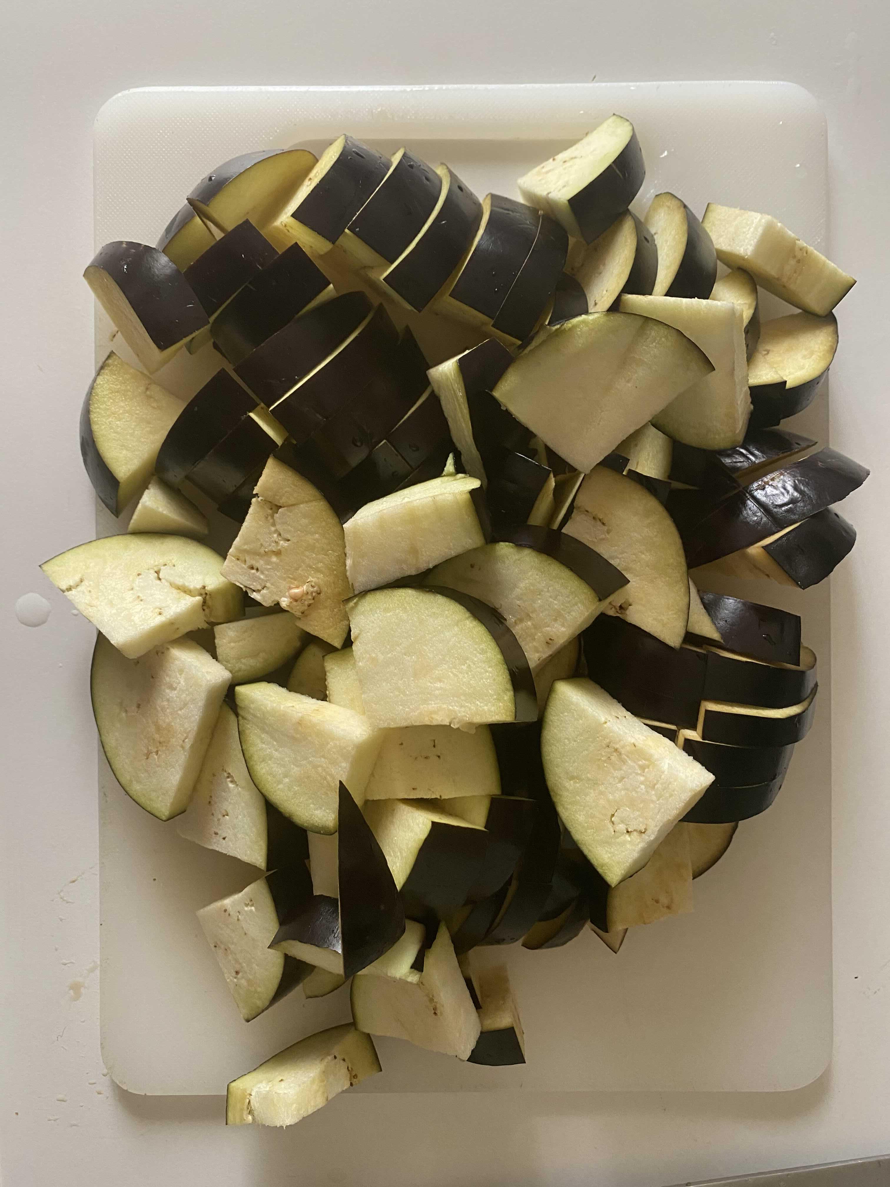 가지를 먼저 두개를 준비했다. 스페인 가지는 짧고 뚱뚱한게 특징인 것 같다. 얘네를 크지 않게 잘라준다.