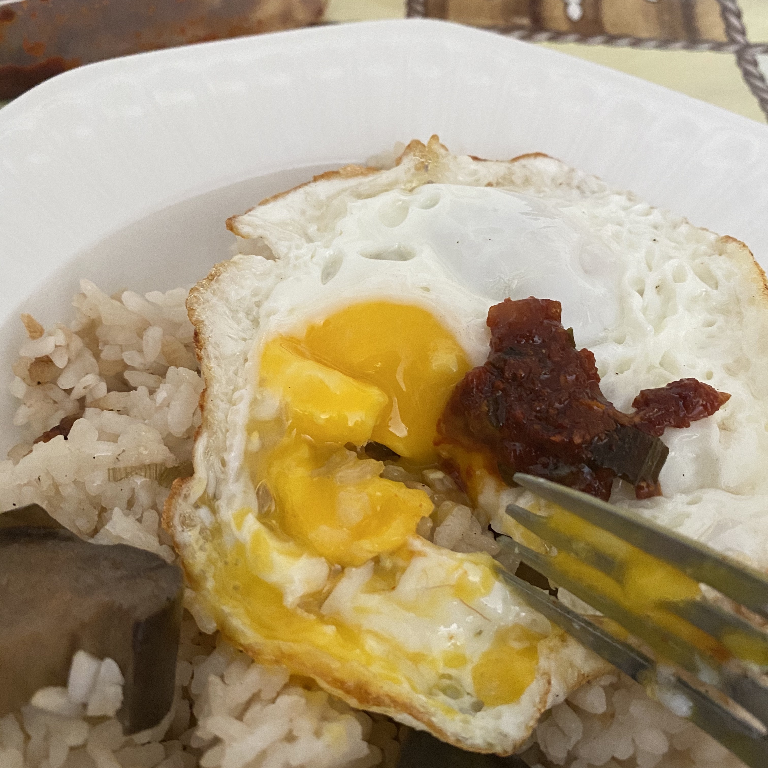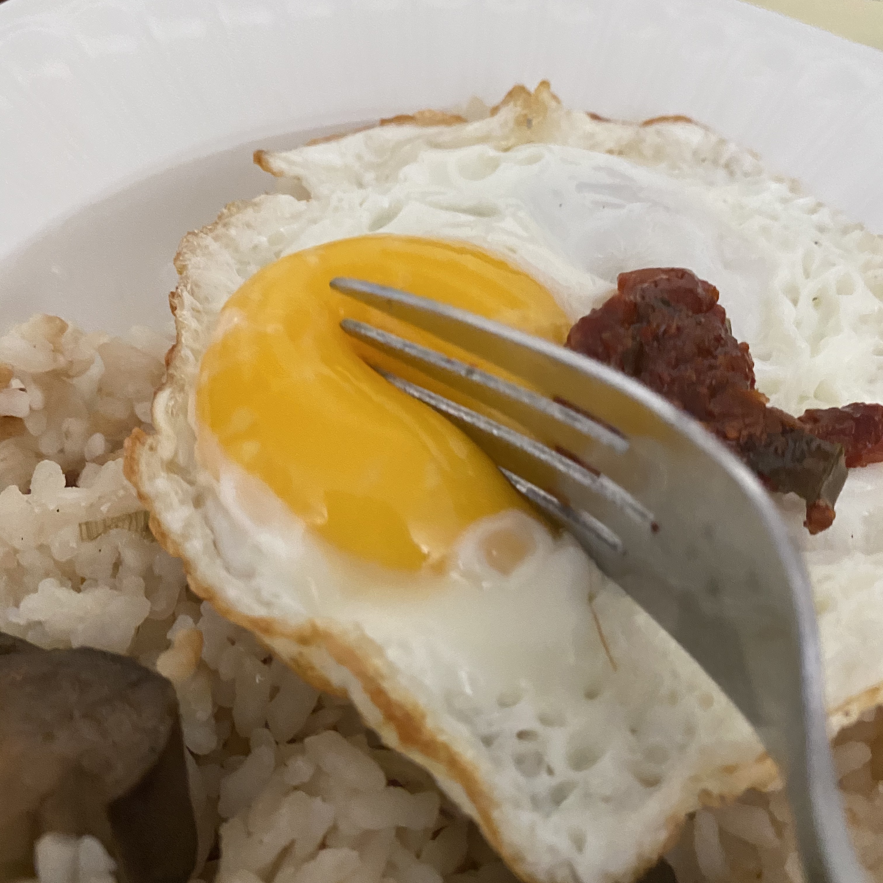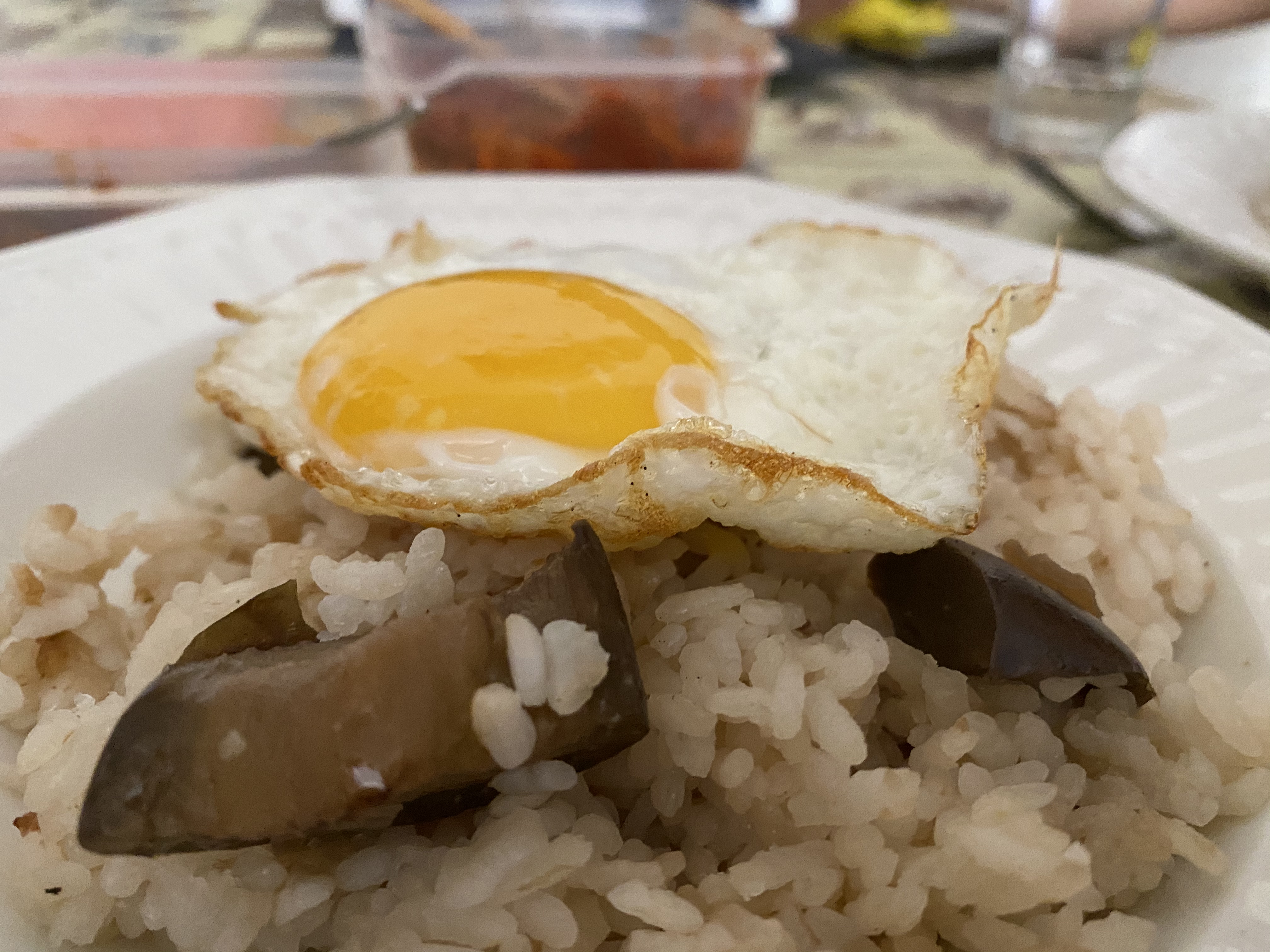 점심은 어제 한 가지밥이다. 가지밥을 많이 했다. 오늘은 어제와는 다르게 계란프라이를 얹어서 먹었다. 맨날 똑같이 먹으면 지루하니깐 :)