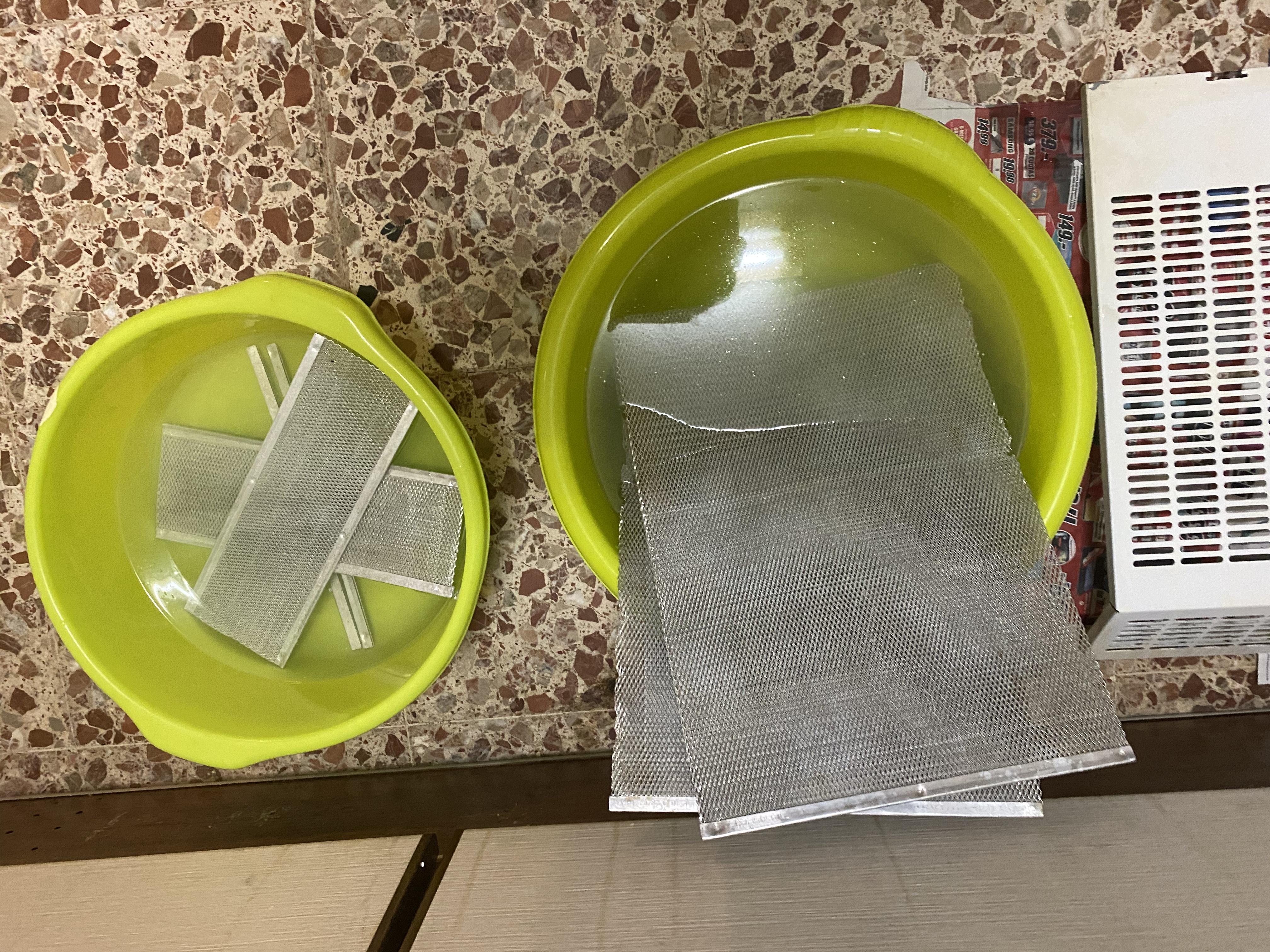 안에 들어있던 필터는 닦다가 닦다가 다 닦였겠지? 하고 뒤집어 놨더니, 기름 때가 계속 나오길래, 기름 때 제거하는 스프레이 뿌려놓고, 이렇게 대야에 하룻밤 담가놨다.