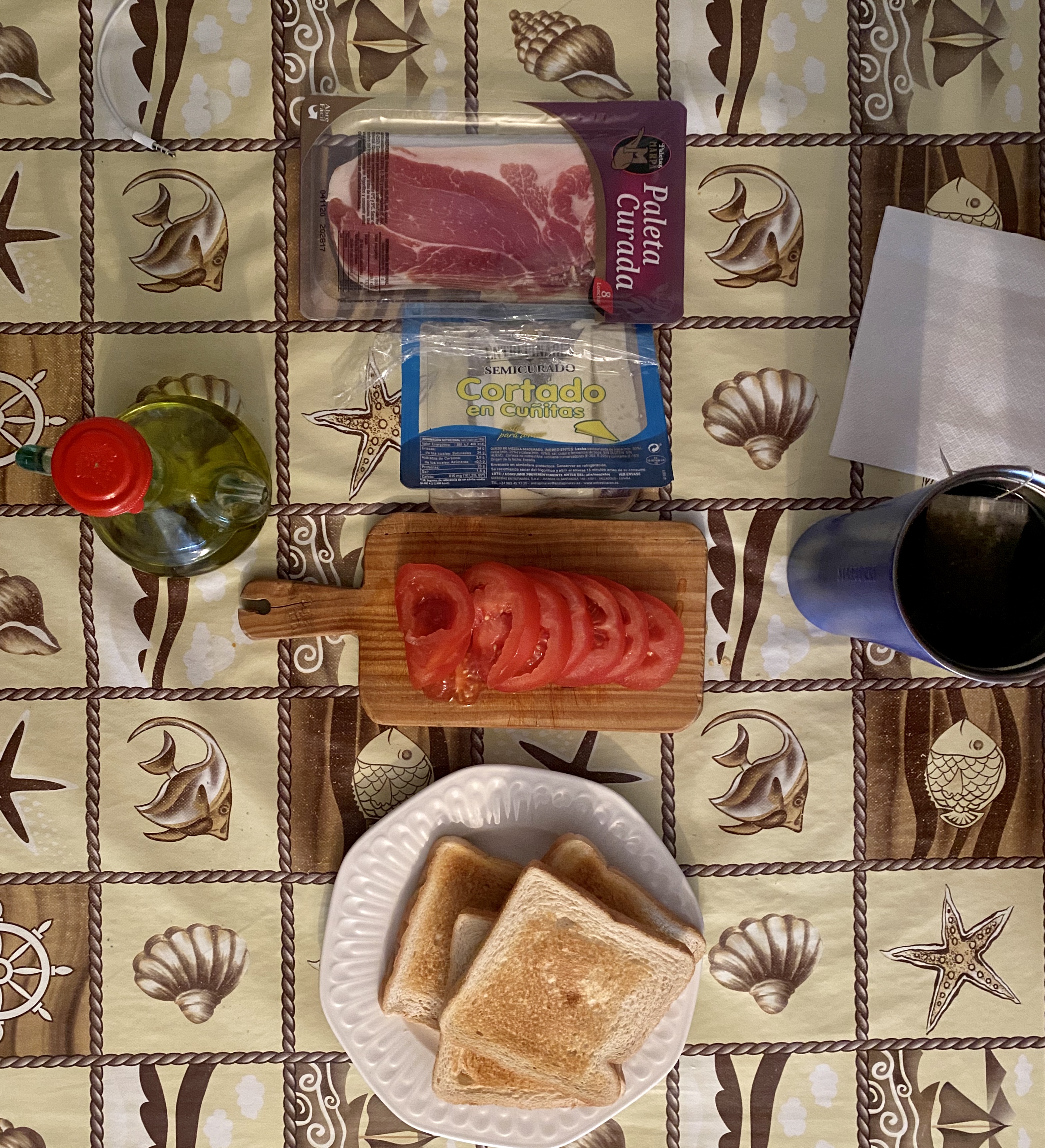 정말, 바게트랑 먹으면 너무 맛있지만, 간단하게 그냥 식빵이랑 먹었다. 스페인에 오면 꼭 먹어야 할 아침 식사이다.