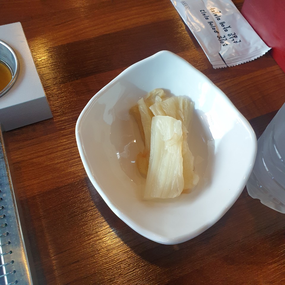 반찬들이 들어왔다. 대파로 만든 김치가 참 인상적이었다. 제일 맛있던 반찬은 백김치였다. 묵사발도 맛있어서 열심히 떠먹었다. 감자샐러드도 맛있었고 전부 좋았다 :)