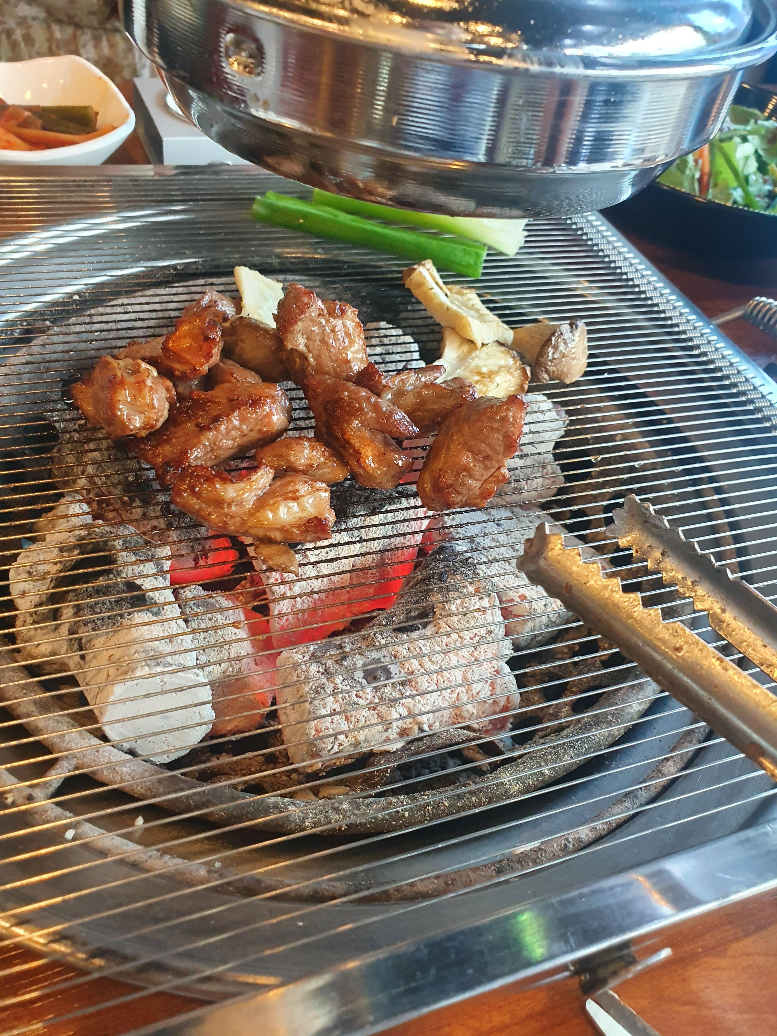 그리고 양념 갈매기살을 구웠다. 갈매기살이랑 껍데기가 조금 같이 나온다. 껍데기 먹고싶었는데 완전 야호!!! :)