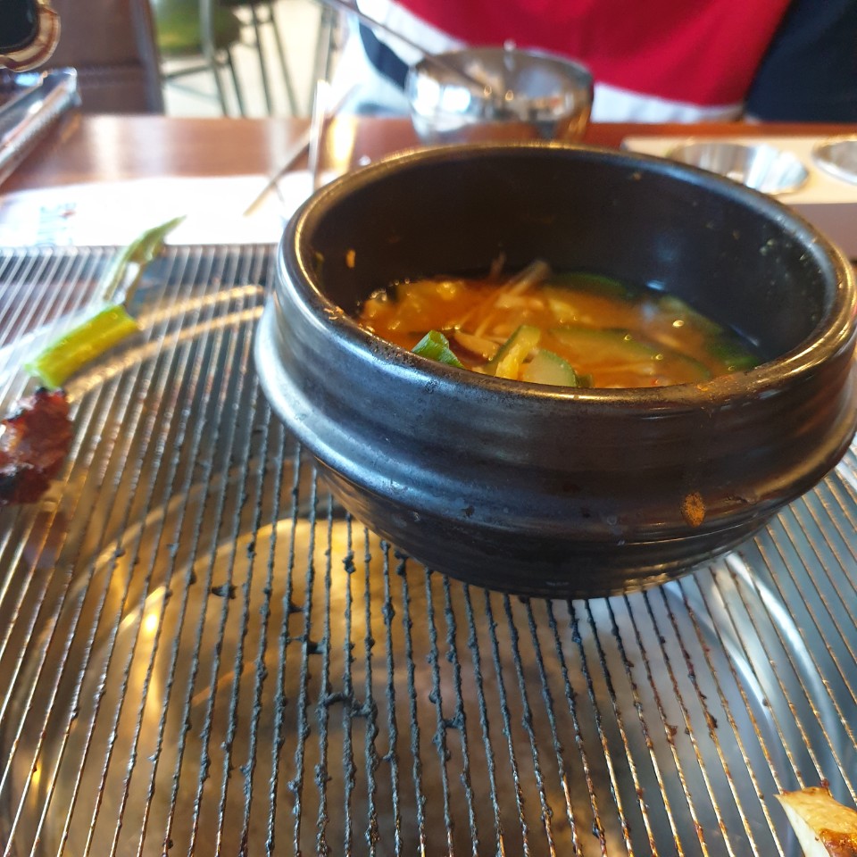 된장찌개도 시켜 밥이랑 먹었다. 지방이 별로 없는 갈매기살을 먹어서 살이 별로 안찌겠구나 했었는데 찍먹치즈에 된장찌개랑 밥까지 먹어서 살이 엄청 올랐다 ㅎㅎ