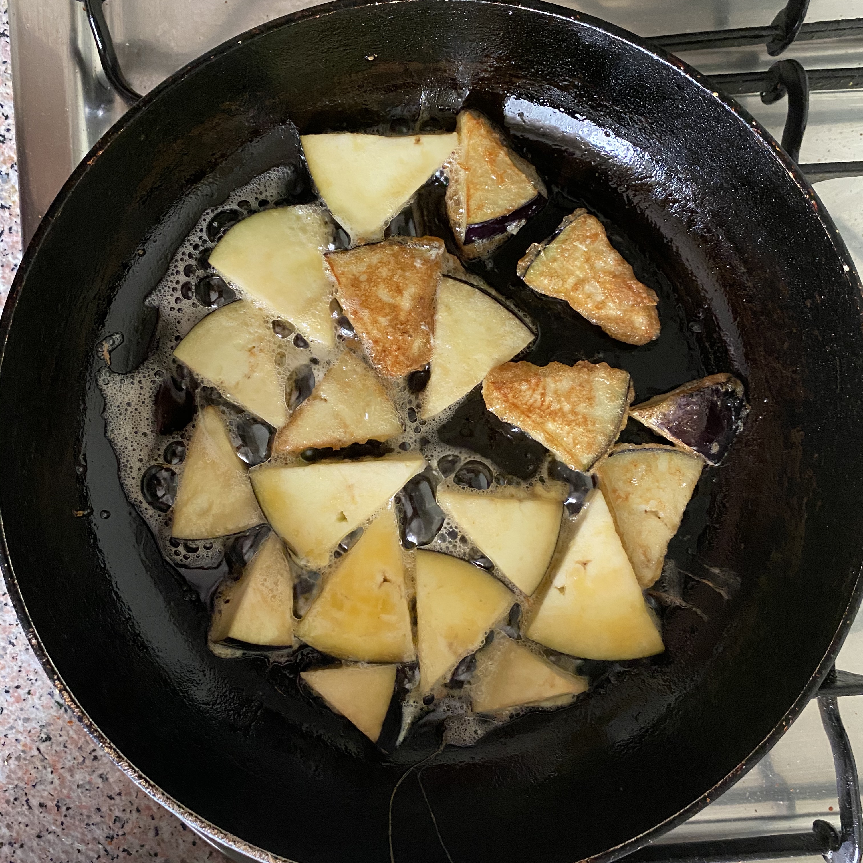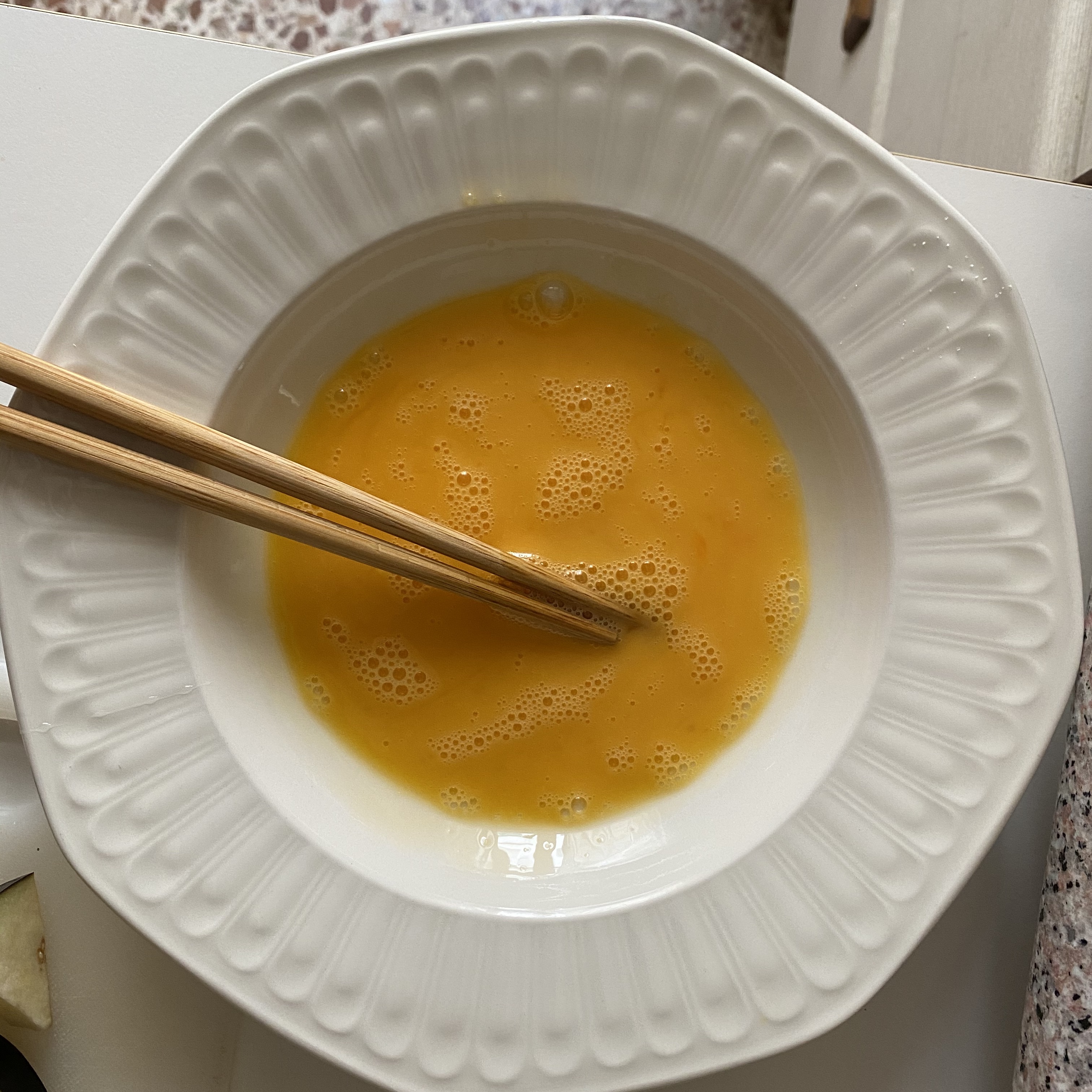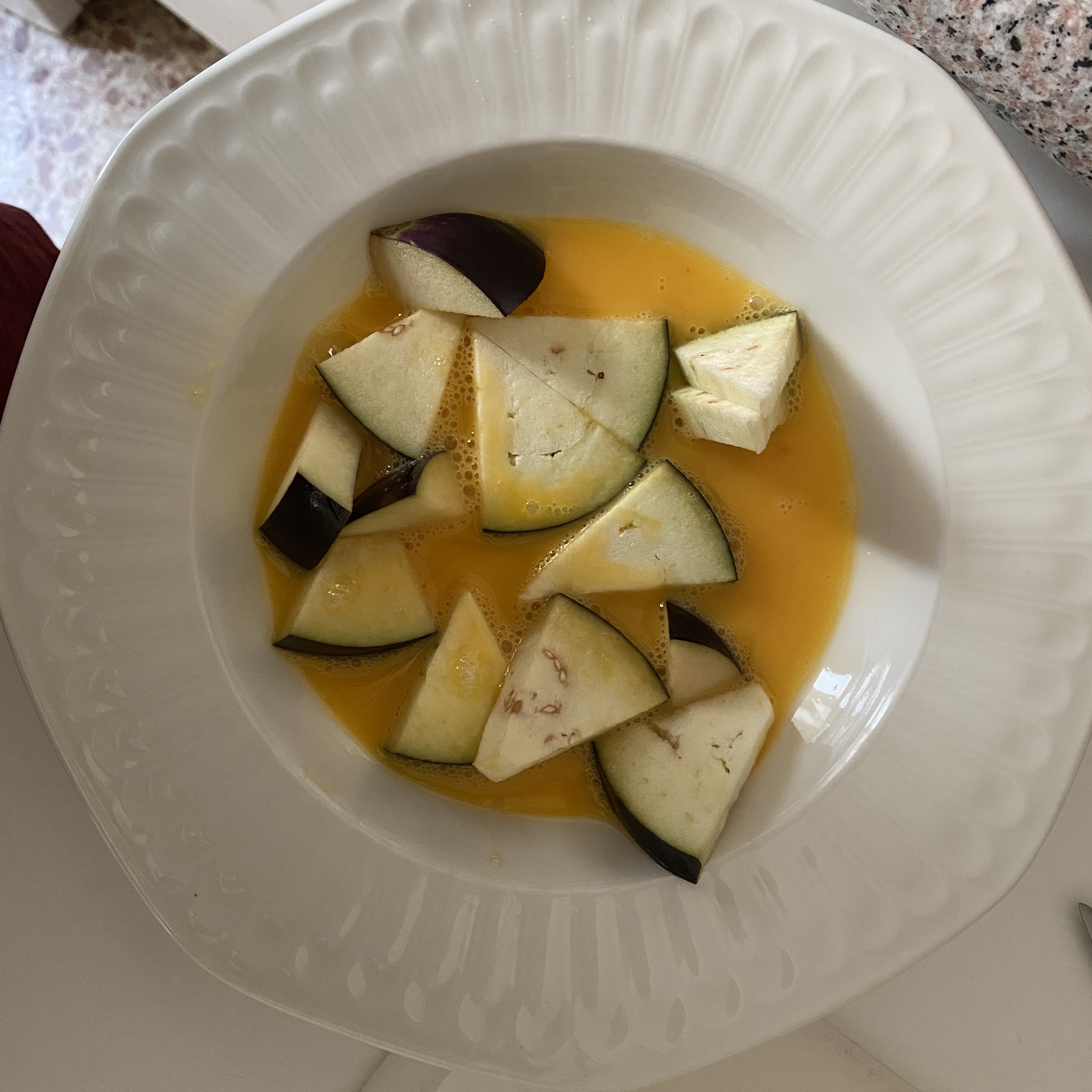 그리고 드디어 점심 시간이 되었다. 점심은 남아 있는 가지로 뭘 할까 하다가, 튀김은 아니고, 가지전? 같은 걸 만들었다. 그냥 가지 잘라서, 계란물 입혀서 튀겨줬다. 이런 게 있는 지는 모르겠지만, ㅋㅋㅋ 실험해보았다. 계란물에 소금도 조금 넣어줘야 한다.