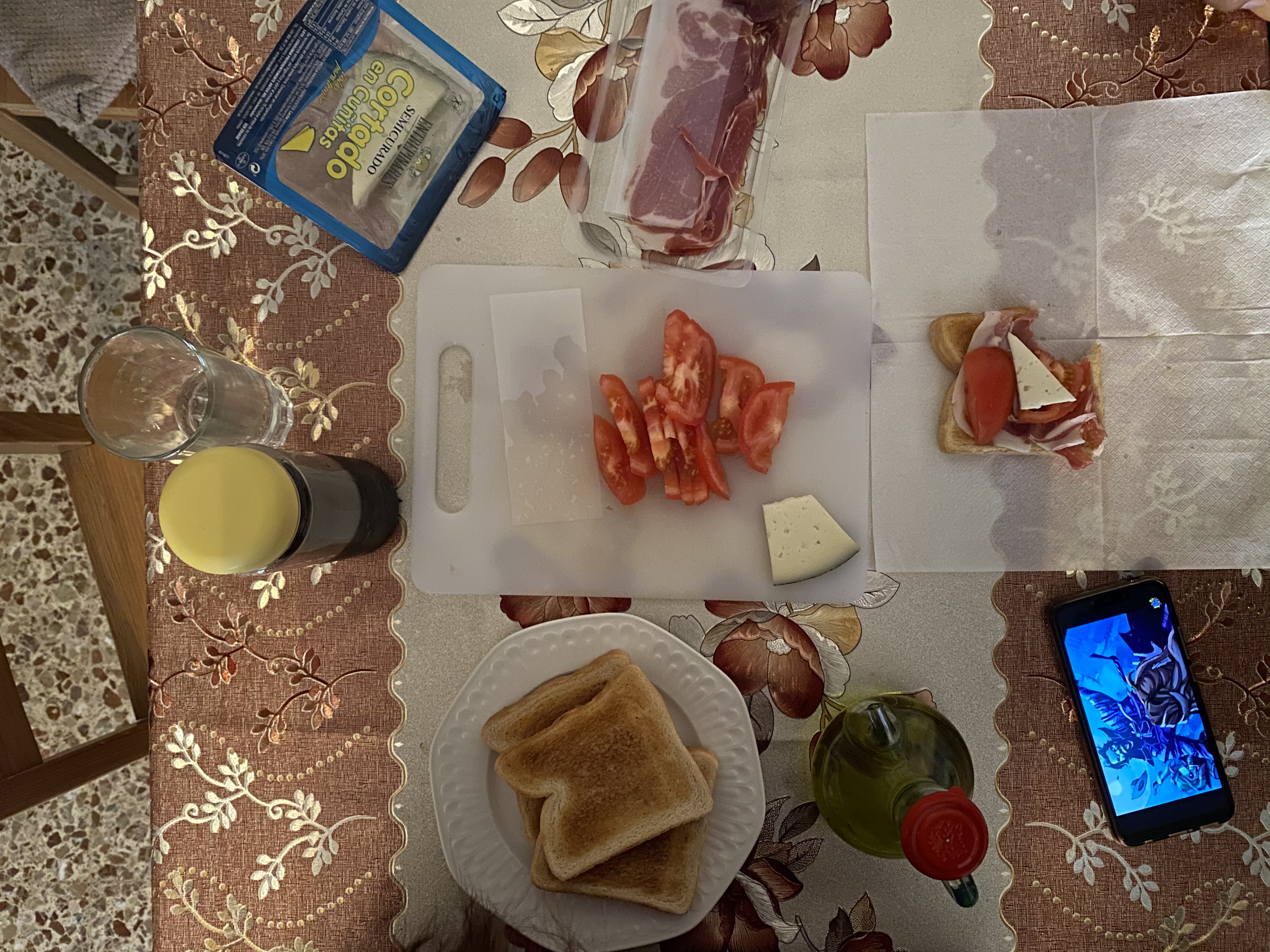 어쨌튼, 늦게 일어나도 아침 스트레칭을 한다. 막 으어~ 휴... 하면서 한다. ㅋㅋㅋ 아저씨처럼 소리내면서, 왠지 몸이 풀리는 느낌이라서 스트레칭하면 더 졸린 것 같기도하고 ㅎㅎ 그리고 바로 아침을 먹었다. 요즘 하몽이 있어서, 토마토 잘라서, 치즈랑 하몽이랑 올리브 오일이랑 해서 자주 먹게된다. 커피는 어제 만들어 놓은 커피를 마셨다.