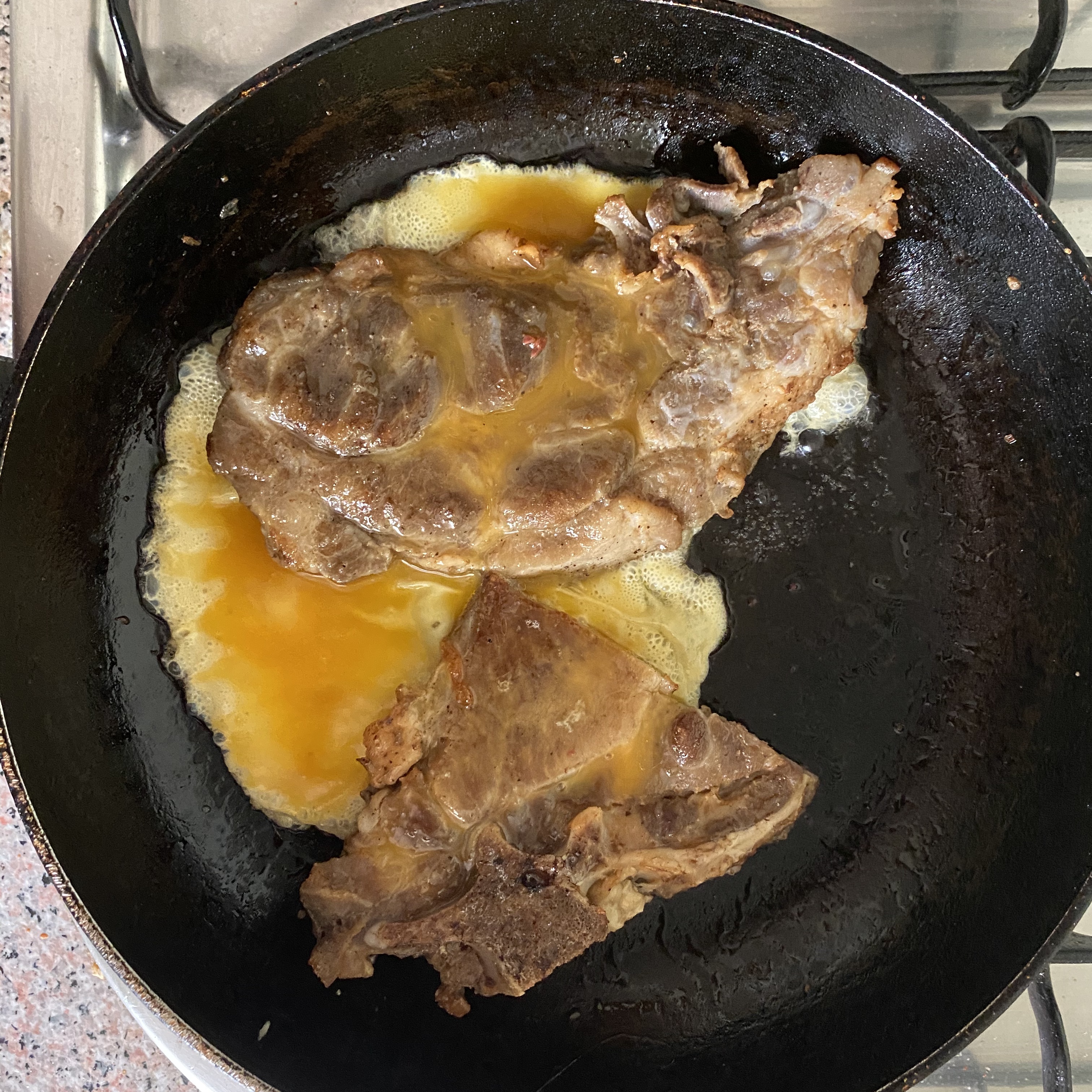 하지만, 가지만 먹을 수는 없으니, 가지전 다 만들고 나서, 냉장고에 있던 고기를 같은 프라이팬에 굽고, 남은 계란도 그냥 같이 넣어줬다.
