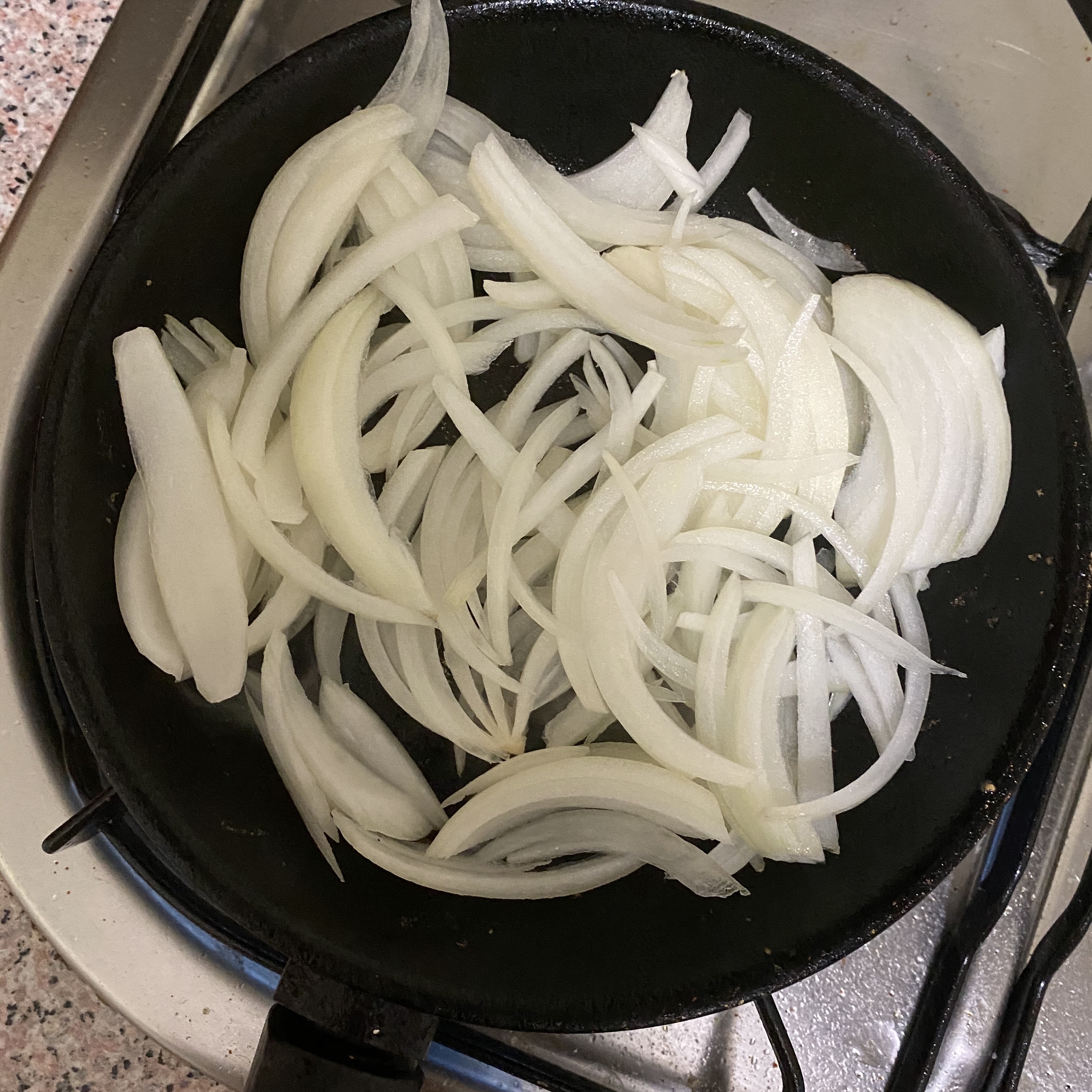 양파는 완전 카라멜라이징을 하고 싶어서 갈색이 될 때까지 오랫동안 볶았다.