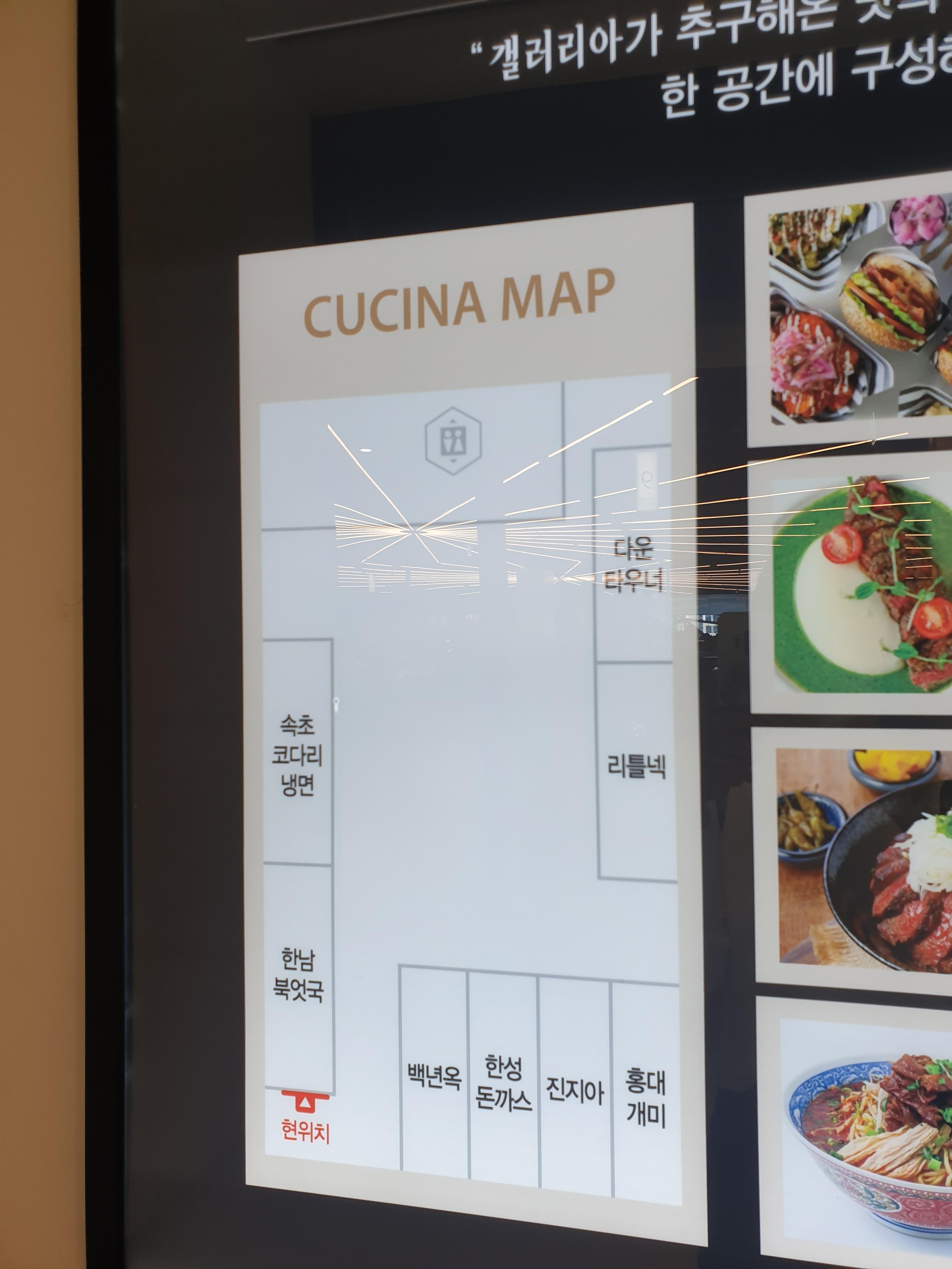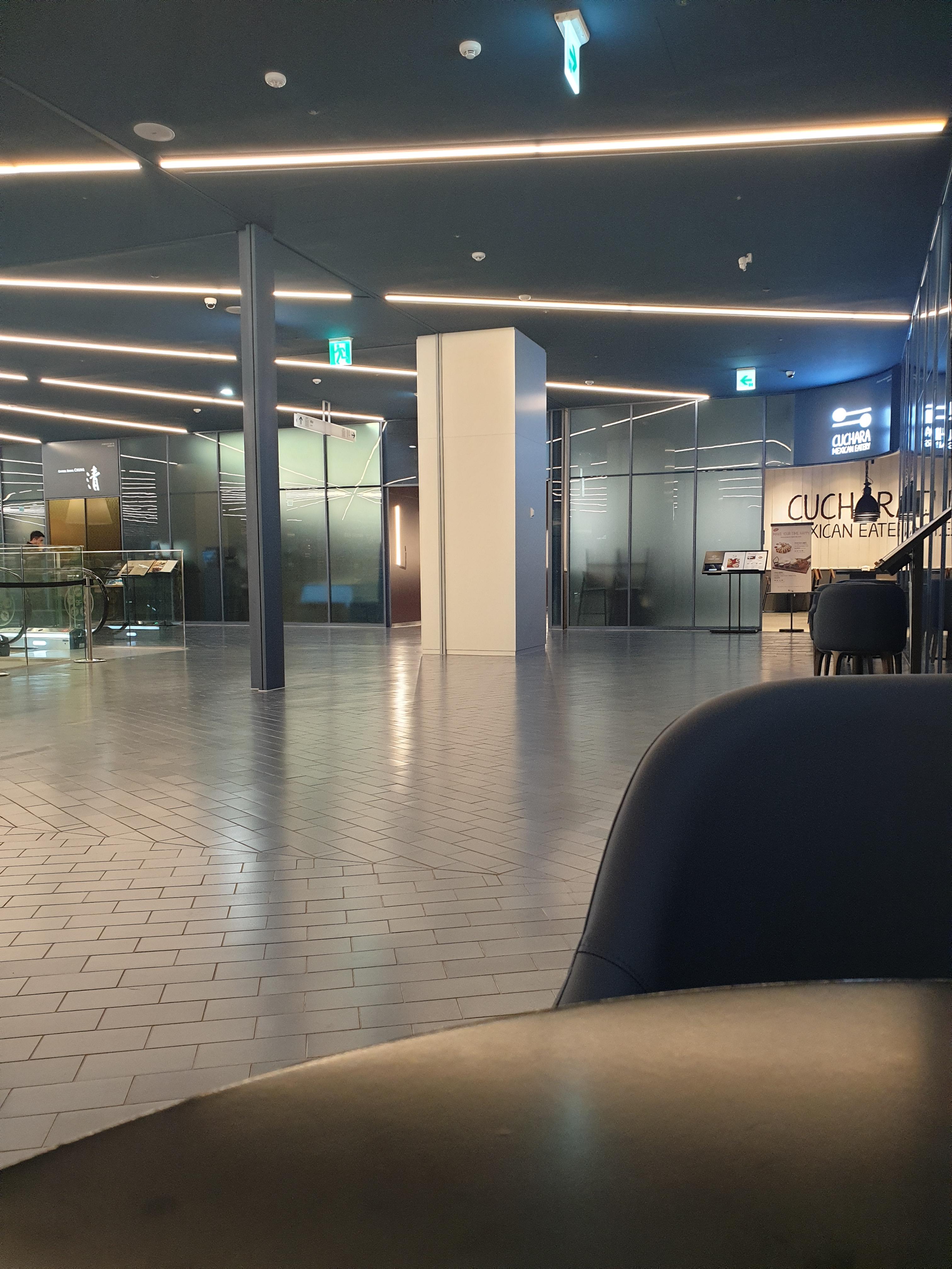 남자친구를 기다리며 찍은 9층 식당층이다. 수원역에 있는 백화점이랑은 다른 느낌이다. 사람이 적고 새 건물이라 조명도 특이하고 여기저기 새롭다. 사람이 적은건 평일 오전이라 그럴 수도 있다.