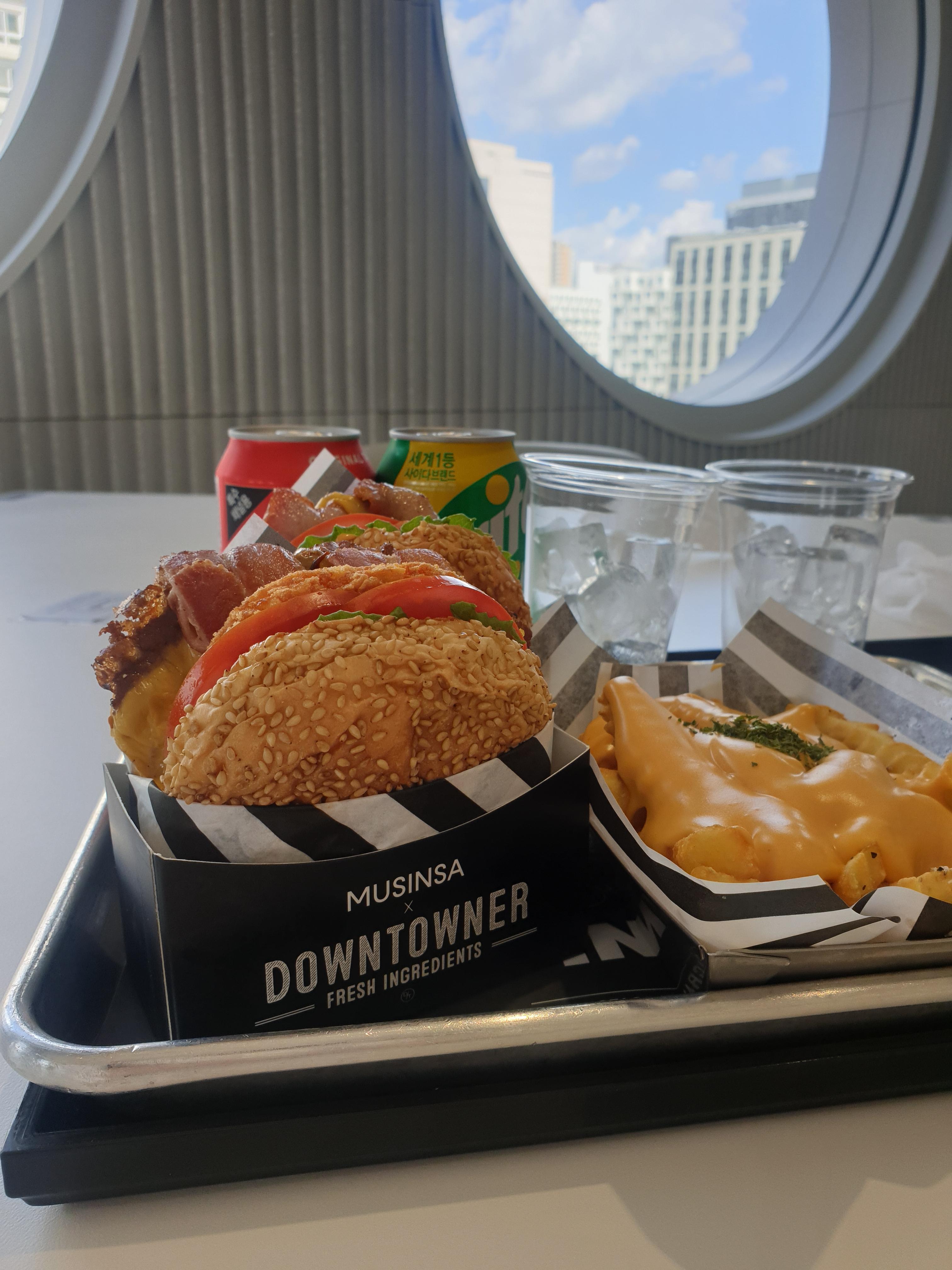 감자튀김에 있는 치즈소스는 나쵸치즈처럼 진한 치즈다. 흠 나쵸치즈 인거 같기도 하다. 청년다방의 치즈 감자튀김을 좋아하는데 청년다방의 소스가 더 달콤하고 다운타우너의 치즈가 더 진한 느낌이다.