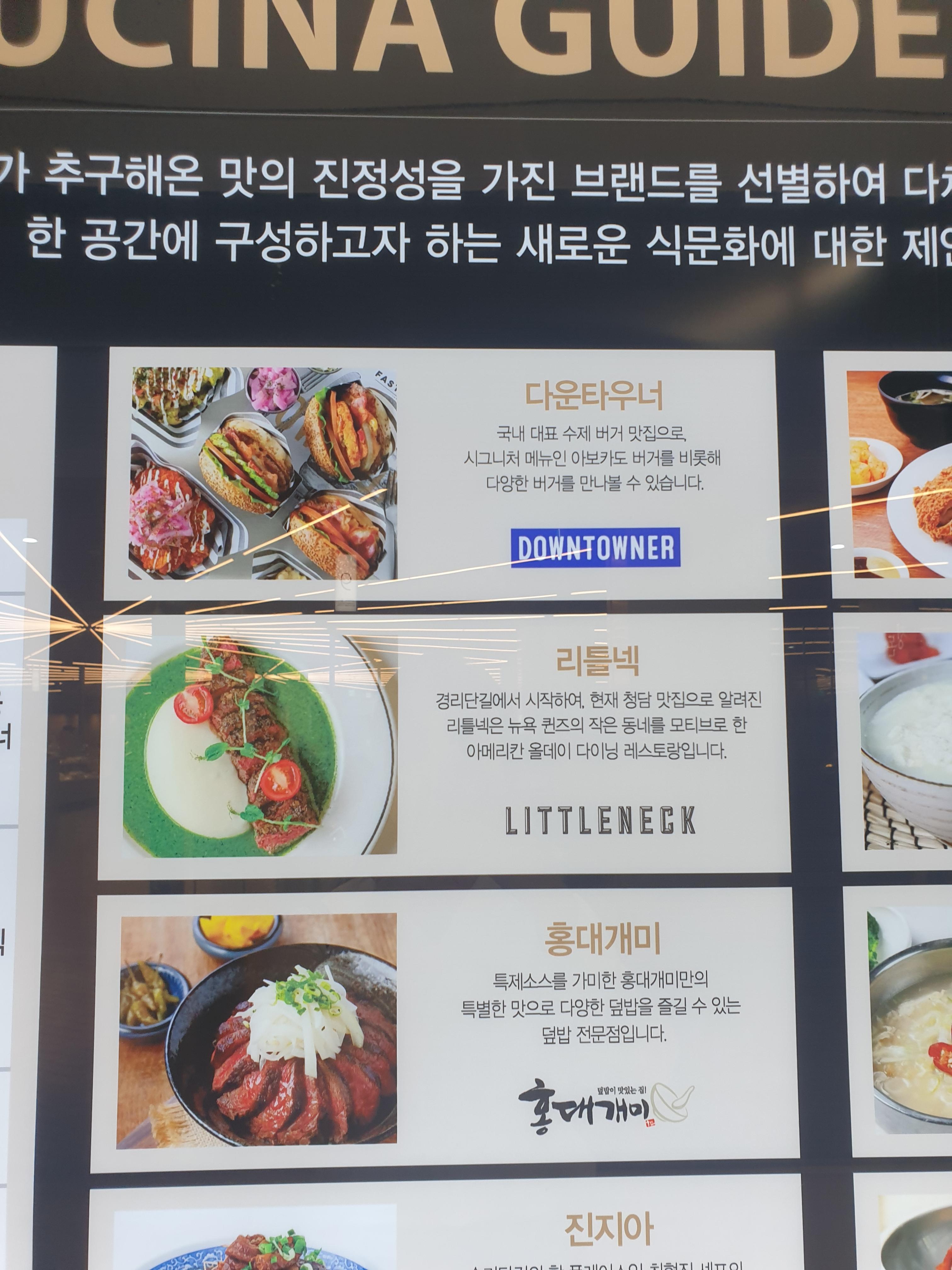 백화점 9층으로 올라가면 음식점들이 모여있는데 그 중에서 여러 음식점이 모여있는 곳이 있다. 거기에 다운타우너 가게가 있다.