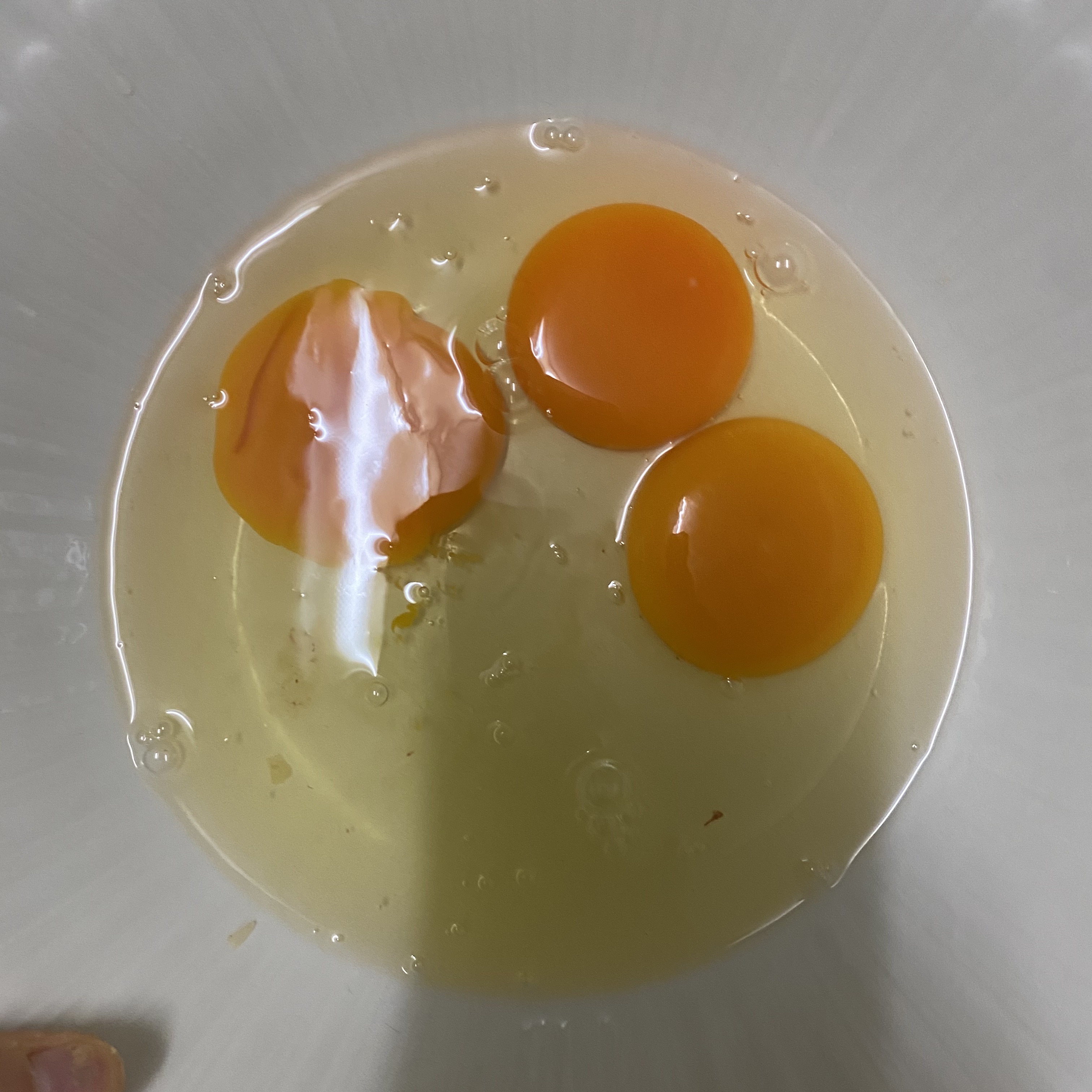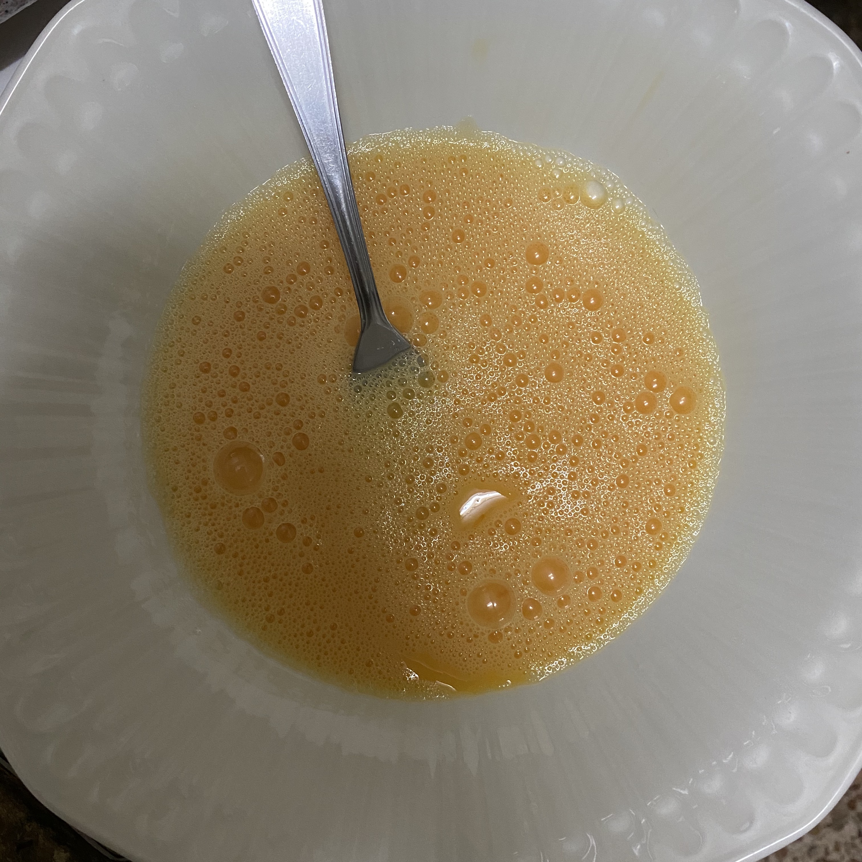 그리고 감자들이 충분히 익으면 볼에 계란 3개를 넣고 막 섞어준다. 계란물을 만들어주고, 소금을 넣어서 간도 해 준다.